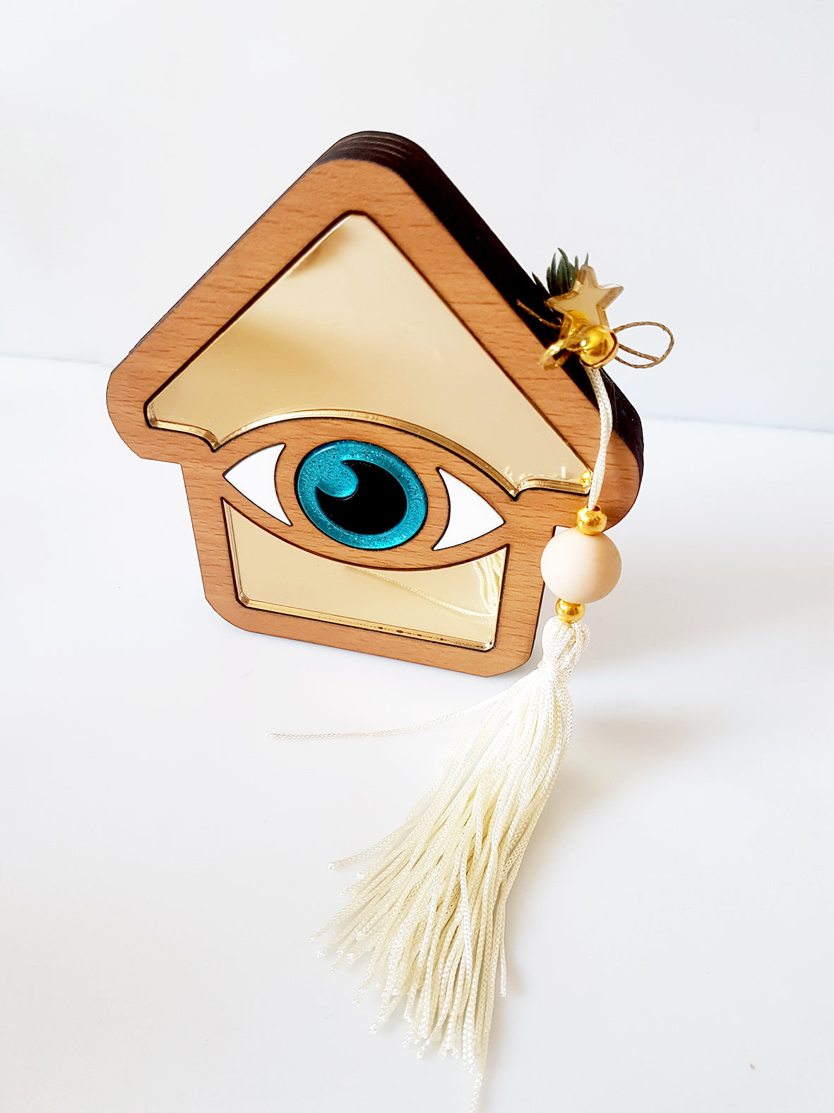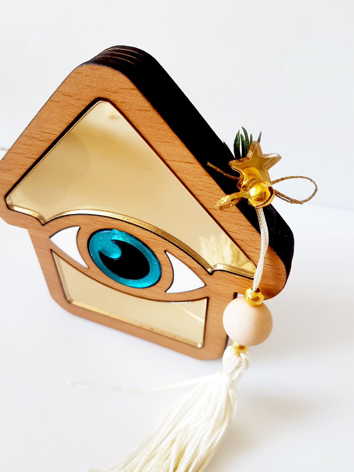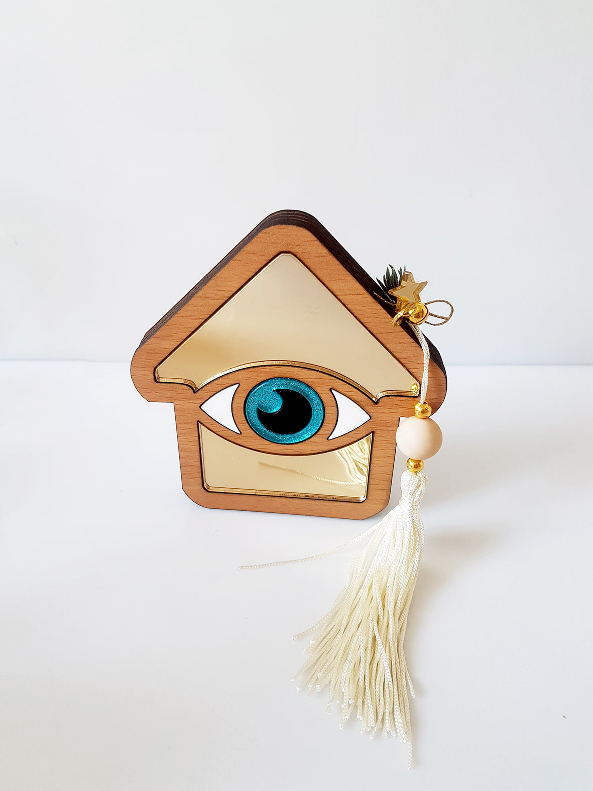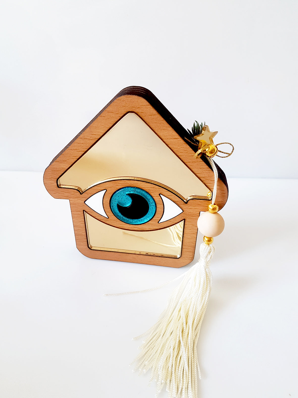 Επιτραπέζιο γούρι Σπιτάκι με μάτι και φούντα