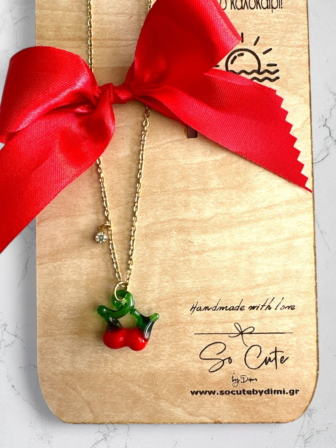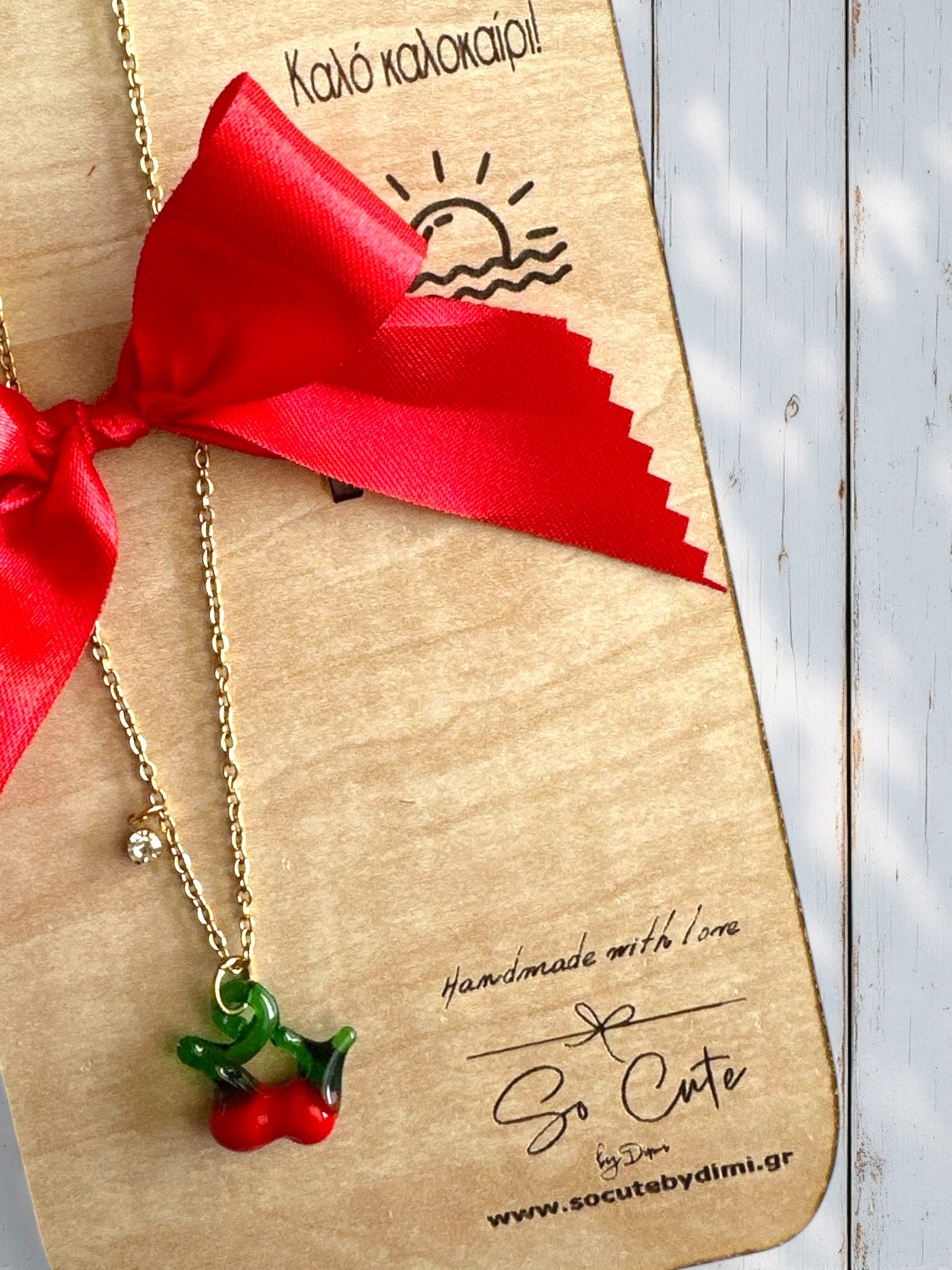 🍒 Γυάλινο charm με κερασάκια, σύμβολο γλυκύτητας και ανεμελιάς