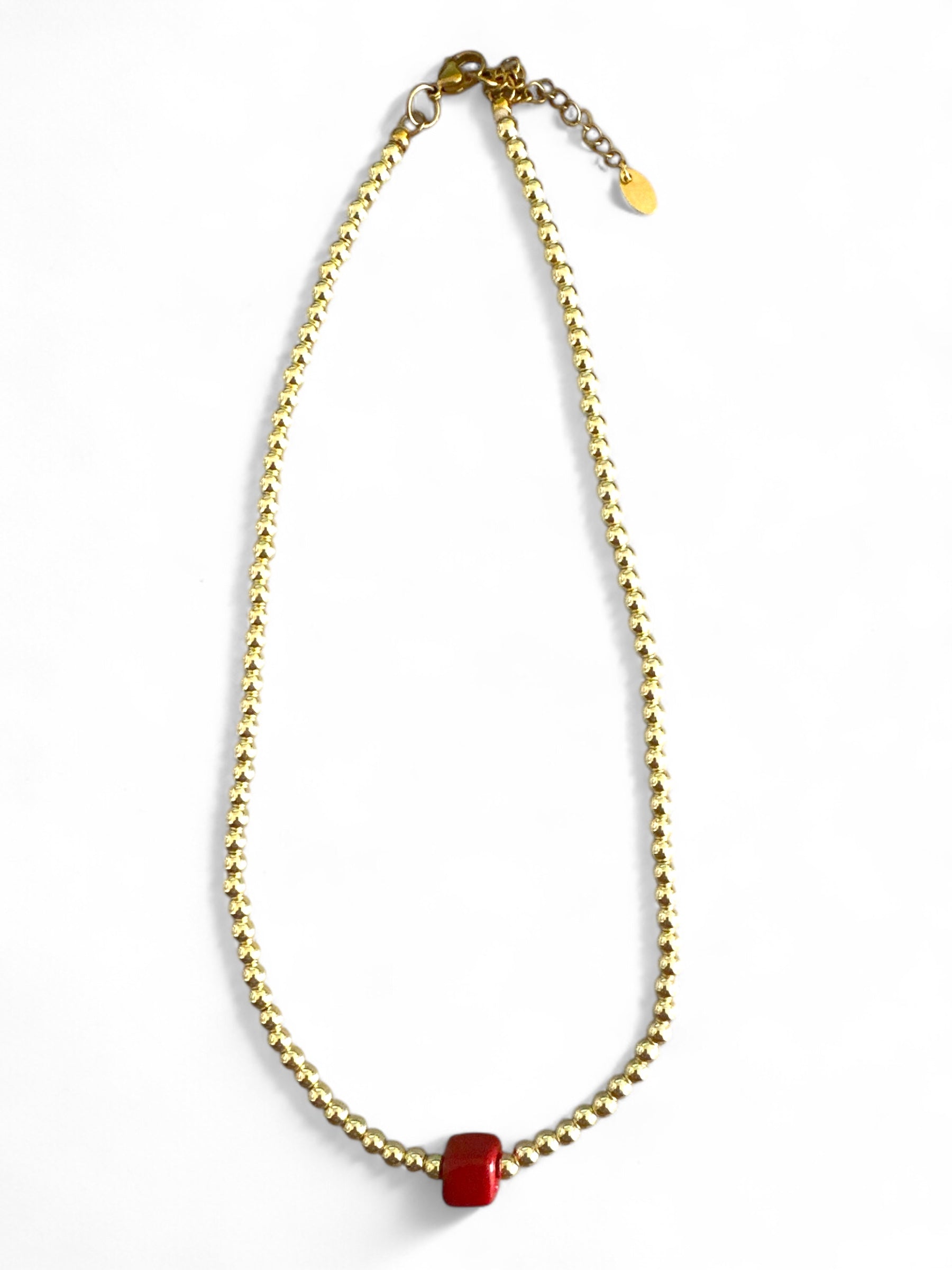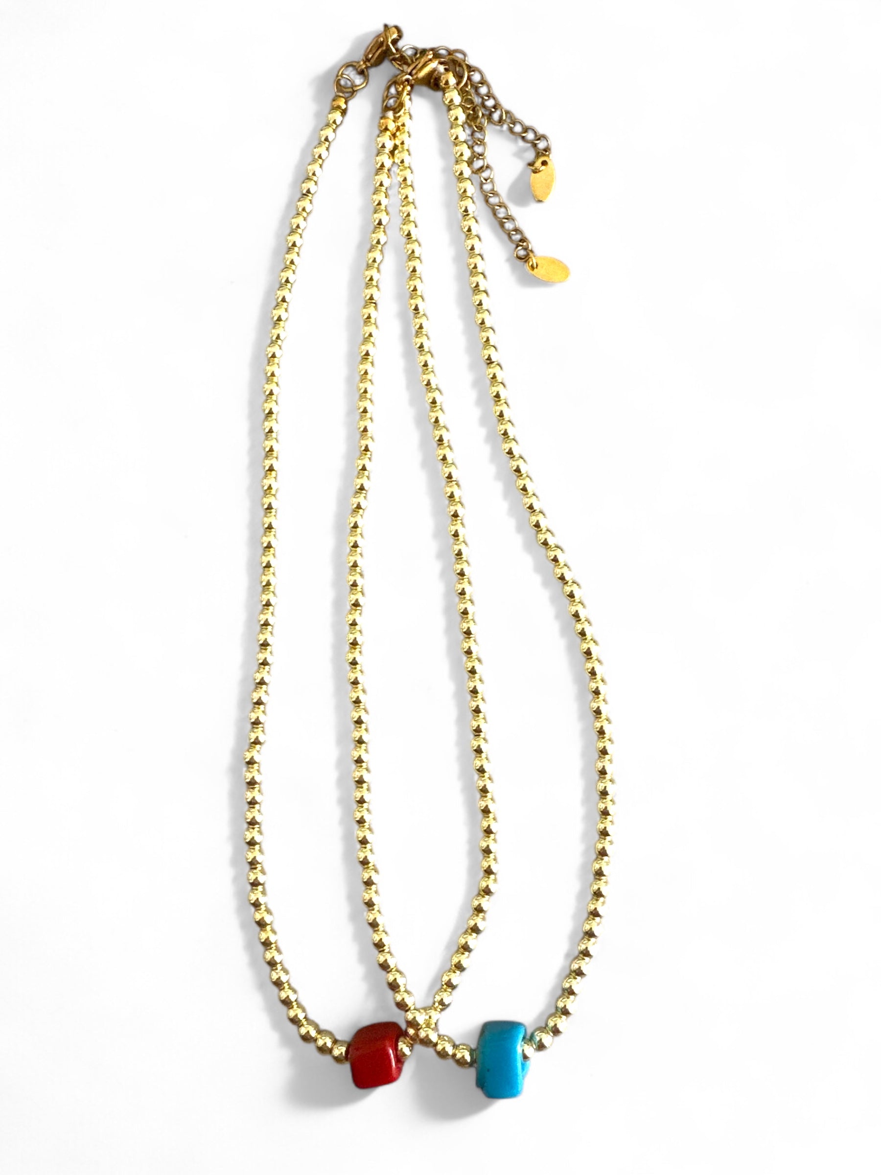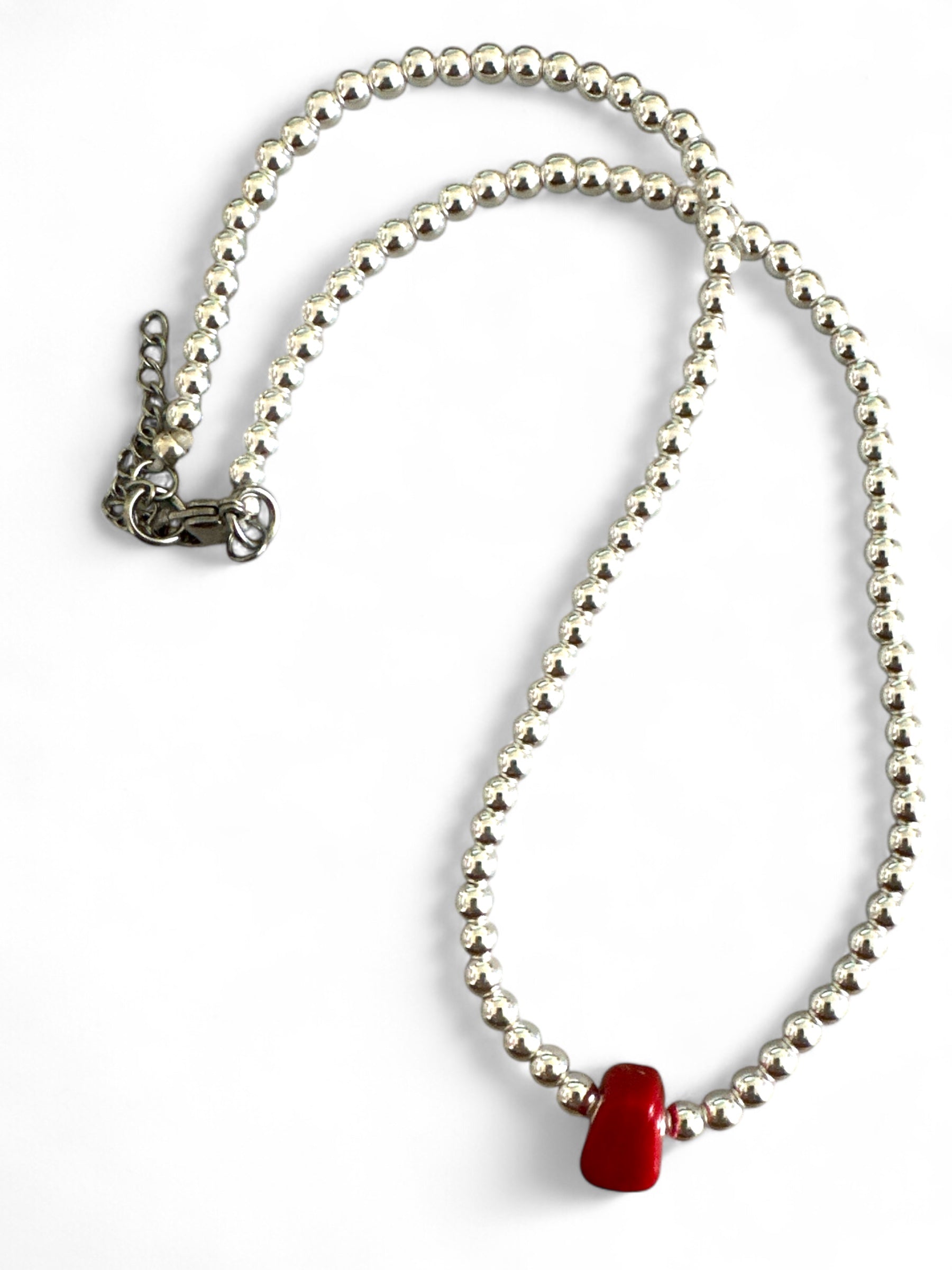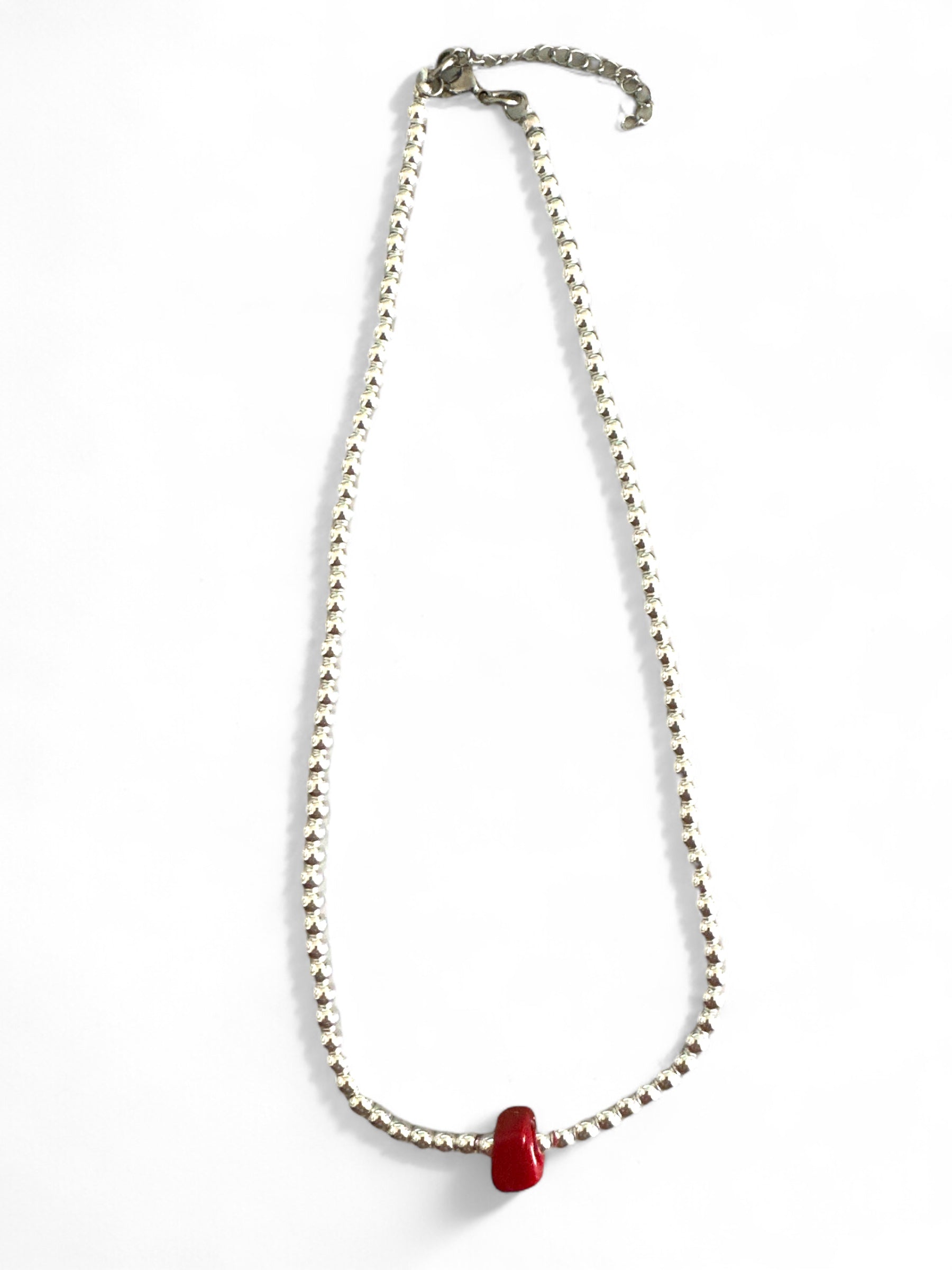 Ανέδειξε το ντεκολτέ σου με ένα ευκολοφόρετο κολιέ από λαμπερές χάντρες αιματίτη και γαλάζια ή κόκκινη χάντρα! Ατσάλινο κούμπωμα.
