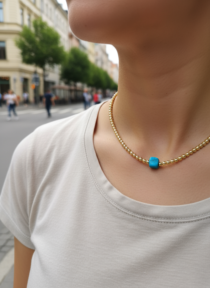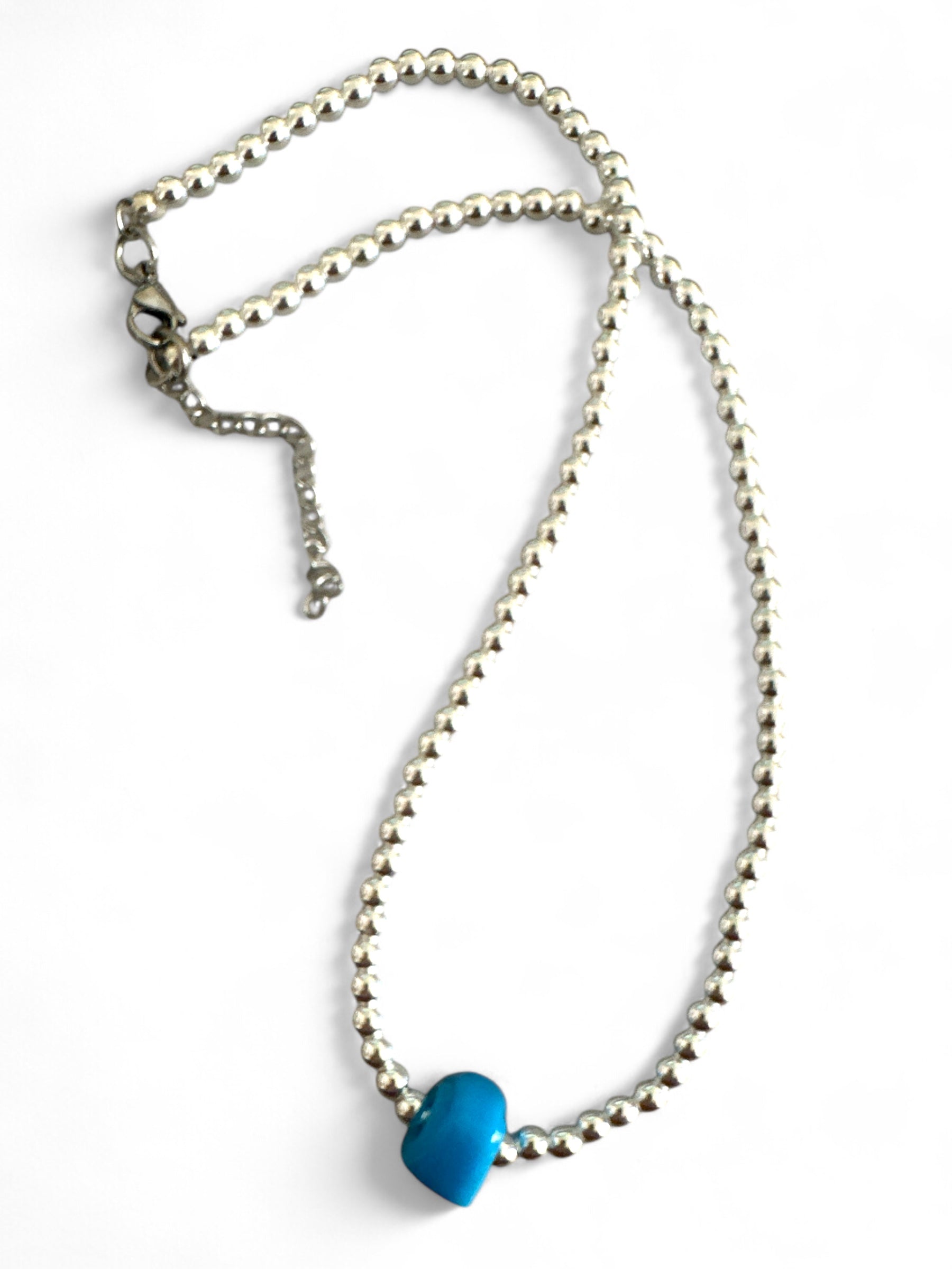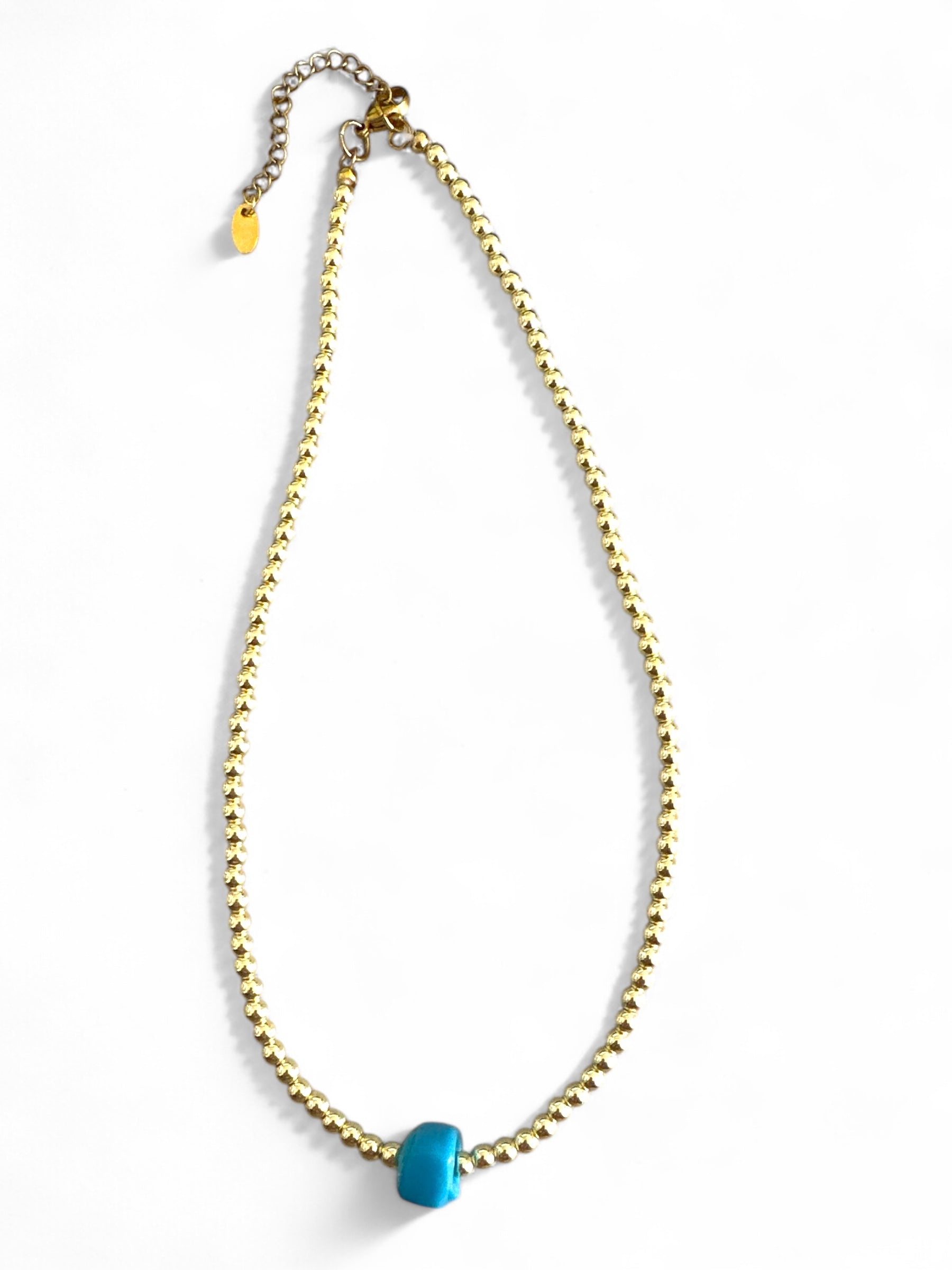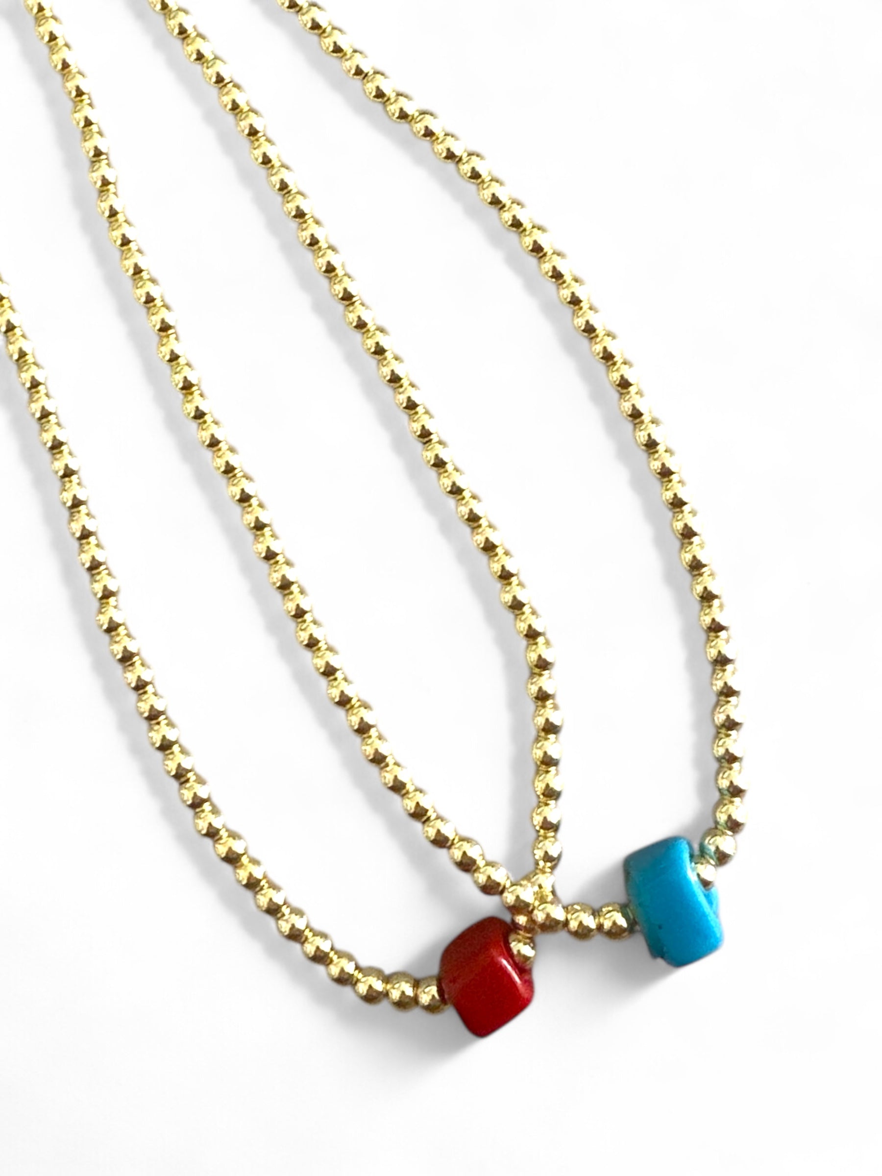 Ανέδειξε το ντεκολτέ σου με ένα ευκολοφόρετο κολιέ από λαμπερές χάντρες αιματίτη και γαλάζια ή κόκκινη χάντρα! Ατσάλινο κούμπωμα.