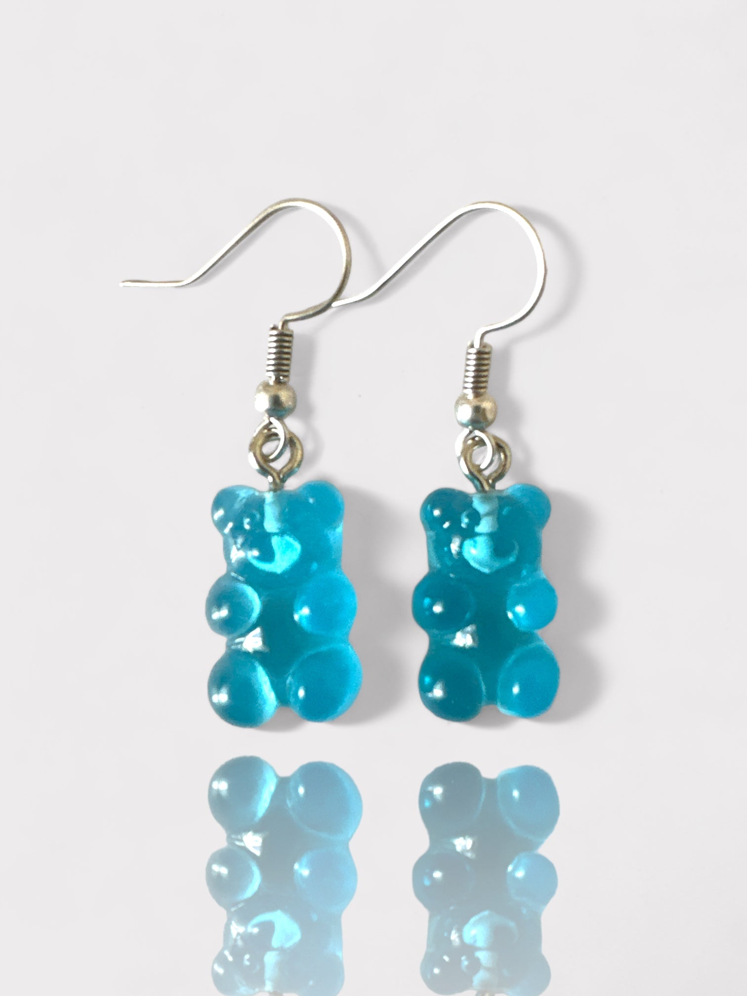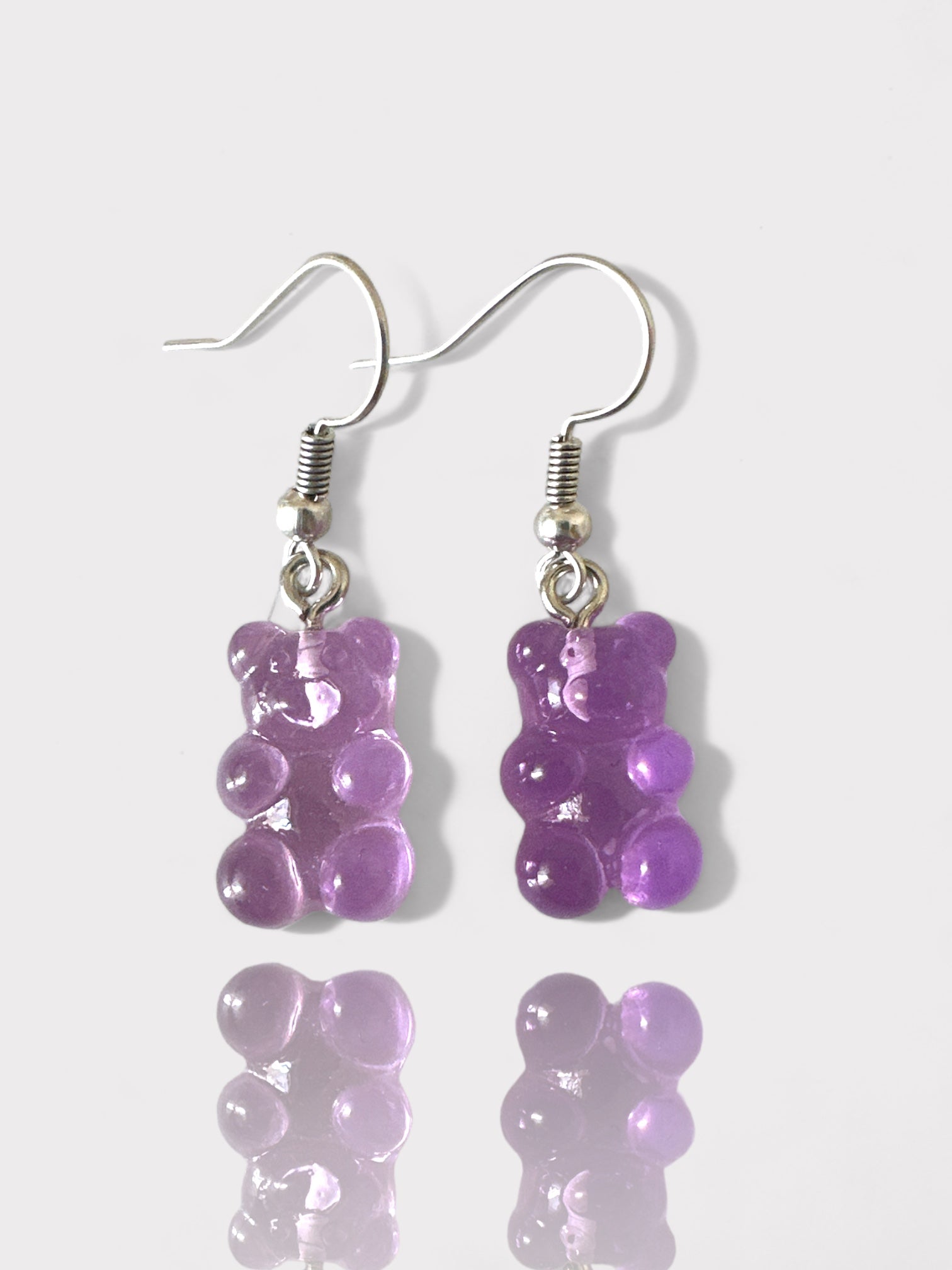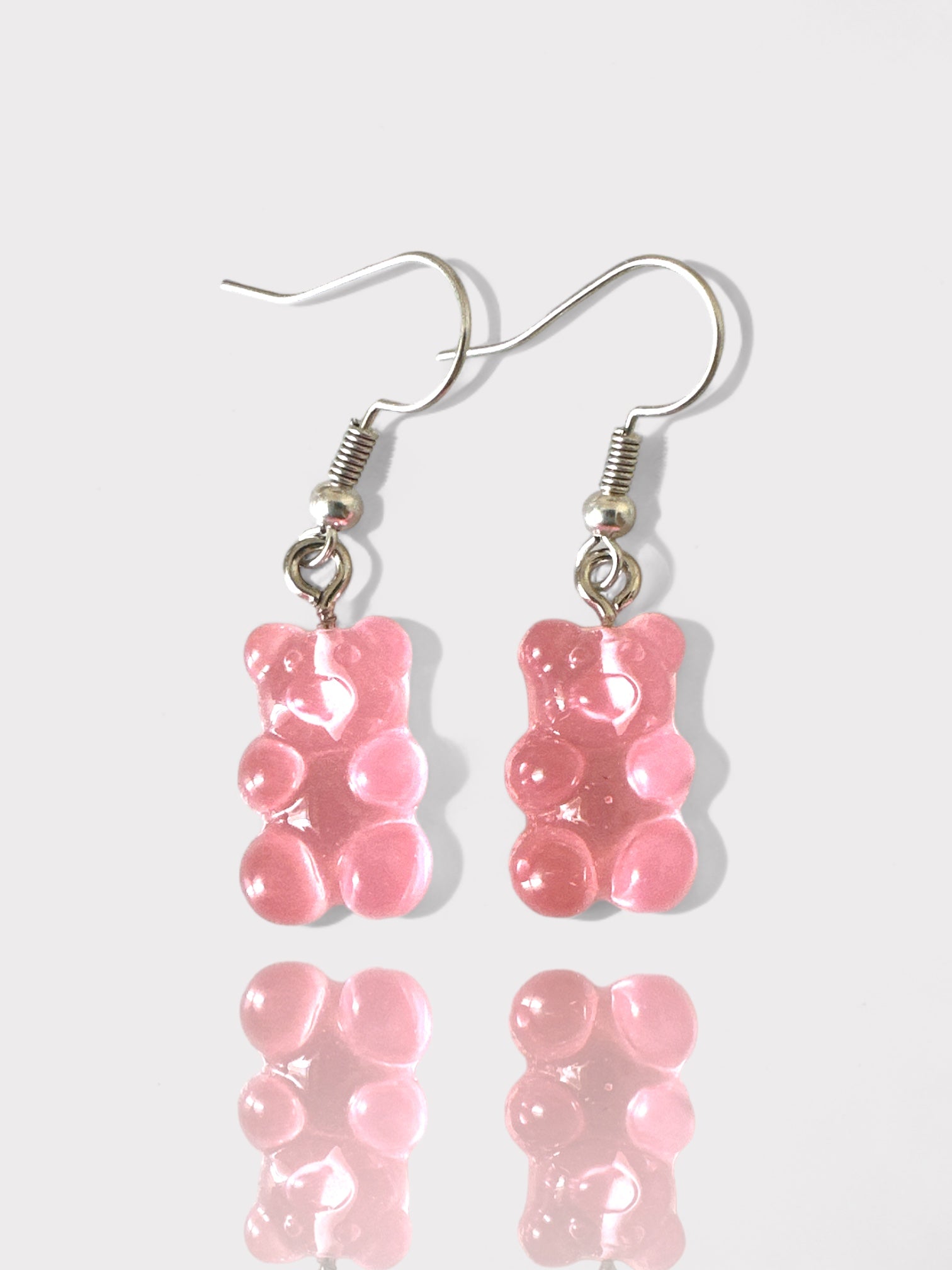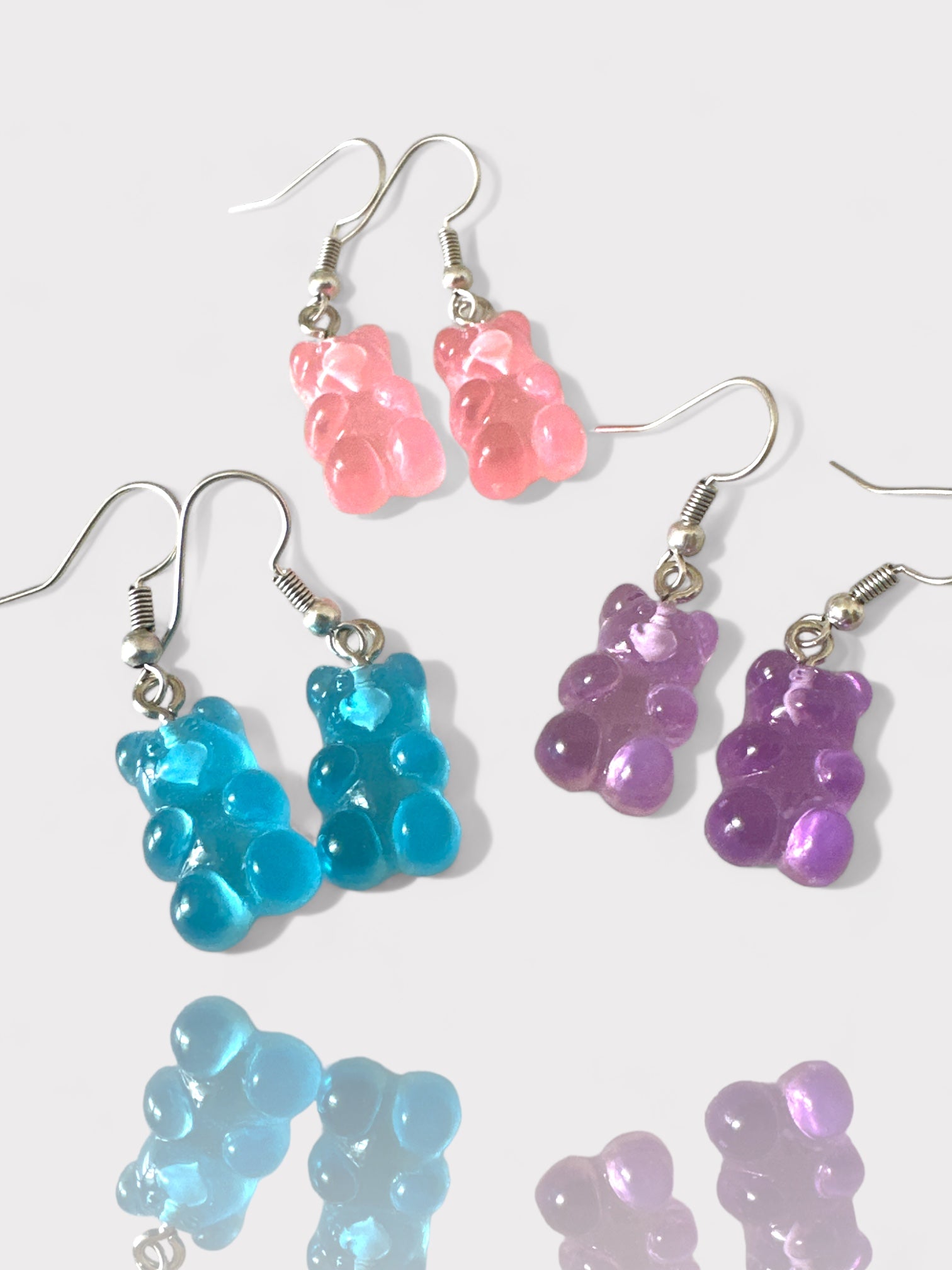 Χειροποίητα σκουλαρίκια με επάργυρο υποαλλεργικό γάντζο και κρεμαστά διαφανή ακρυλικά αρκουδάκια σε παστέλ χρώματα