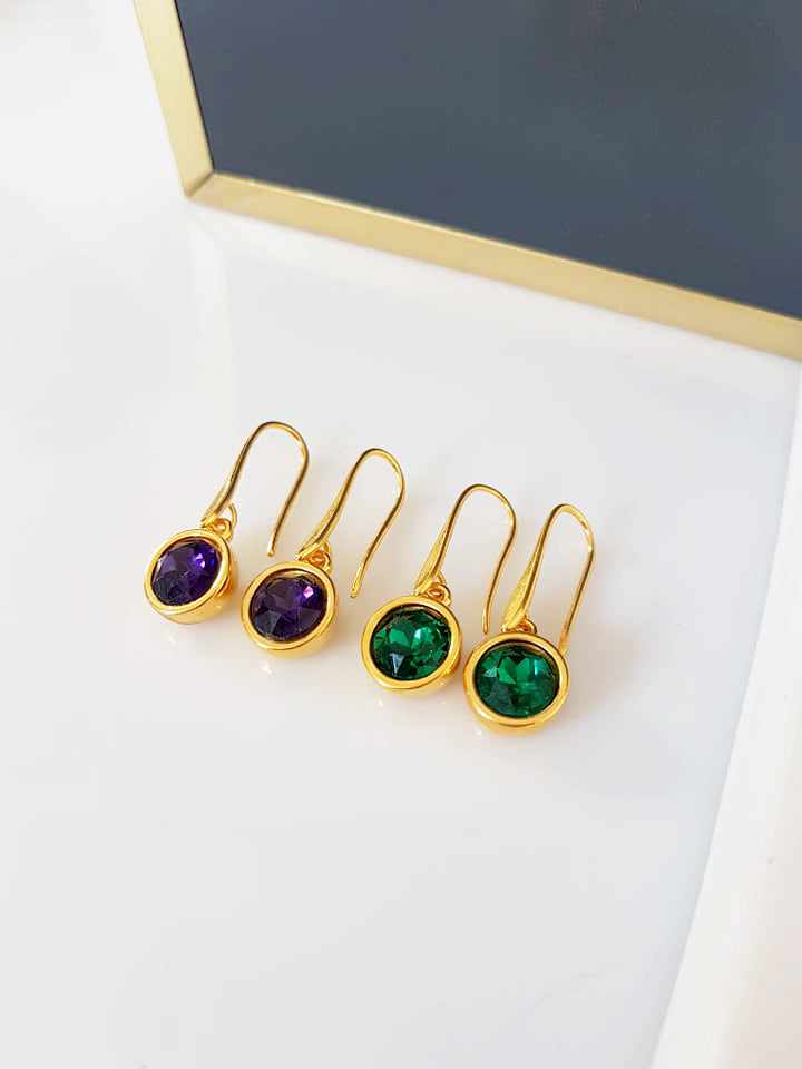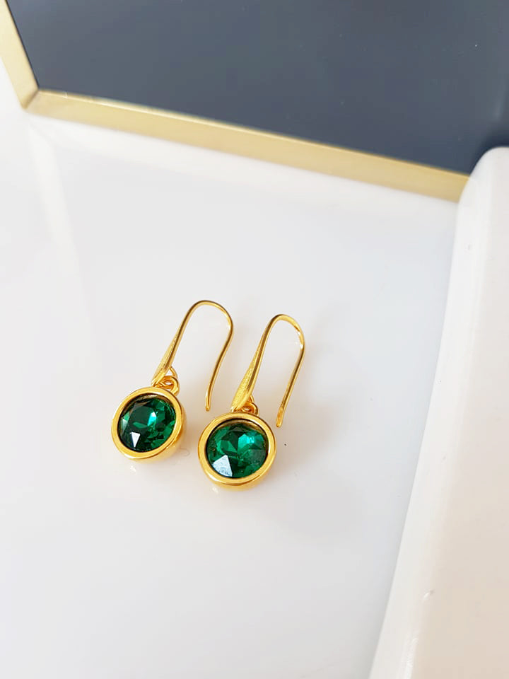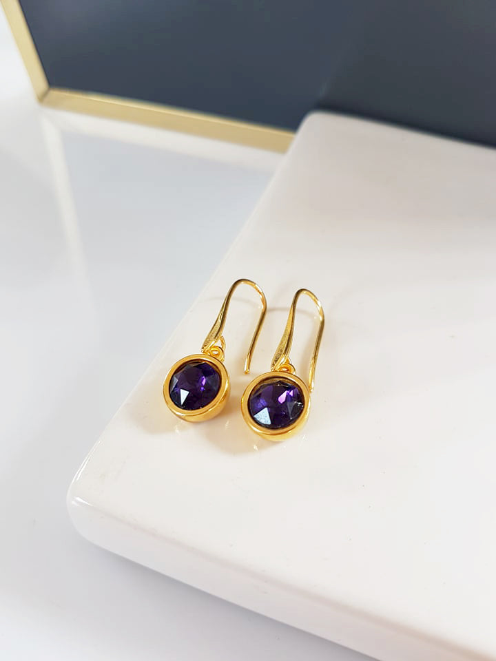 Χειροποίητα διακριτικά σκουλαρίκια με επίχρυσο ορειχάλκινο υποαλλεργικό κούμπωμα με κρύσταλλο. Μήκος 3 εκατοστά.