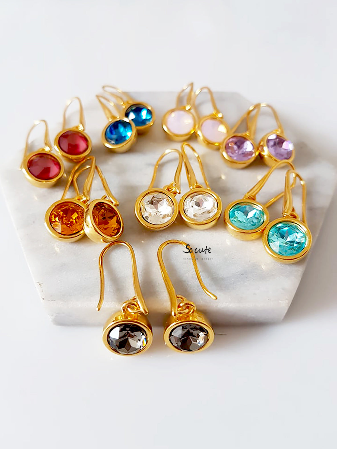 All So Cute fashion jewelry is 24 or 18k gold plated or rhodium plated over zinc, steel, and brass. Every piece is Nickel Free & Lead Free. Our earring posts are made with Surgical Steel for sensitive ears.