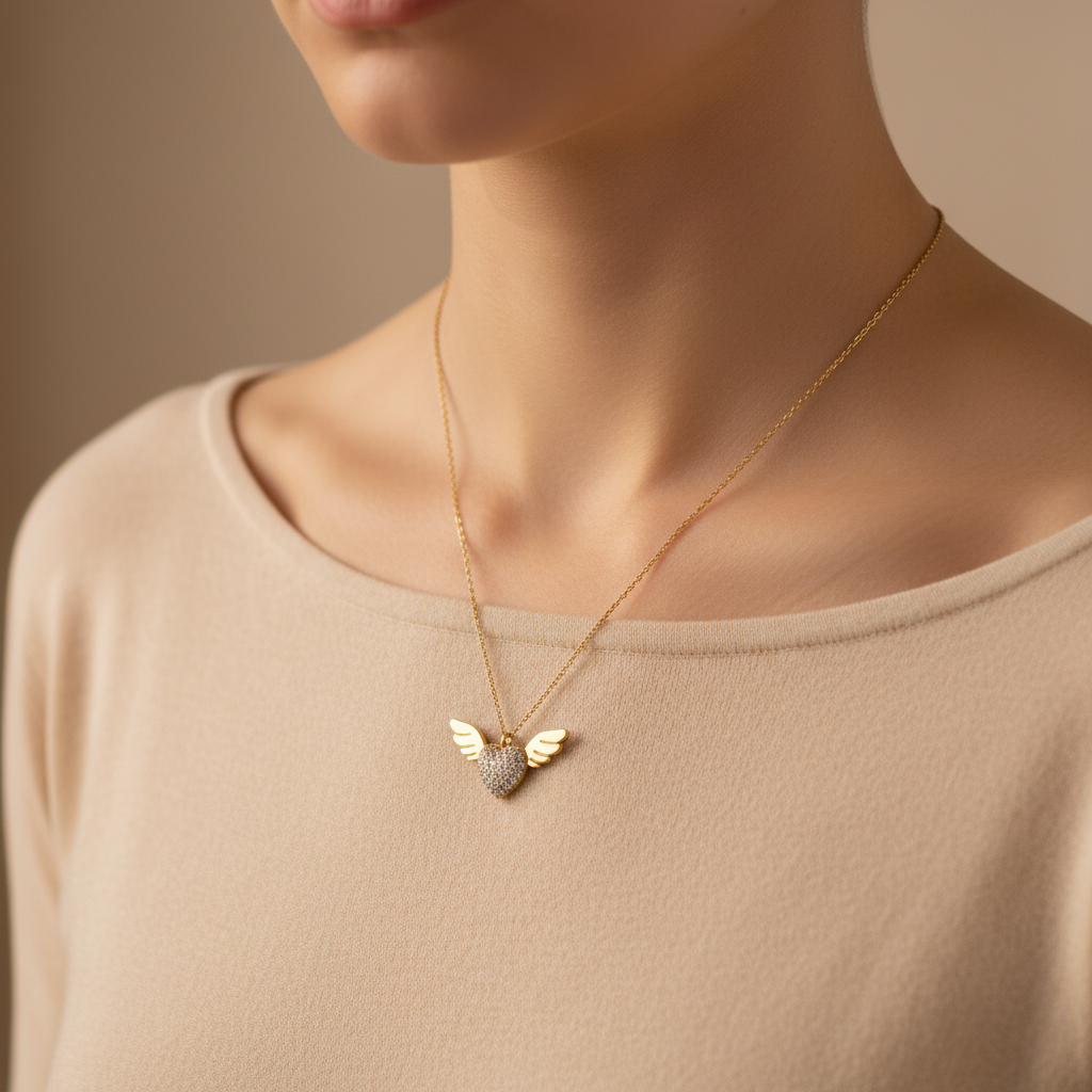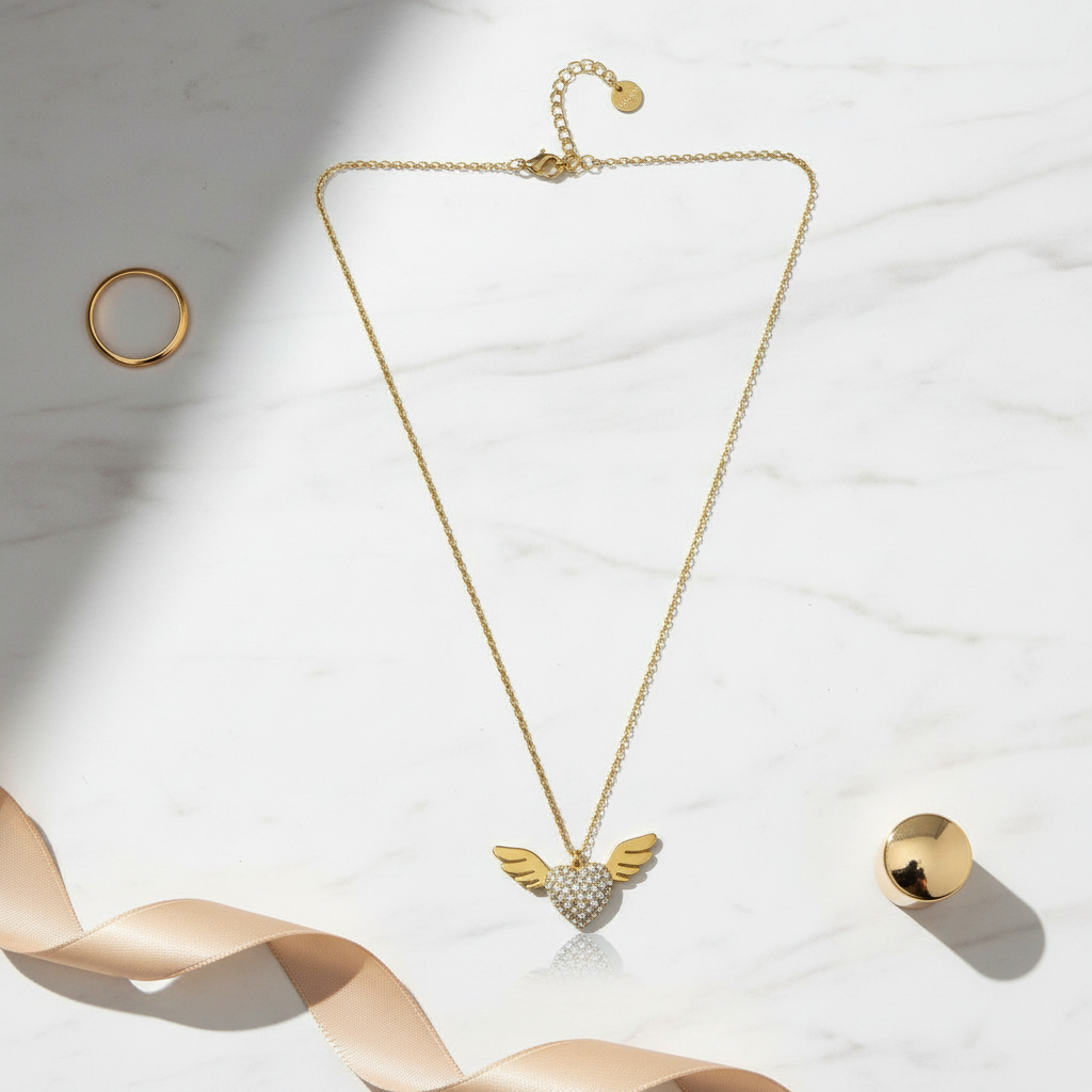 ⚡🚚Κολιέ “Angel Heart Shine” – Ατσάλι με στρας