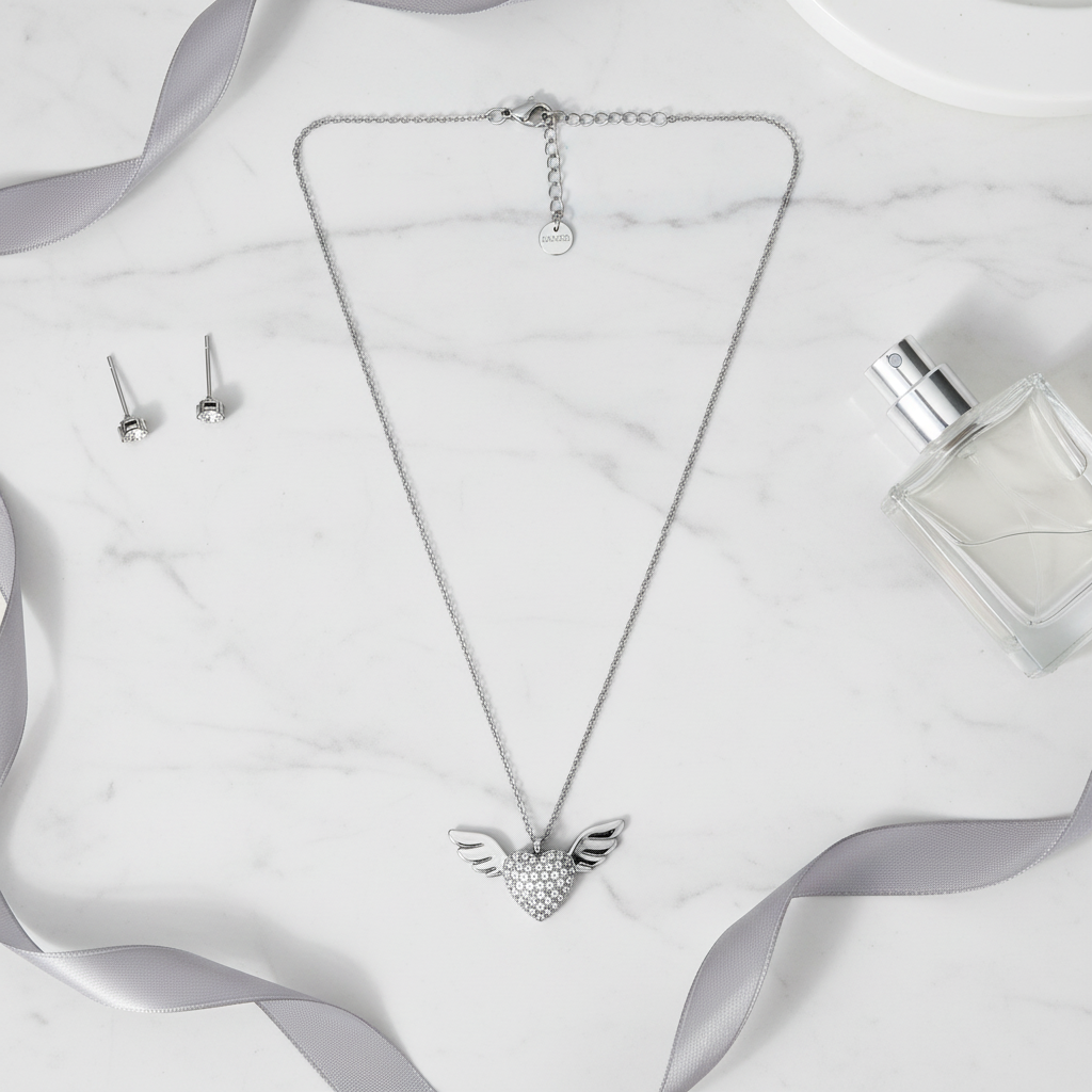 • Μοτίφ: Καρδιά με φτερά, γεμάτη στρας