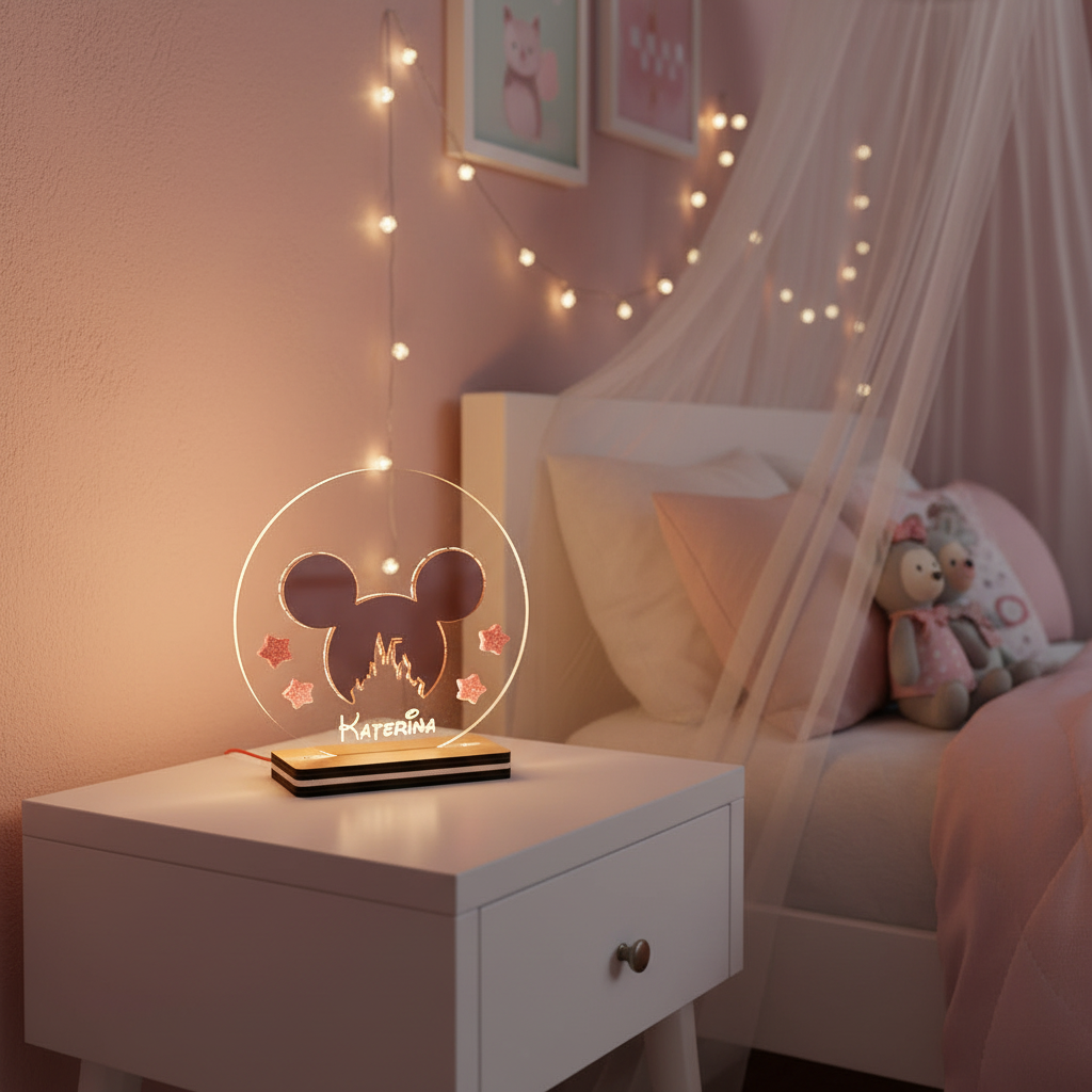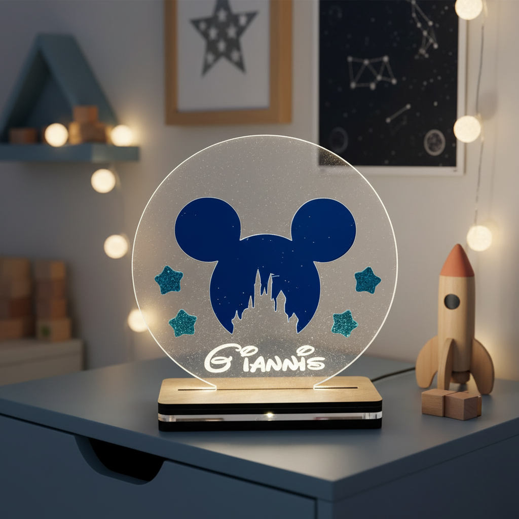 🤍✨ Επιτραπέζιο LED Φωτιστικό Μίκυ με Προσωποποίηση
