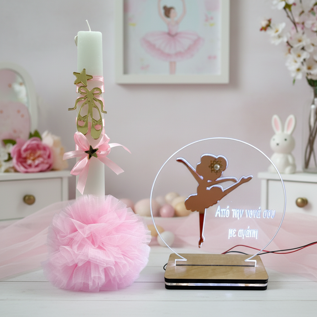 Χειροποίητη Πασχαλινή Λαμπάδα Μπαλαρίνα με προαιρετικό LED Φωτιστικό