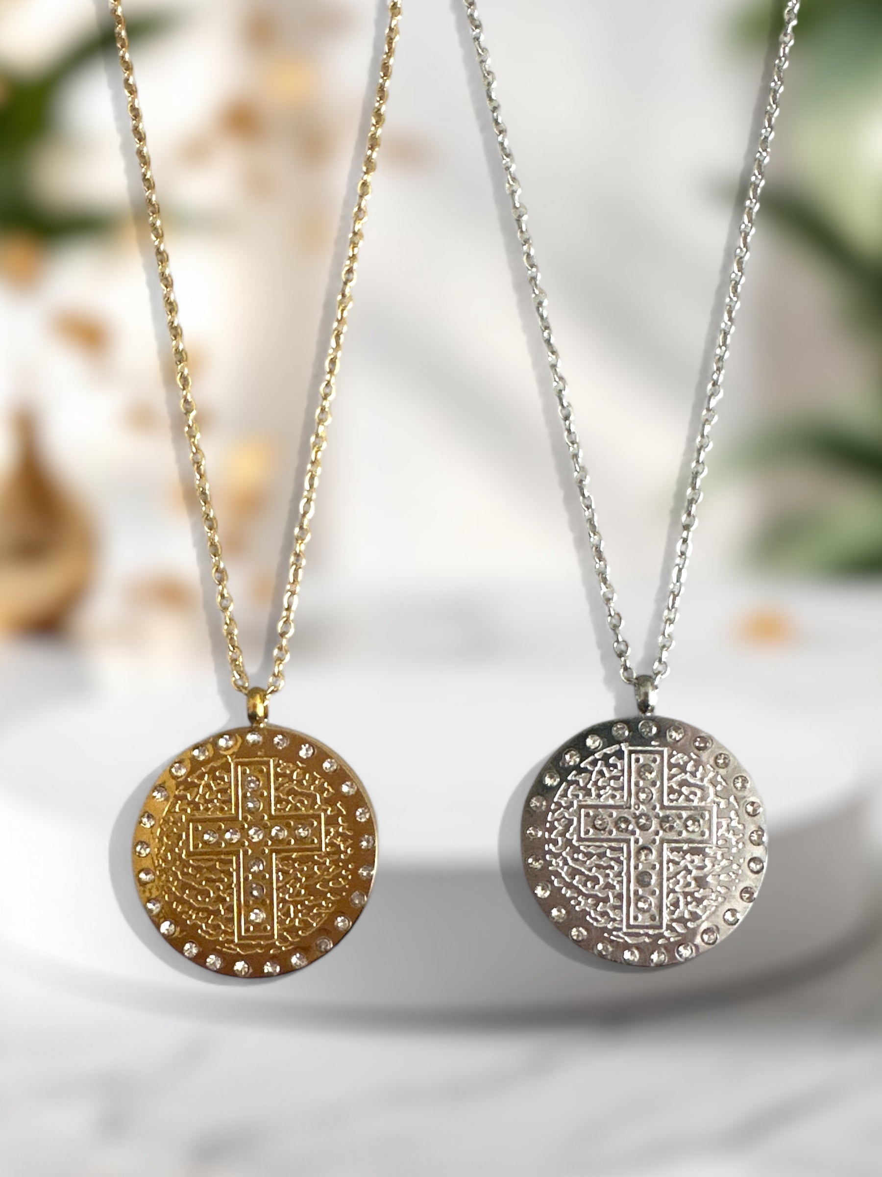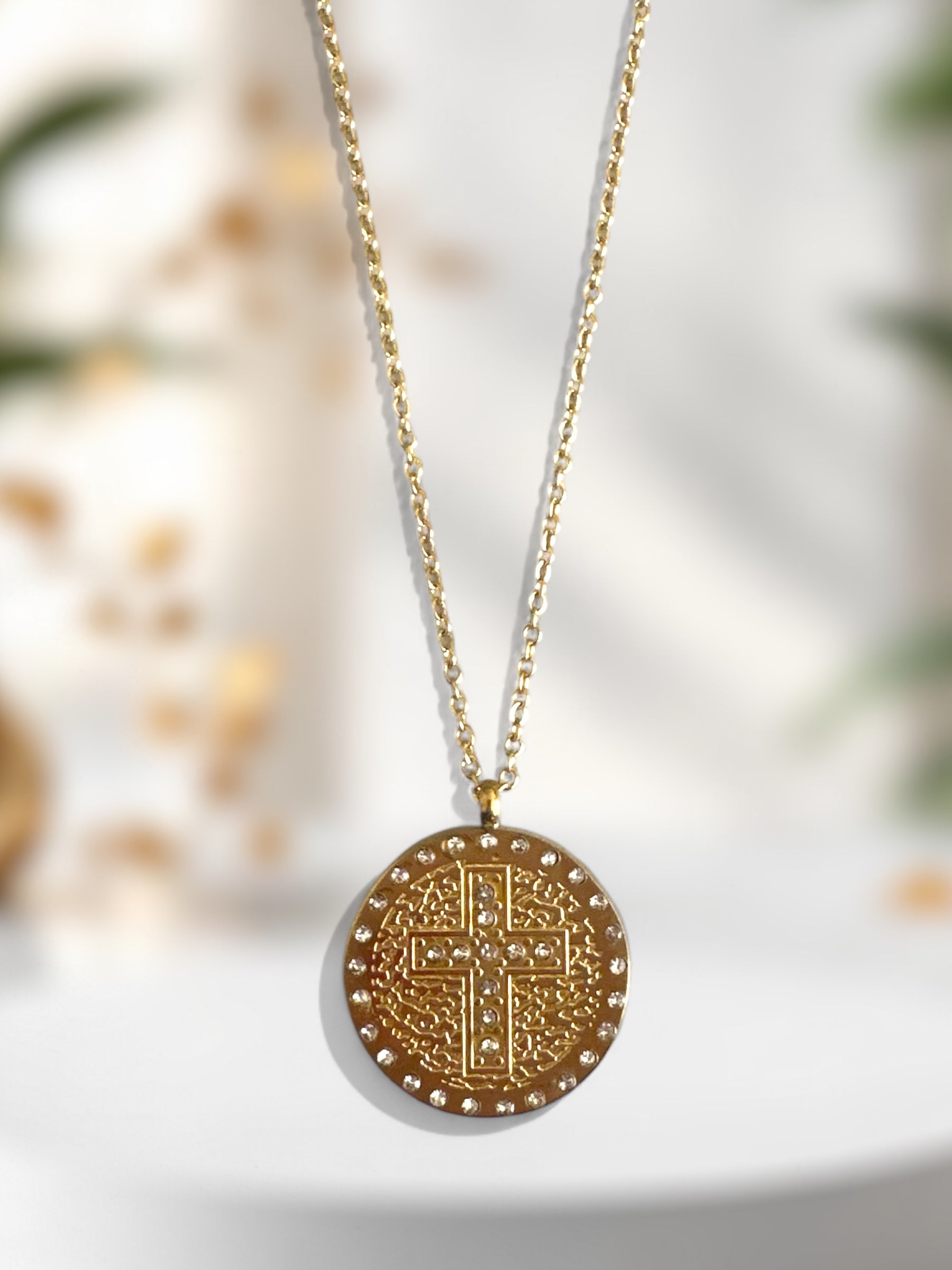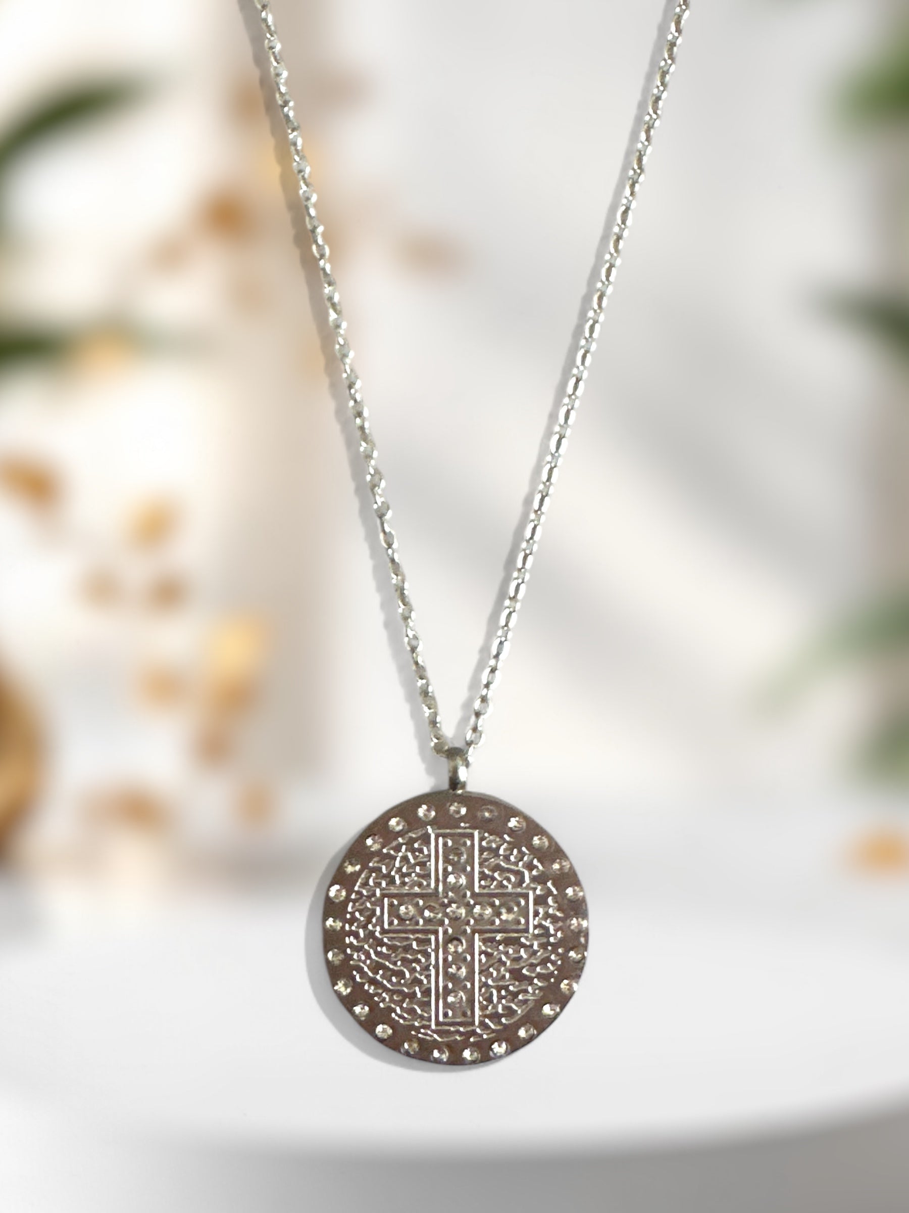 Μενταγιόν: Κυκλικό με ανάγλυφο σταυρό & στρας