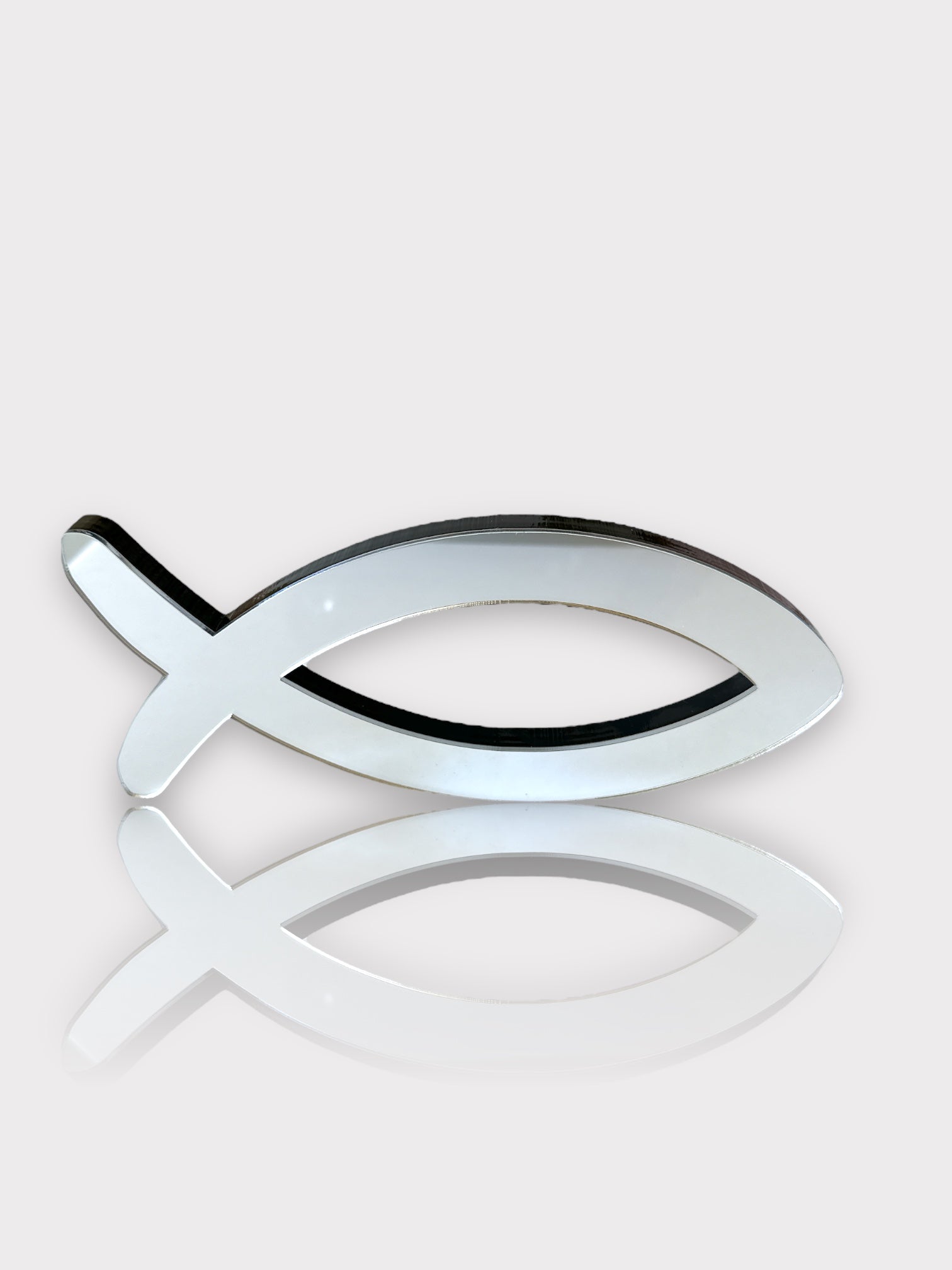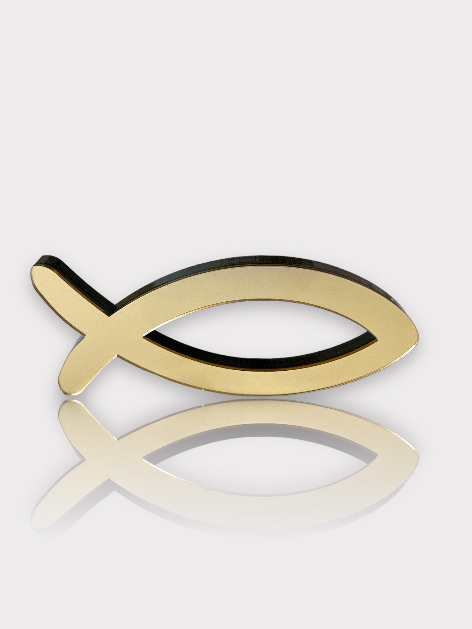 Χειροποίητο επιτραπέζιο διακοσμητικό ψάρι περίγραμμα σε μίνιμαλ γραμμή, από μαύρο πλεξιγκλάς με επικάλυψη καθρέφτη, σε χρυσό ή ασημί χρώμα.