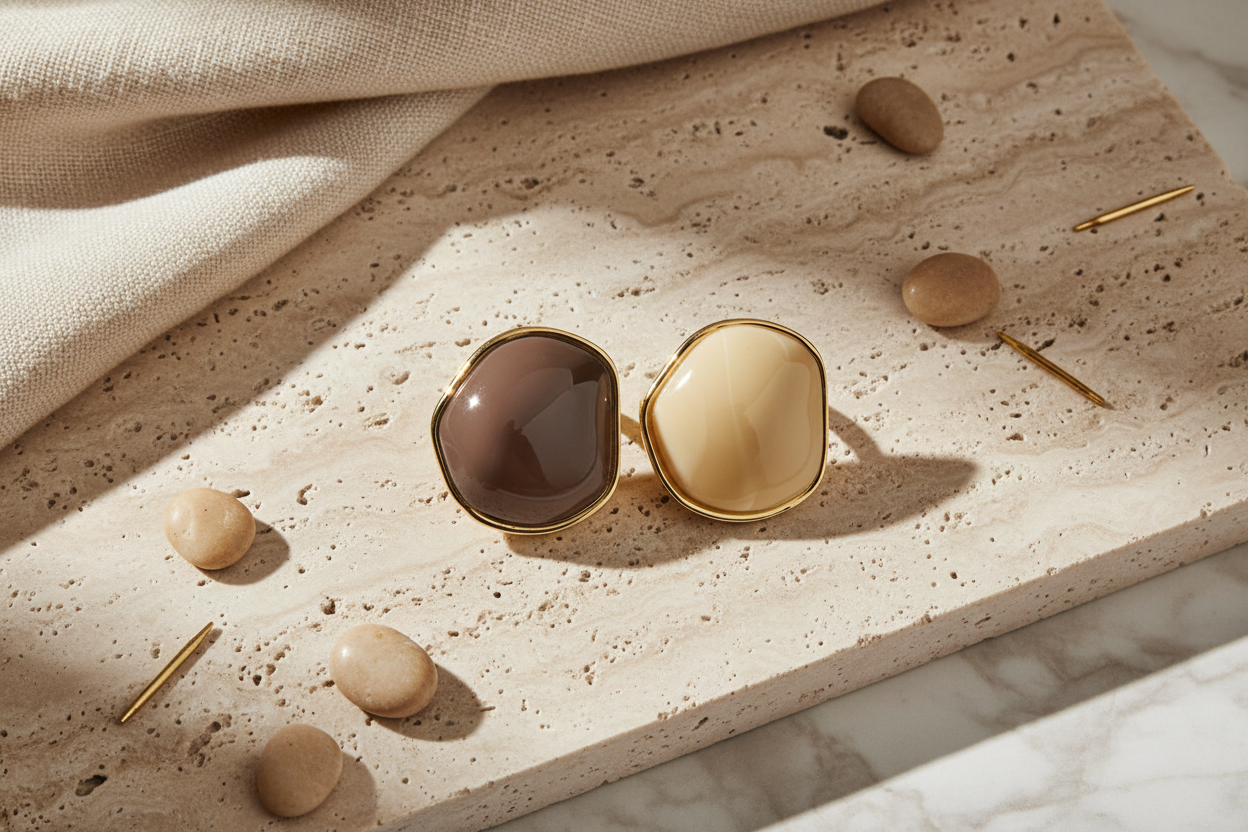 Σύγχρονο statement δαχτυλίδι από ανοξείδωτο ατσάλι με ακανόνιστη πέτρα, σχεδιασμένο για εύκολη ένταξη σε fashion συλλογές με organic και minimal χαρακτήρα. Το σχέδιο έχει υψηλή εμπορικότητα χάρη στη φυσική αισθητική του και την ευκολία στο styling.