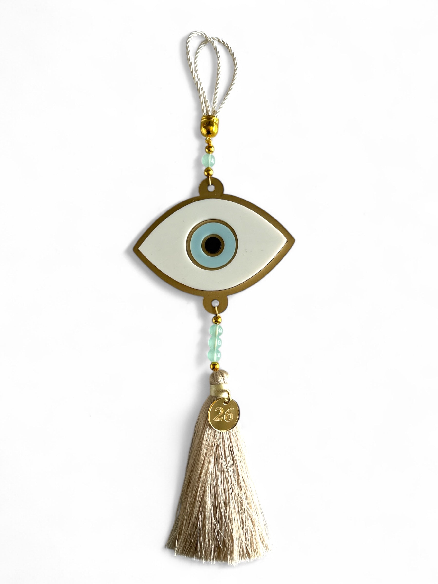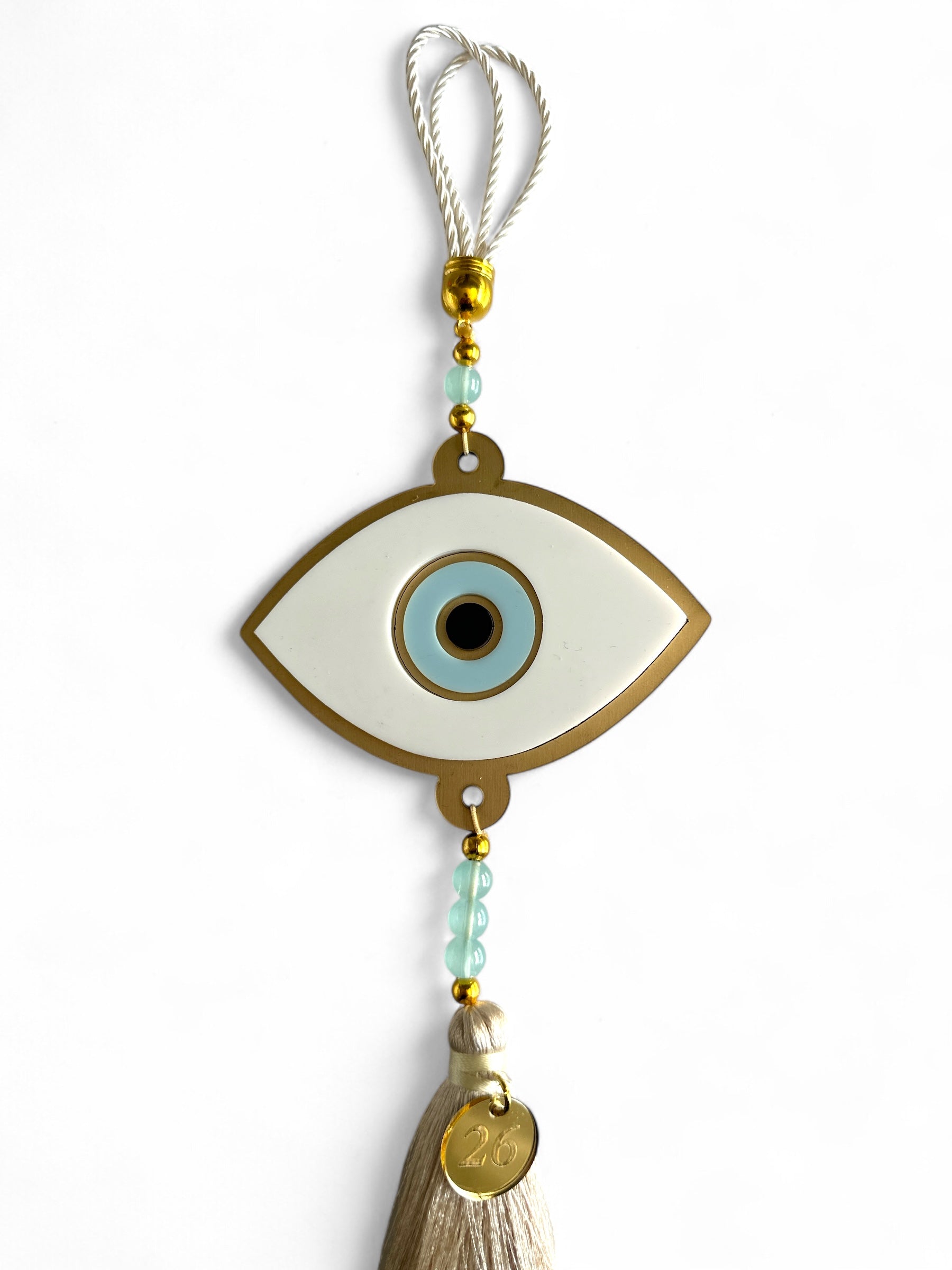 🤍✨ Γούρι 2026 Κρεμαστό Μάτι Οβάλ – Χρυσό Ματ Καθρέφτη & Plexiglass