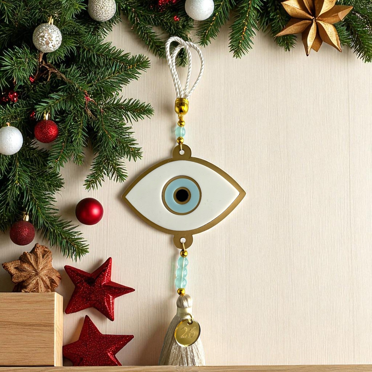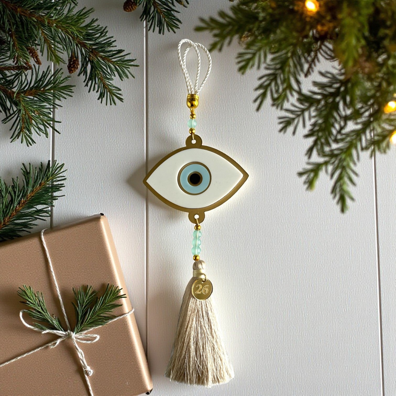 Minimal με πολυτελή διάθεση, το γούρι αυτό συνδυάζει χρυσό ματ καθρέφτη, plexiglass, χάντρες και μεταλλικό tag 2026. Με μήκος 32 εκ. και πολυτελή φούντα, αποτελεί ιδανική πρόταση για gift shops, concept stores, καταστήματα διακόσμησης και εταιρικά δώρα.