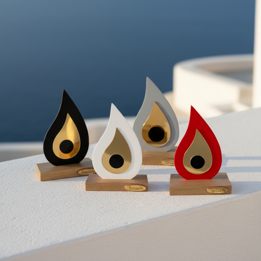 Τοποθετημένο σε επιτραπέζια βάση, συνδυάζει minimal–luxury design με τον διαχρονικό συμβολισμό προστασίας. Ιδανικό για εποχιακές συλλογές δώρων, gift shops και corporate gifting.