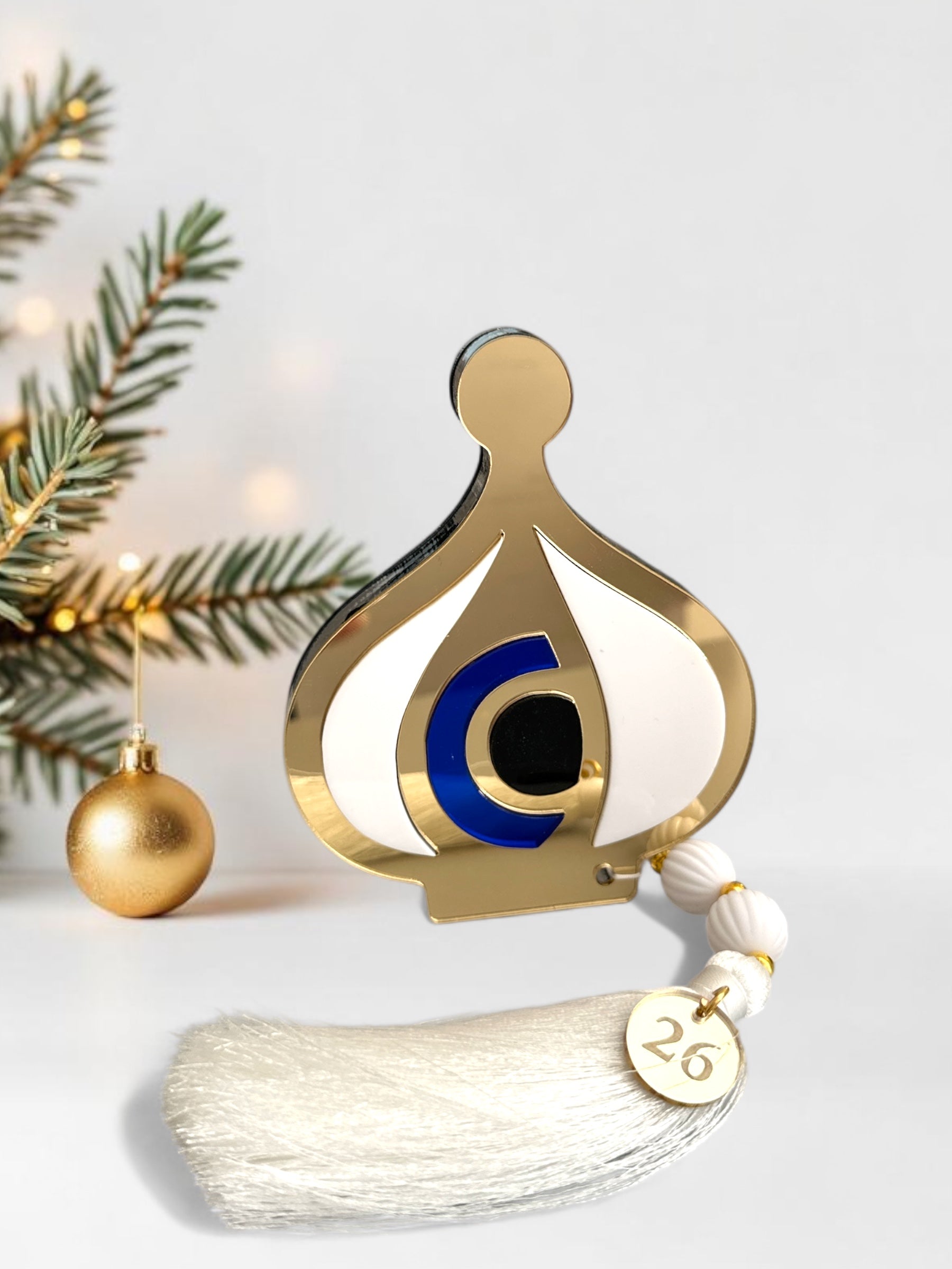 Διακοσμείται με πολυτελή φούντα και charm «26» για τη νέα χρονιά.