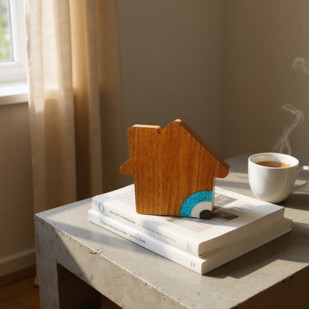 Επιτραπέζιο Γούρι Σπιτάκι με Μάτι – Ξύλο & Plexiglass
