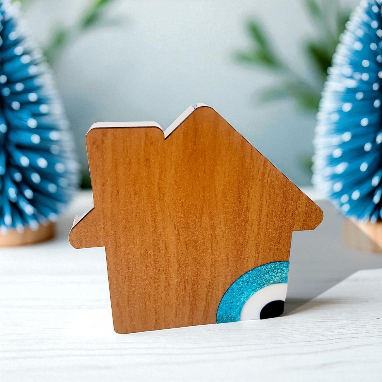 Ένα ιδιαίτερο χειροποίητο επιτραπέζιο γούρι σπιτάκι κατασκευασμένο από ξύλο και plexiglass, με μάτι προστασίας. Μοντέρνο και κομψό, αποτελεί ιδανική επιλογή για καταστήματα, εταιρικά δώρα ή εποχιακές συλλογές Χριστουγέννων. Το σπιτάκι συμβολίζει τη θαλπωρή και την οικογενειακή ευτυχία, ενώ το μάτι προσφέρει τύχη και προστασία.