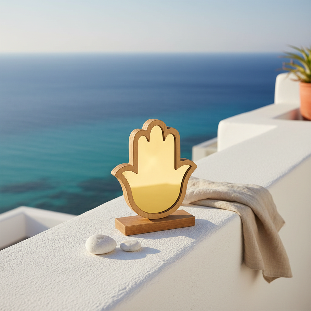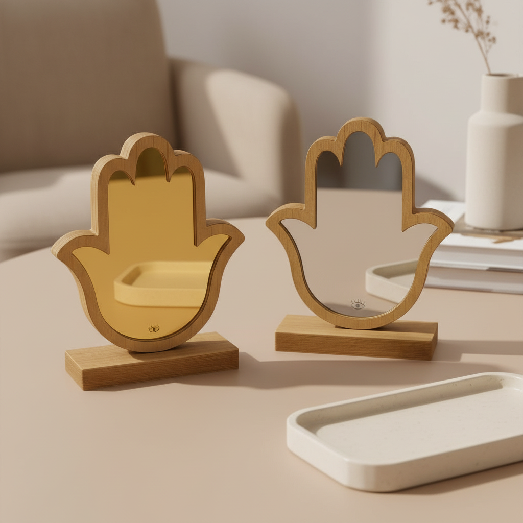 🤍✨Επιτραπέζιο Διακοσμητικό Hamsa – Χρυσό & Ασημί Mirror