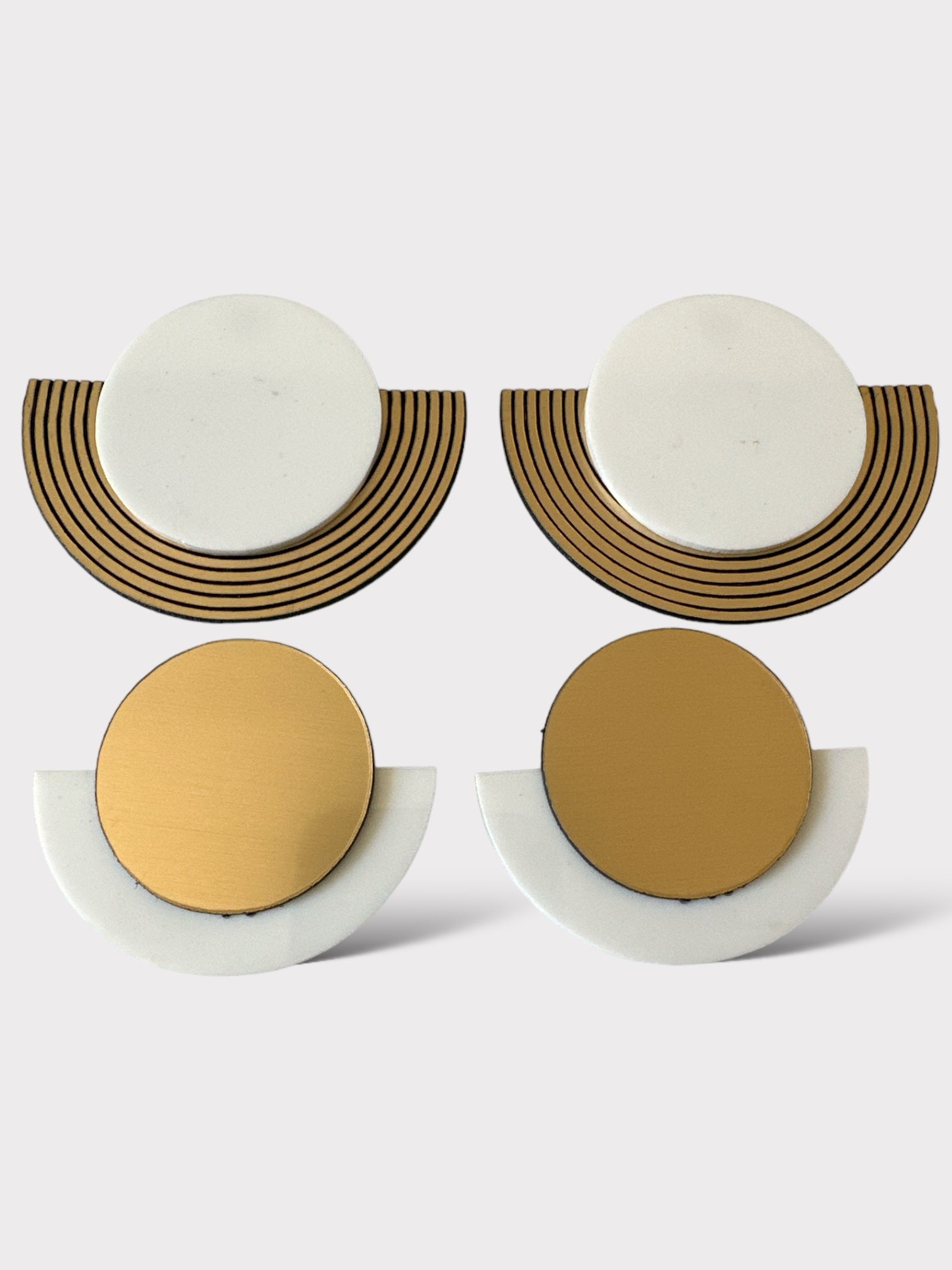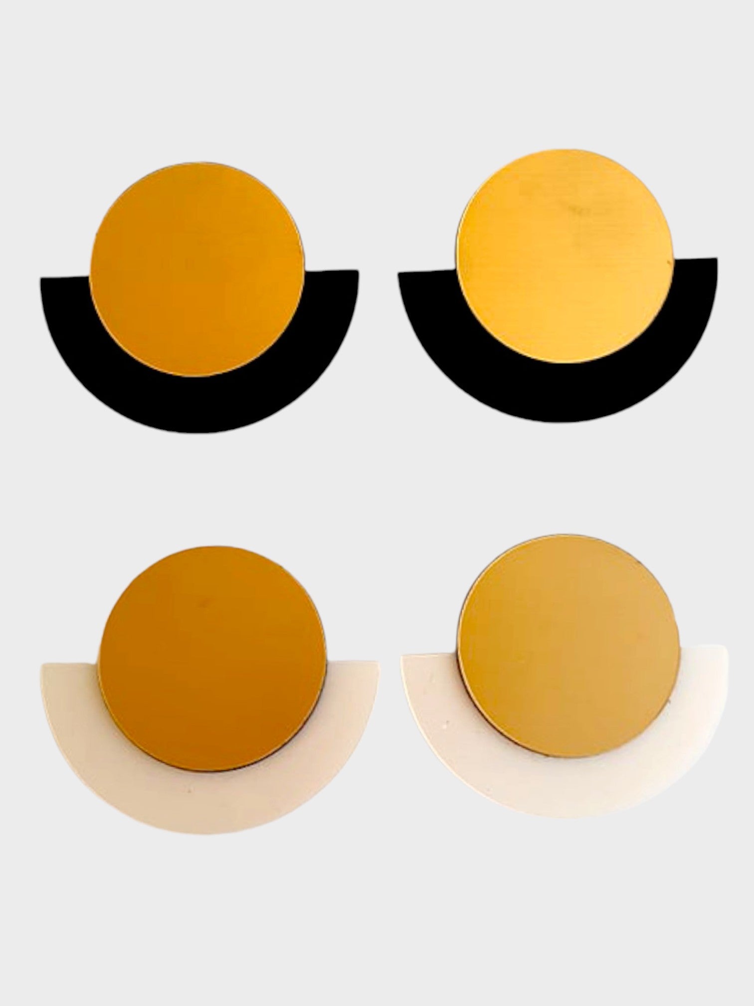 Χειροποίητα σκουλαρίκια με πλέξιγκλάς κύκλο και ημικύκλιο,
