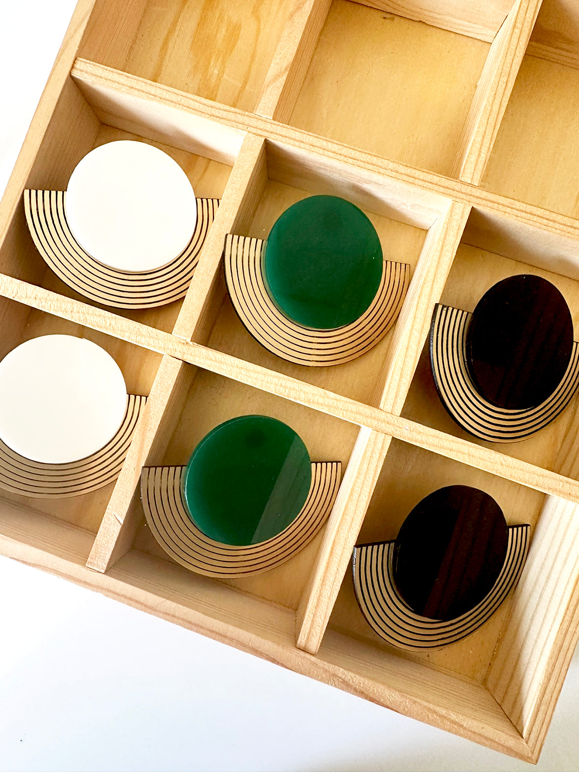 Χειροποίητα σκουλαρίκια με κύκλο και ανάγλυφο ριγέ ημικύκλιο από πλεξιγκλάς.