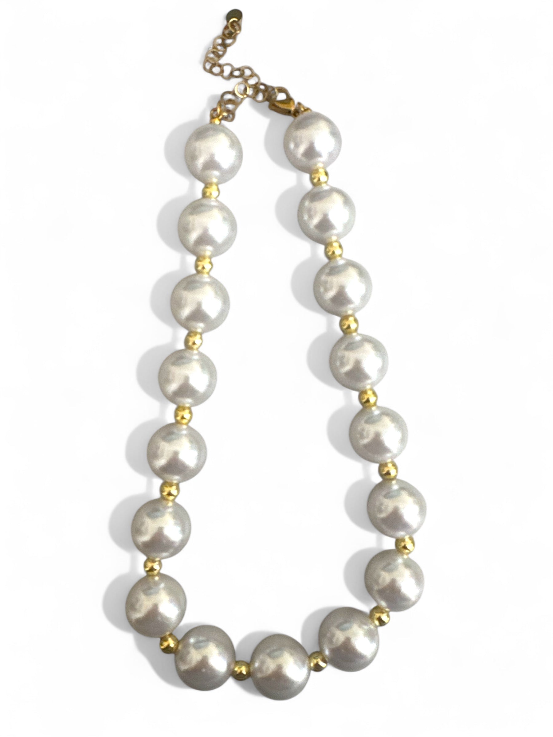 Οι πέρλες επιστρέφουν δυναμικά αλλά σε XL διάθεση! Το Golden Pearl Glow είναι ένα statement χειροποίητο κολιέ με μεγάλες περλέ χάντρες 12mm και μεταλλικές λεπτομέρειες αιματίτη σε χρυσό, για κομψότητα που δεν περνά απαρατήρητη. Ιδανικό για κάθε elegant ή festive outfit που χρειάζεται λίγη… λάμψη παραπάνω! 🌟