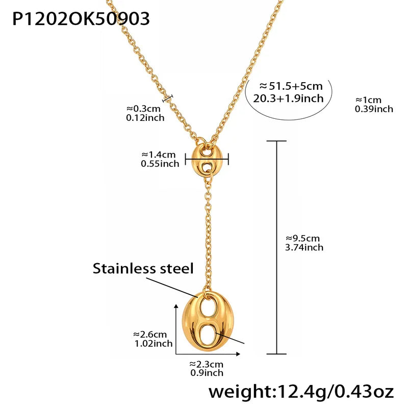 Κατασκευασμένο από ανοξείδωτο ατσάλι 304 με επιχρύσωση 18K PVD, αντέχει στη χρήση και χαρίζει εντυπωσιακό φινίρισμα. Το γεωμετρικό pendant δημιουργεί μια minimal αλλά bold αισθητική, ενώ το μήκος του κολιέ αναδεικνύει το ντεκολτέ, κάνοντάς το ιδανικό για layered looks ή ως μοναδικό κομμάτι που τραβά τα βλέμματα.