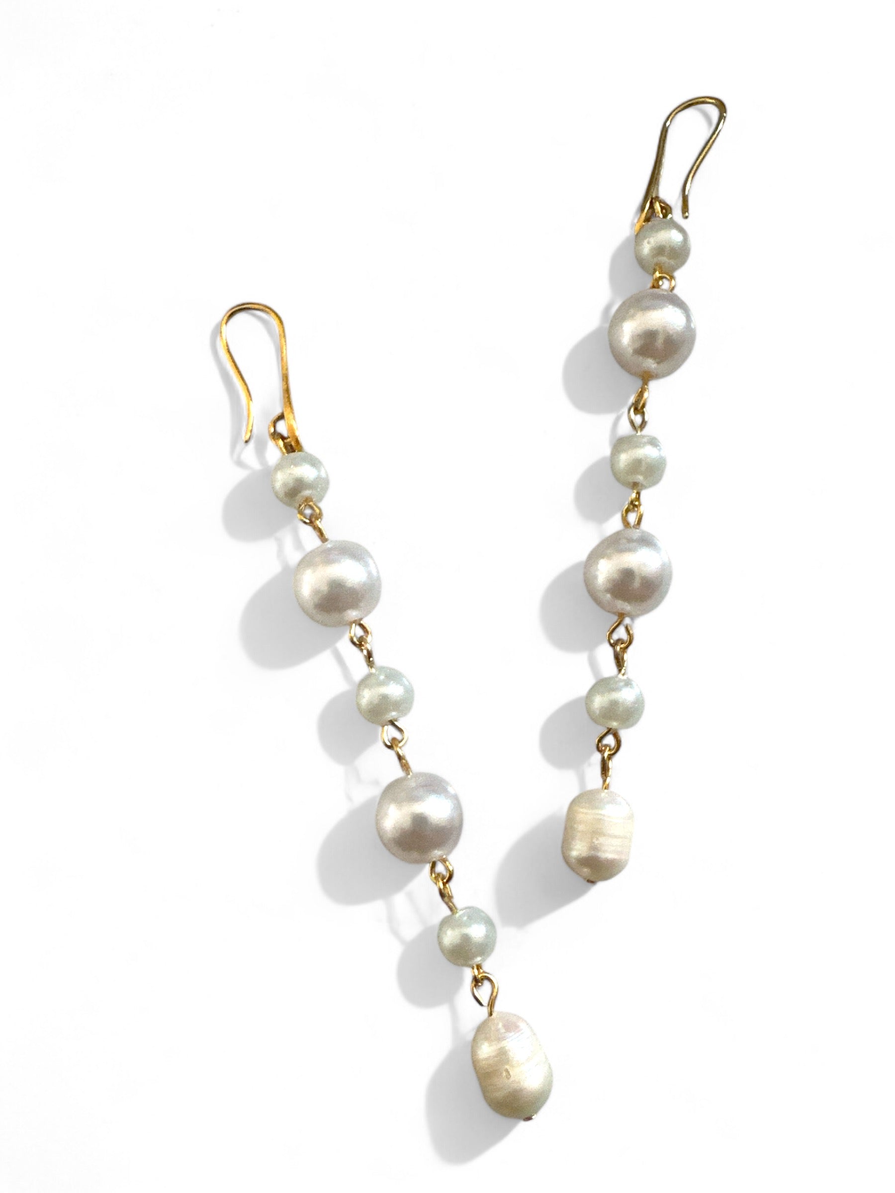Χειροποίητα μακριά σκουλαρίκια με γάντζο με ατσάλινο καρφί και πέρλες.