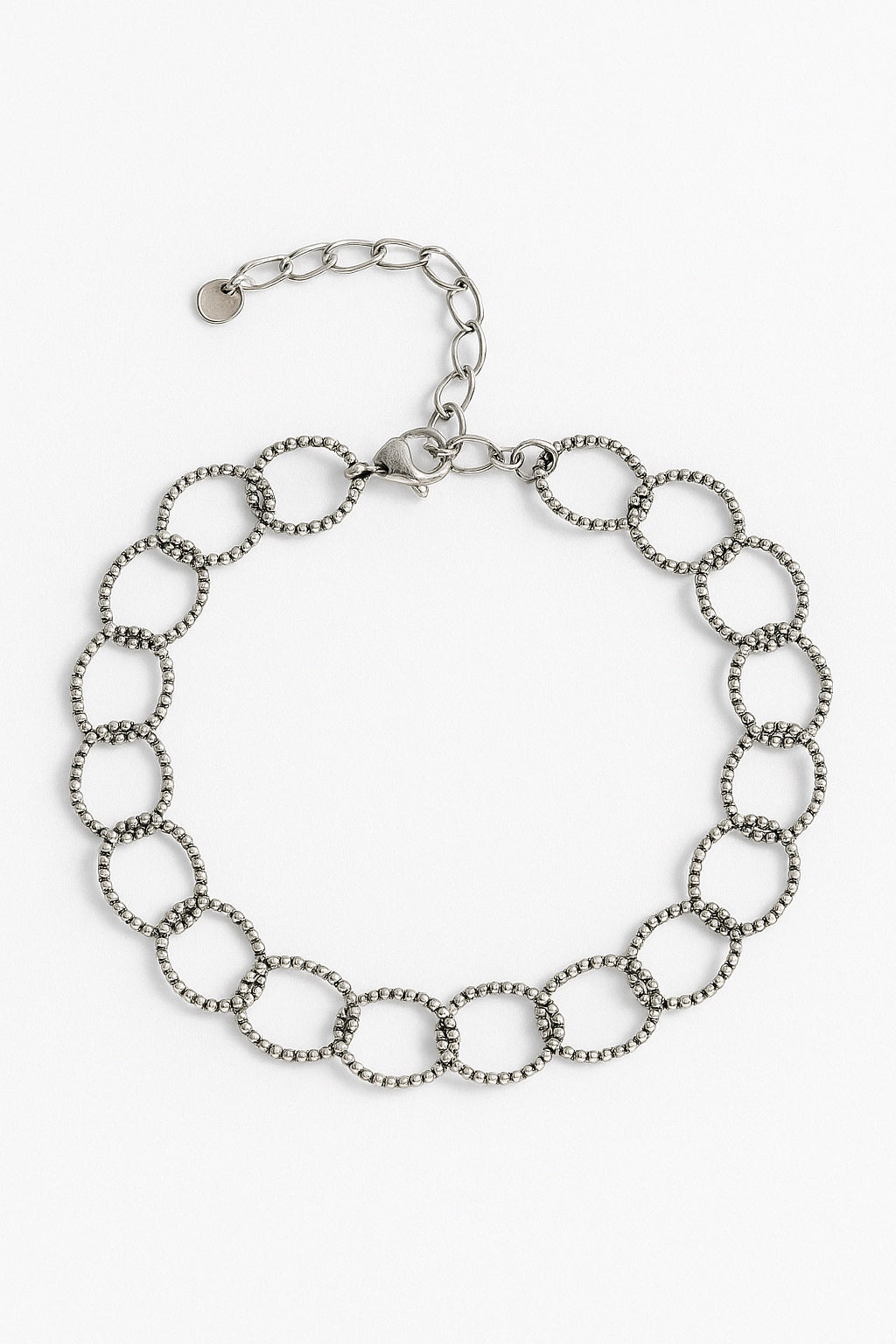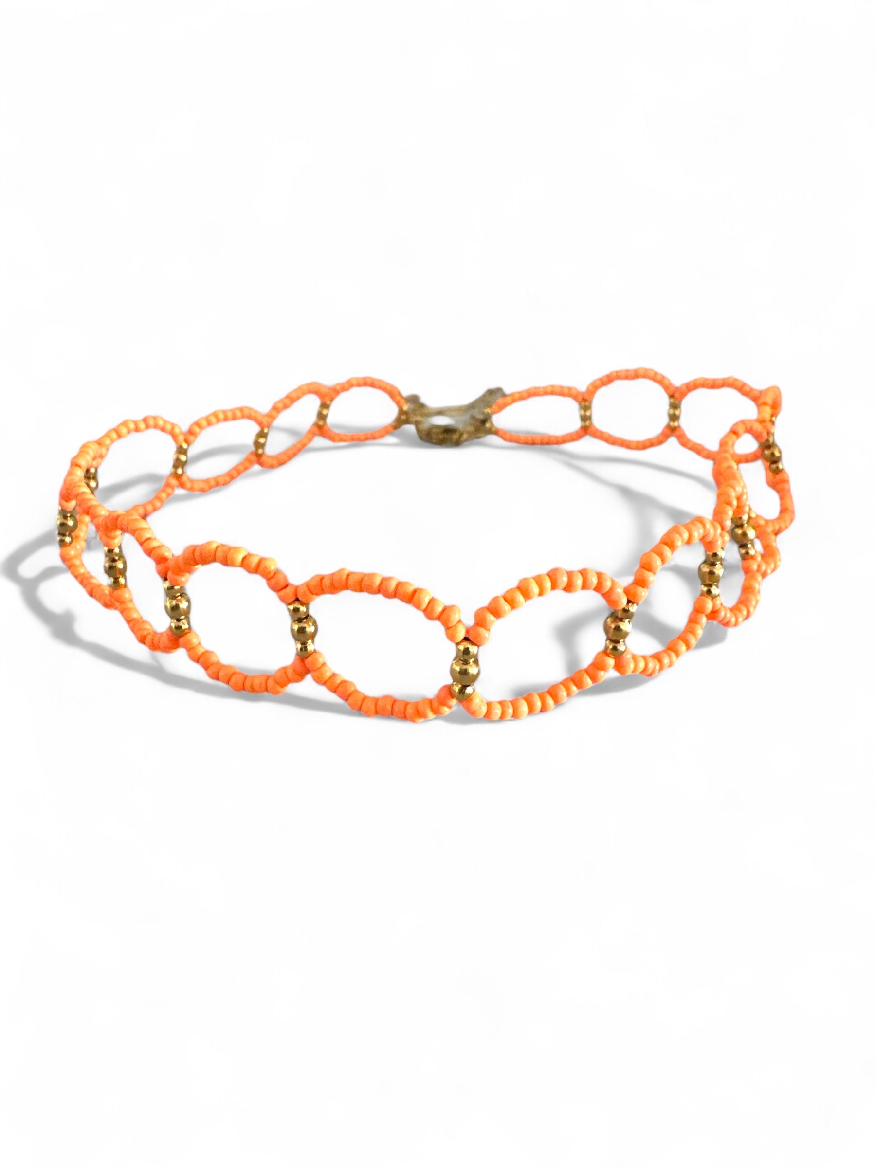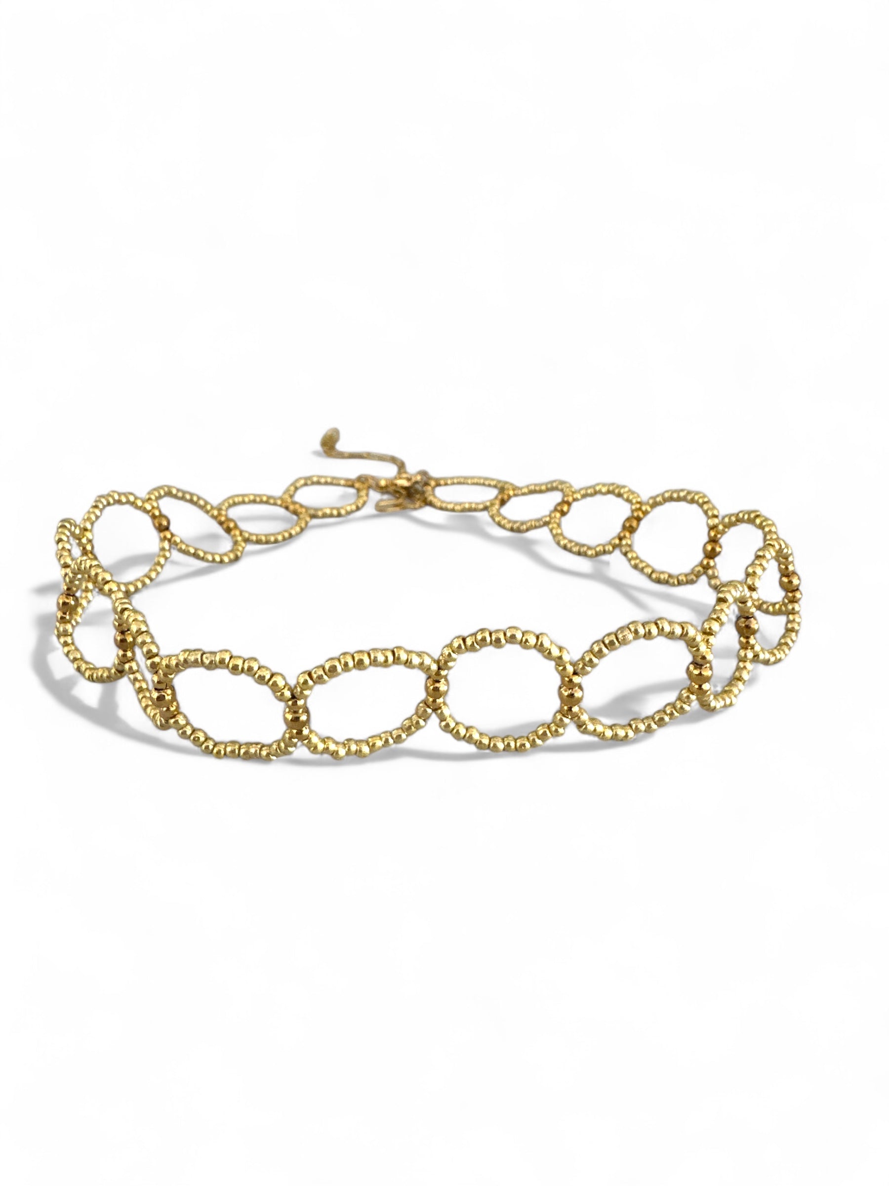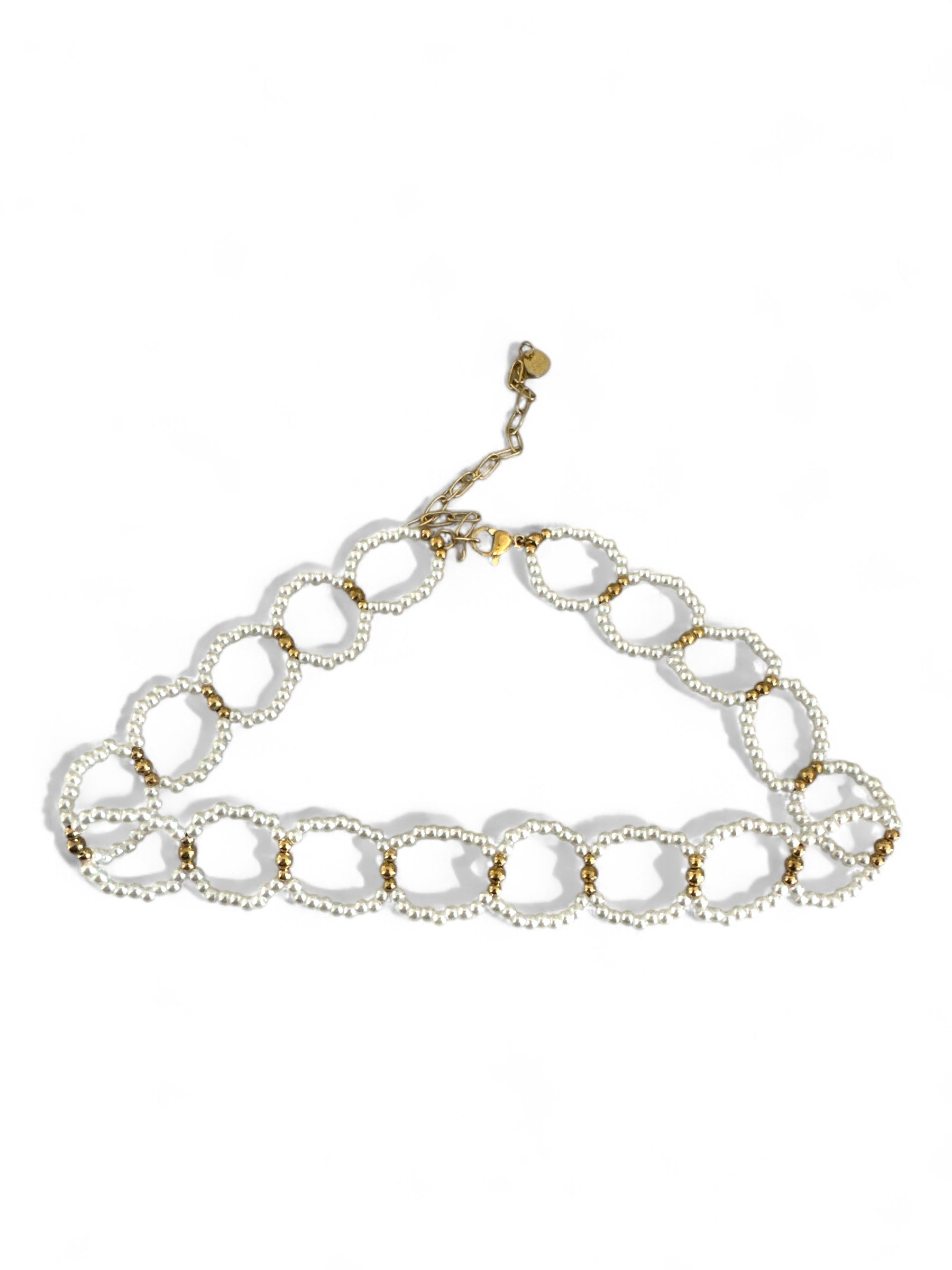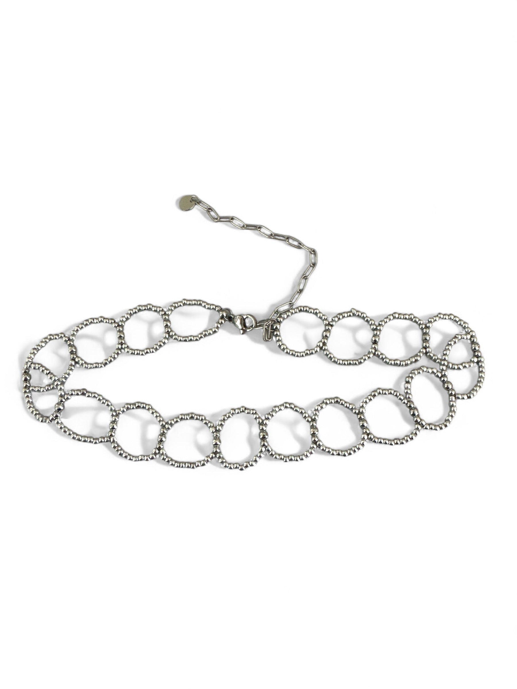 Με κρίκους από μικροσκοπικές χάντρες που δημιουργούν έναν elegant αλλά παιχνιδιάρικο όγκο, το Orbit Choker χαρίζει λάμψη και υφή σε κάθε σου εμφάνιση.