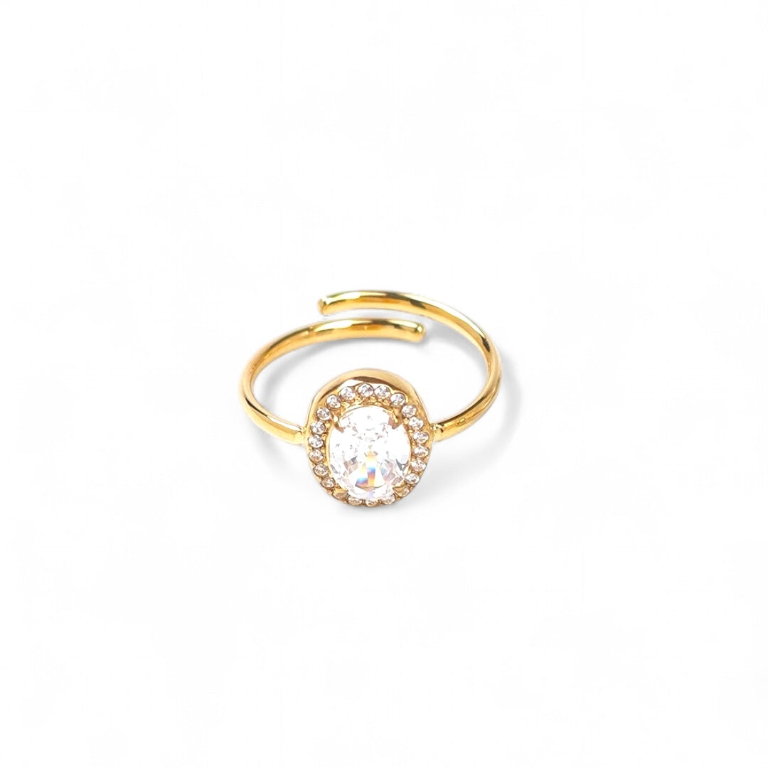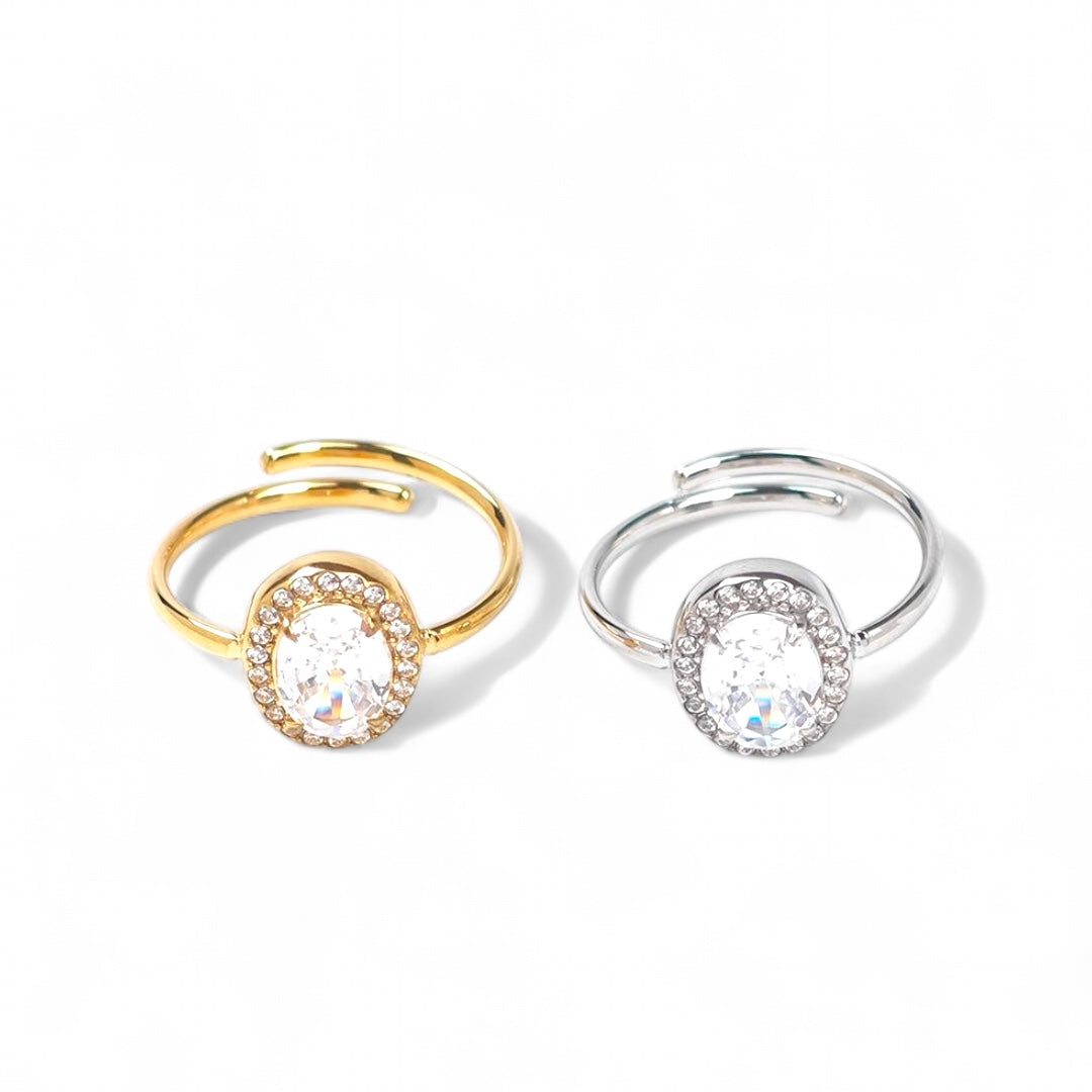 Διακριτικό αλλά με εντυπωσιακή λάμψη, το “Oval Spark” είναι το απόλυτο δαχτυλίδι για bridal, classy και glam περιστάσεις. Με οβάλ λευκό ζιργκόν στο κέντρο και pavé πλαίσιο, αποπνέει κομψότητα και ρομαντισμό. Η βάση από ανοξείδωτο ατσάλι είναι ανοιχτή, ώστε να προσαρμόζεται στο δάχτυλο.