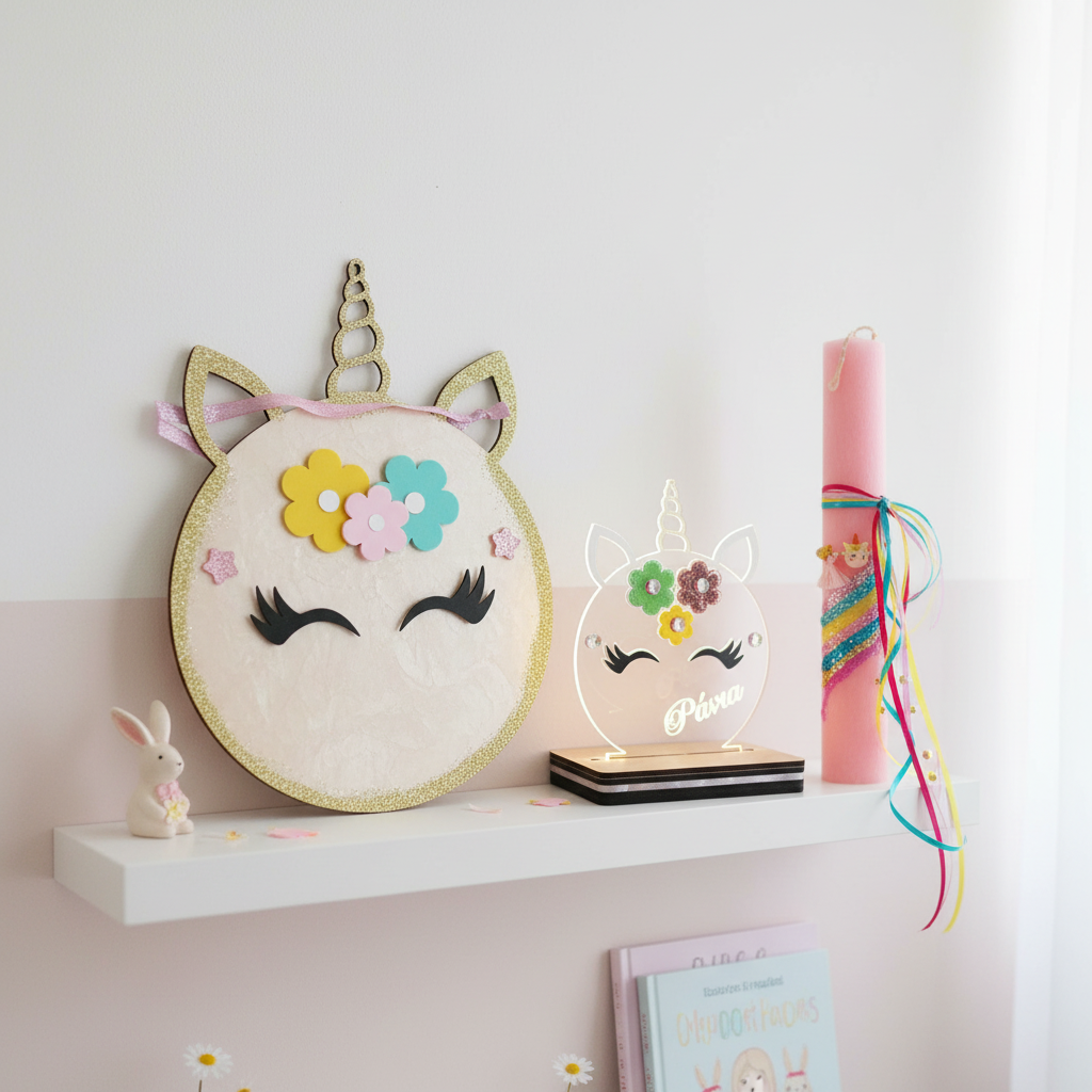 • Σετ 2: Λαμπάδα Unicorn + Επιτοίχιο Κάδρο Unicorn