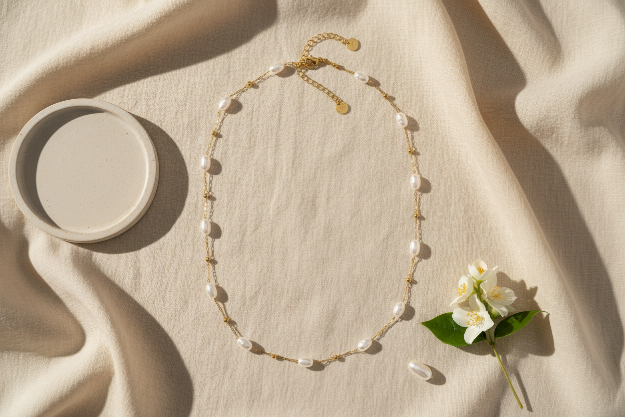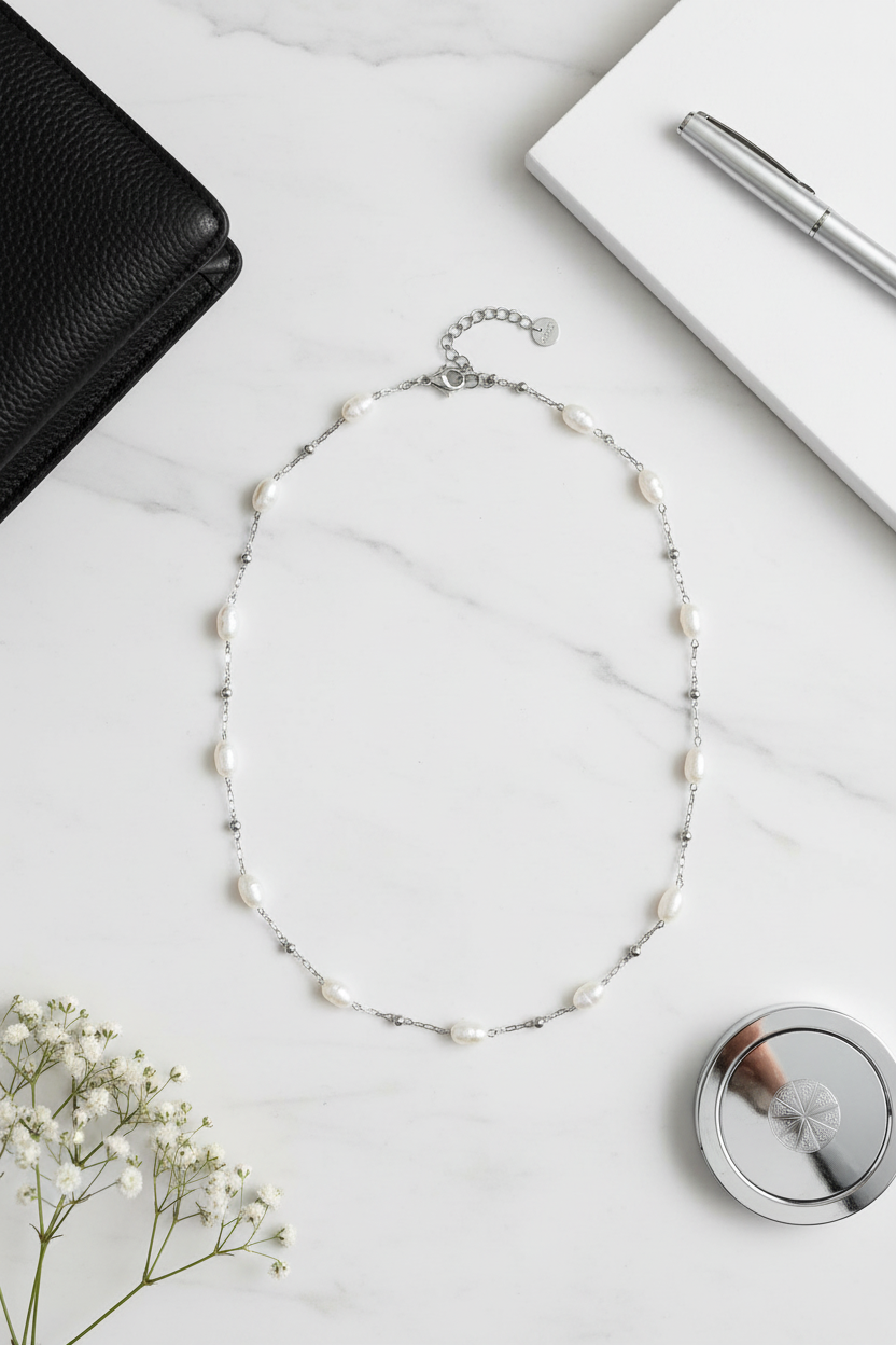 ⚡🚚Pearl Whisper – Ατσάλινο Κολιέ με Φυσικές Πέρλες
