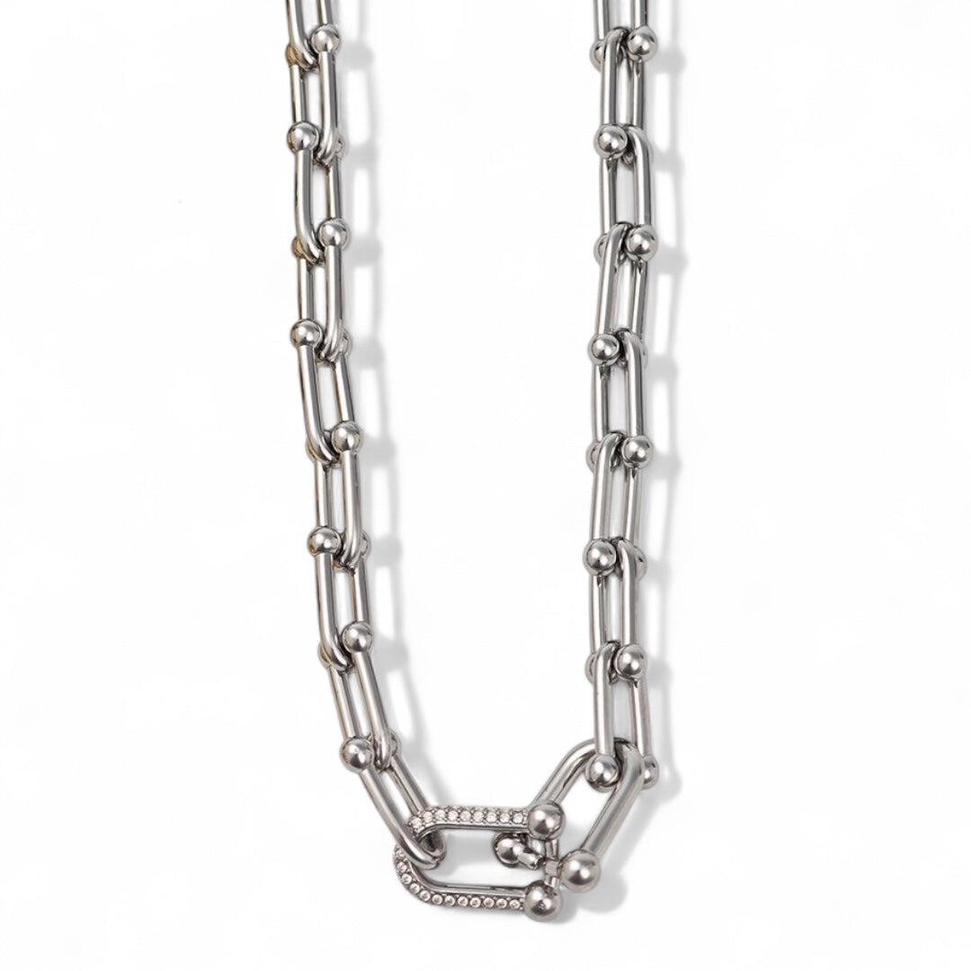 Chunky, δυναμικό και απόλυτα μοντέρνο! Το “Power Lock” είναι ένα bold ατσάλινο κολιέ που συνδυάζει industrial αλυσίδα με ιδιαίτερο κρίκο pavé από ζιργκόν για μια πινελιά λάμψης. Μεσαίου μήκους και αρκετά εντυπωσιακό για να φορεθεί μόνο του, αλλά και τέλεια βάση για layering.