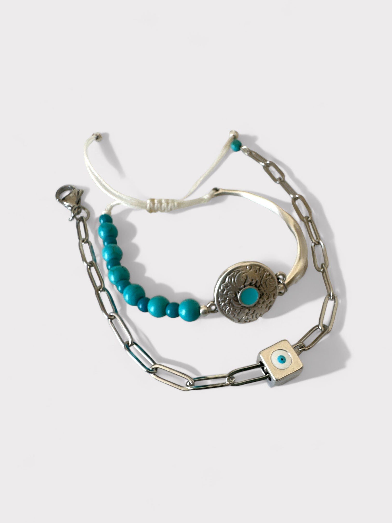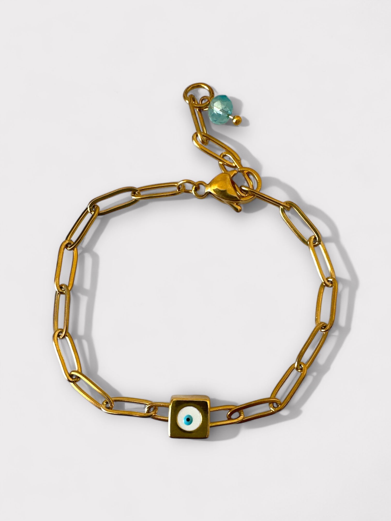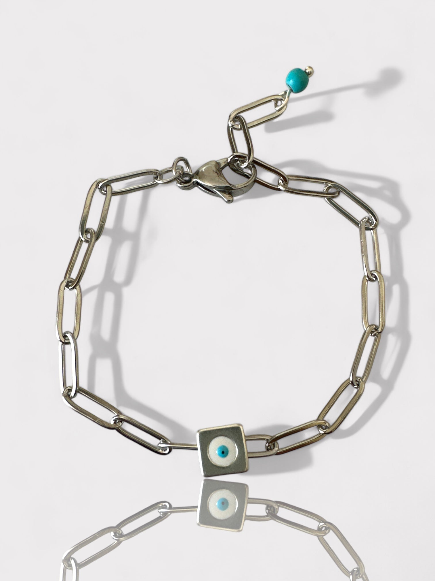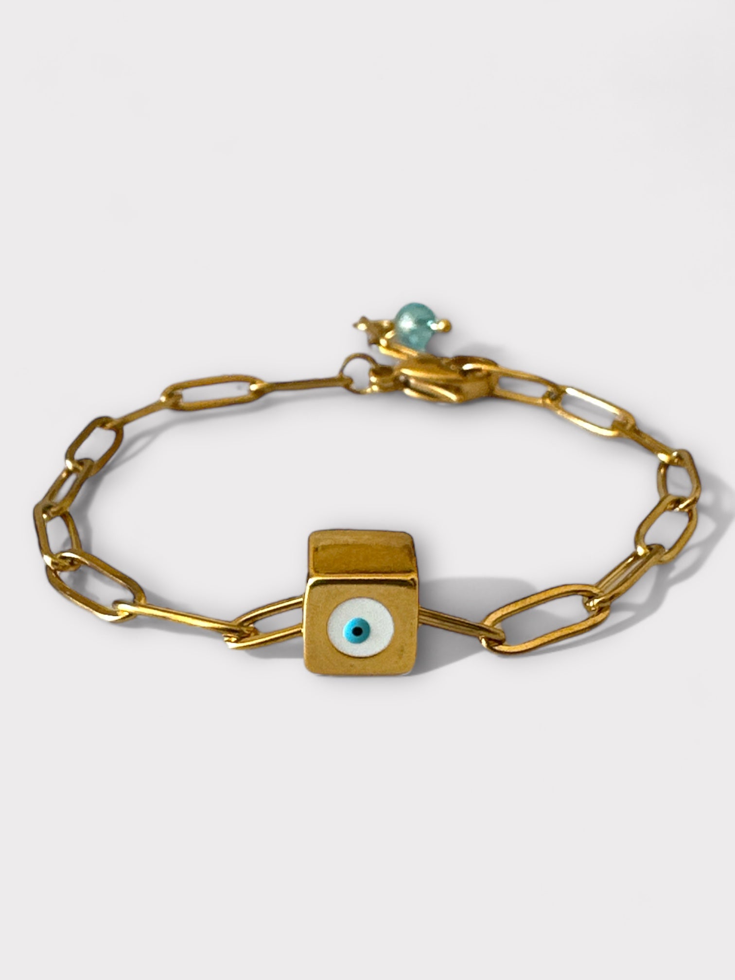 Βραχιόλι με ατσάλινη αλυσίδα και κύβο με μάτι