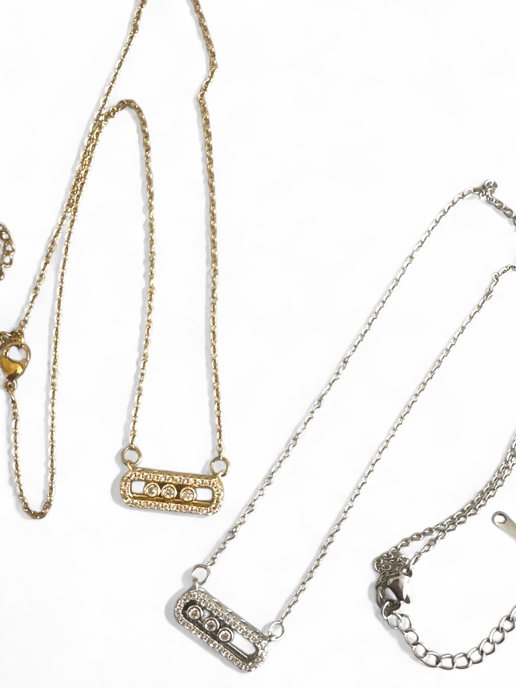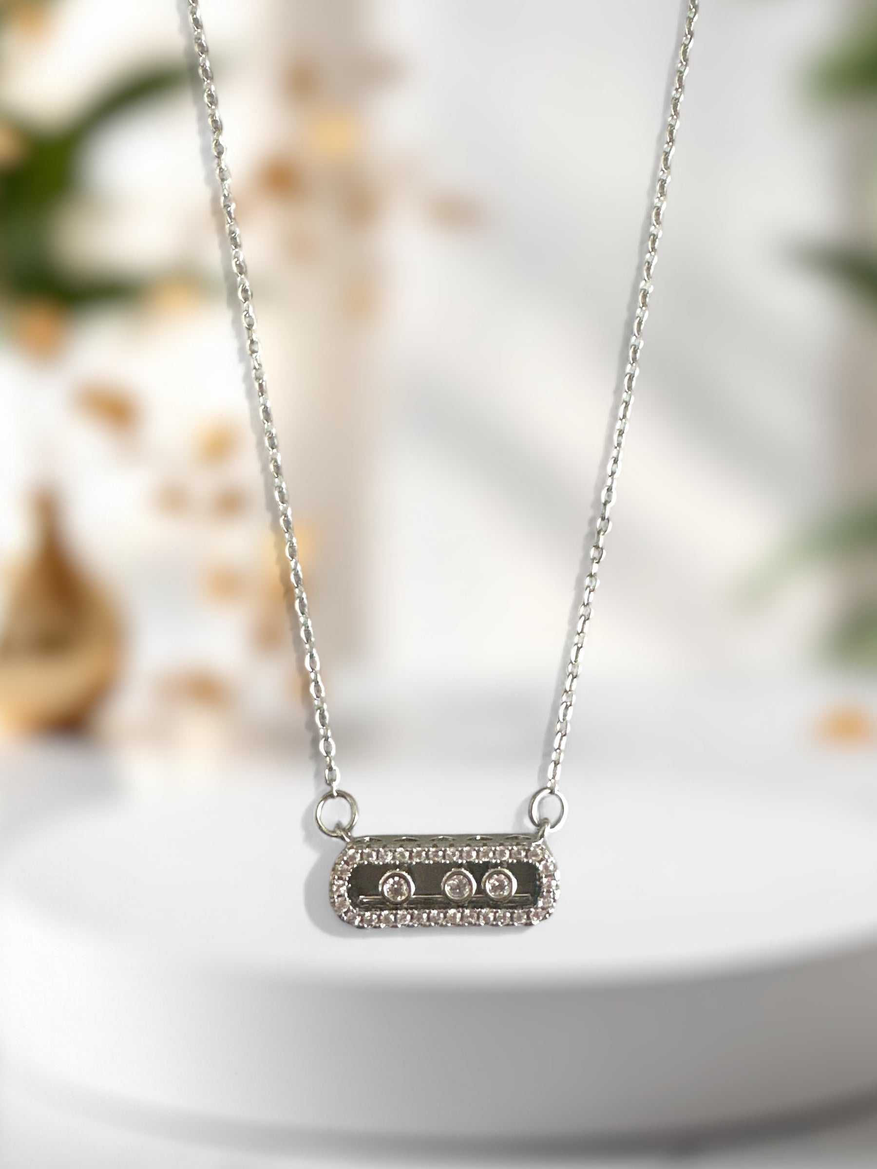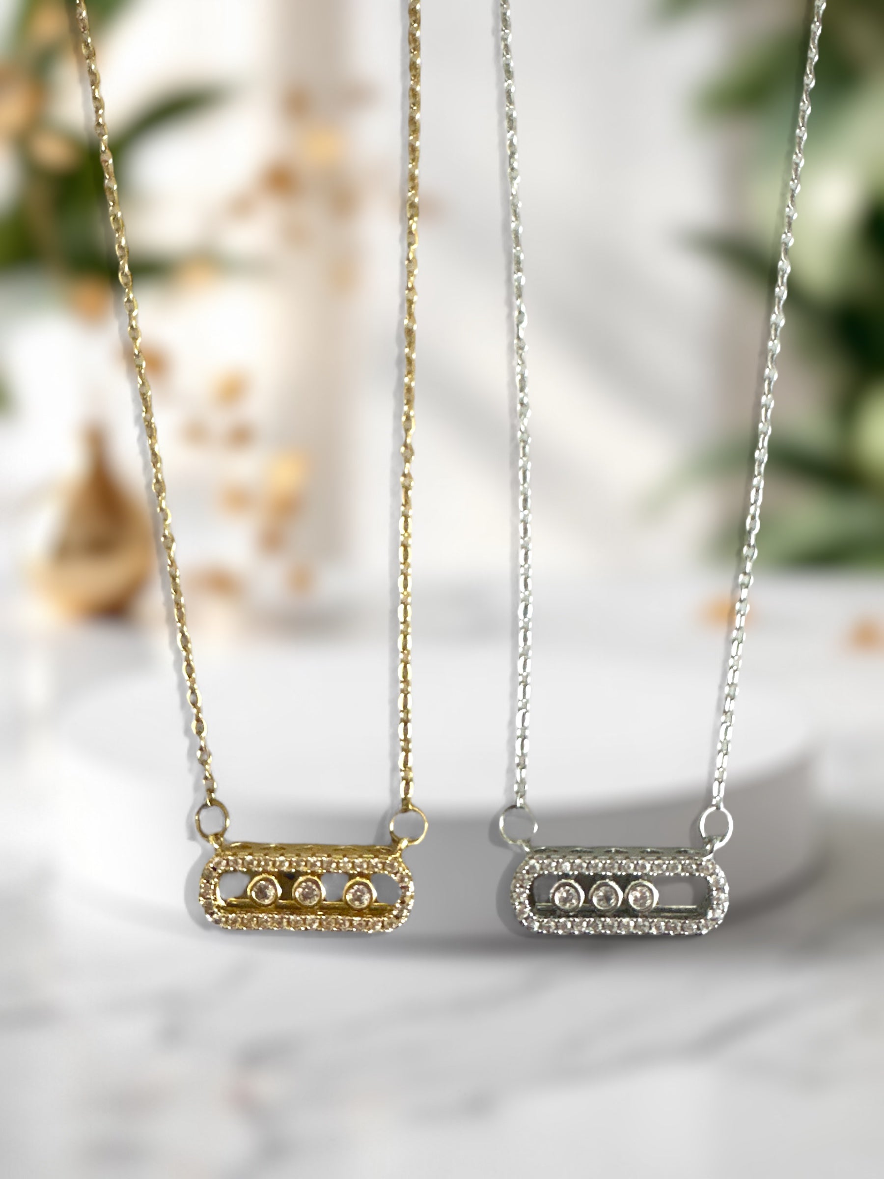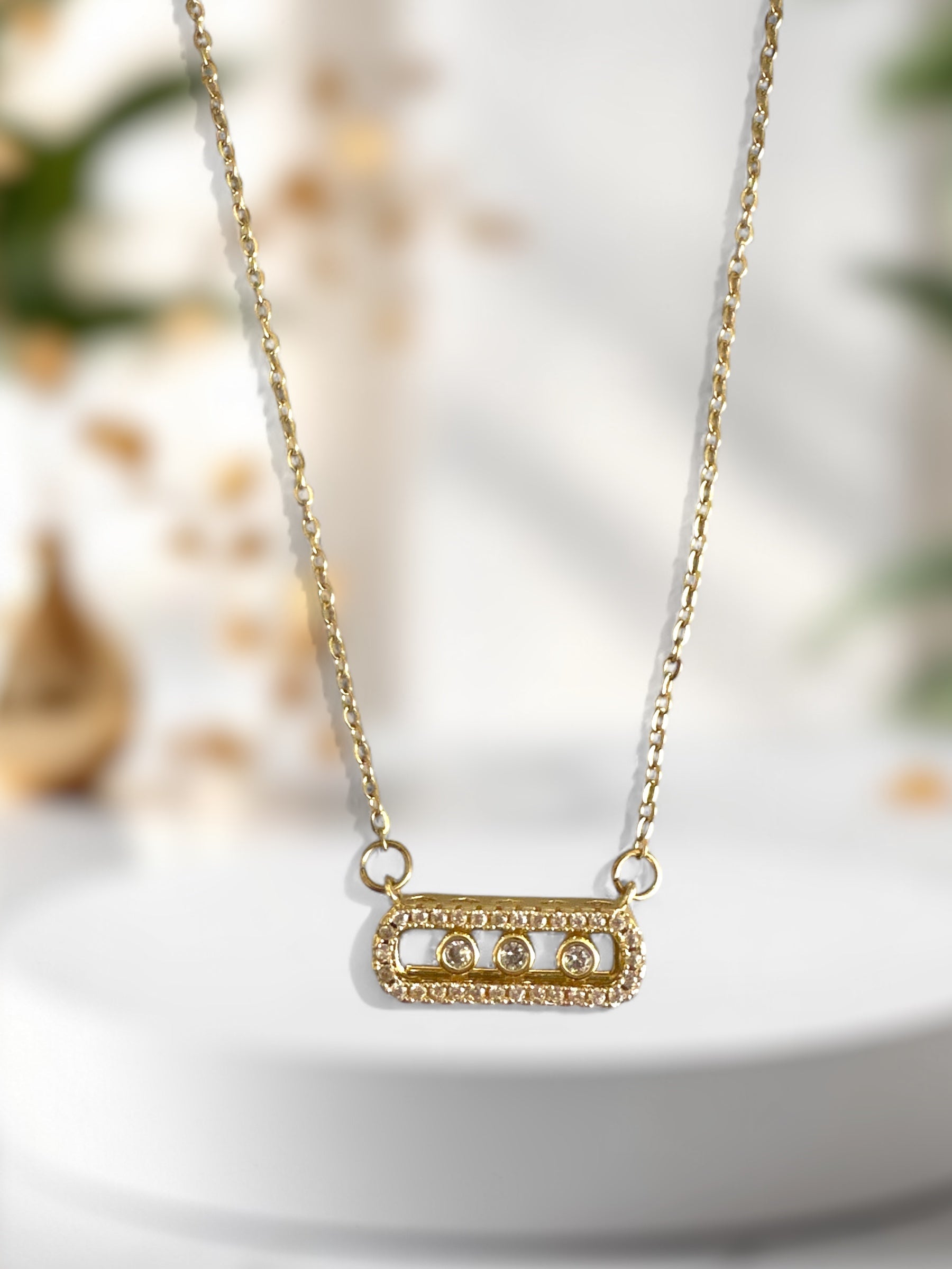 ⚡🚚 Trinity Spark – Κολιέ με τρεις πέτρες & ορθογώνιο charm