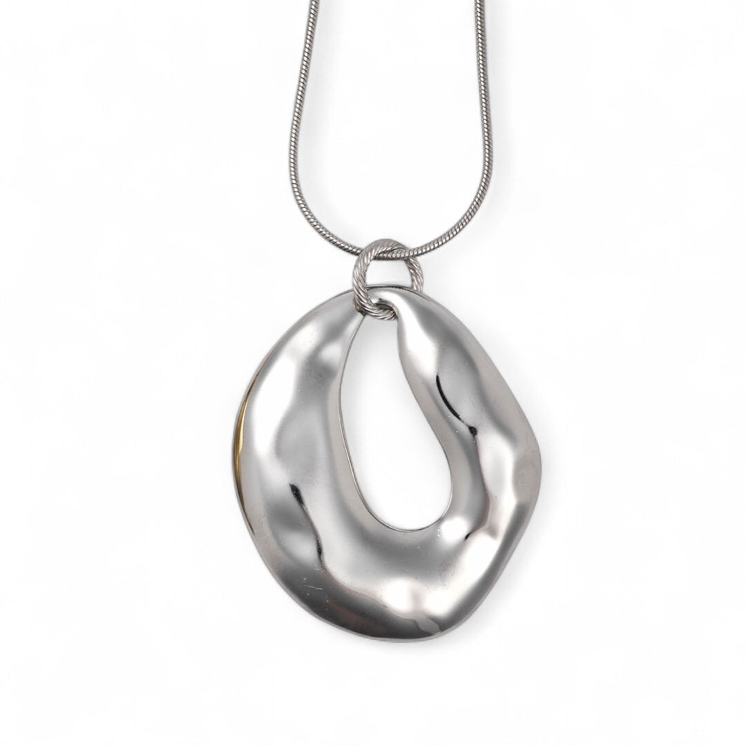 ⚡🚚 Κολιέ Sculptural Flow – Ατσάλινο Μεγάλο Μενταγιόν