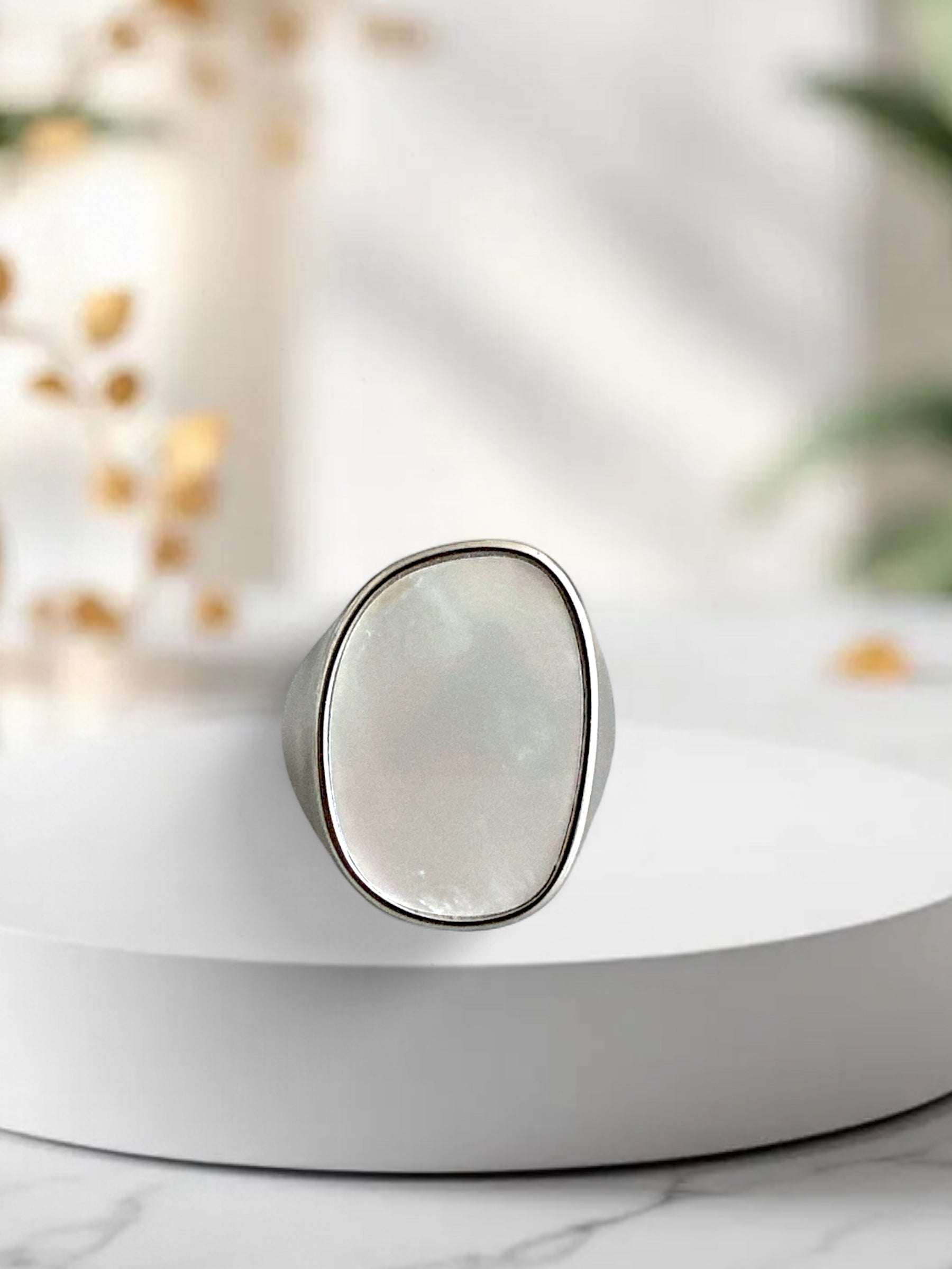 Το Shell Glow είναι το δαχτυλίδι που μαγνητίζει τα βλέμματα με την ήσυχη λάμψη του! Η mother of pearl όψη του χαρίζει κομψότητα και girly λάμψη, ενώ η bold μεταλλική του βάση το μετατρέπει στο απόλυτο fashion statement. Διατίθεται σε ασημί και χρυσό – για να βρεις αυτό που ταιριάζει απόλυτα στο mood σου.
