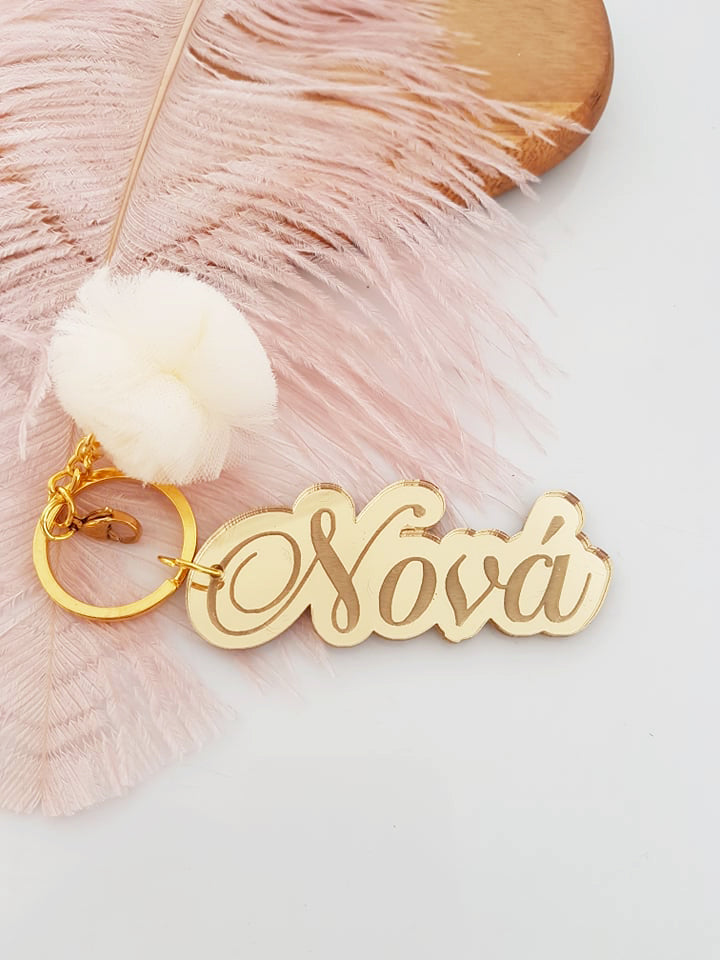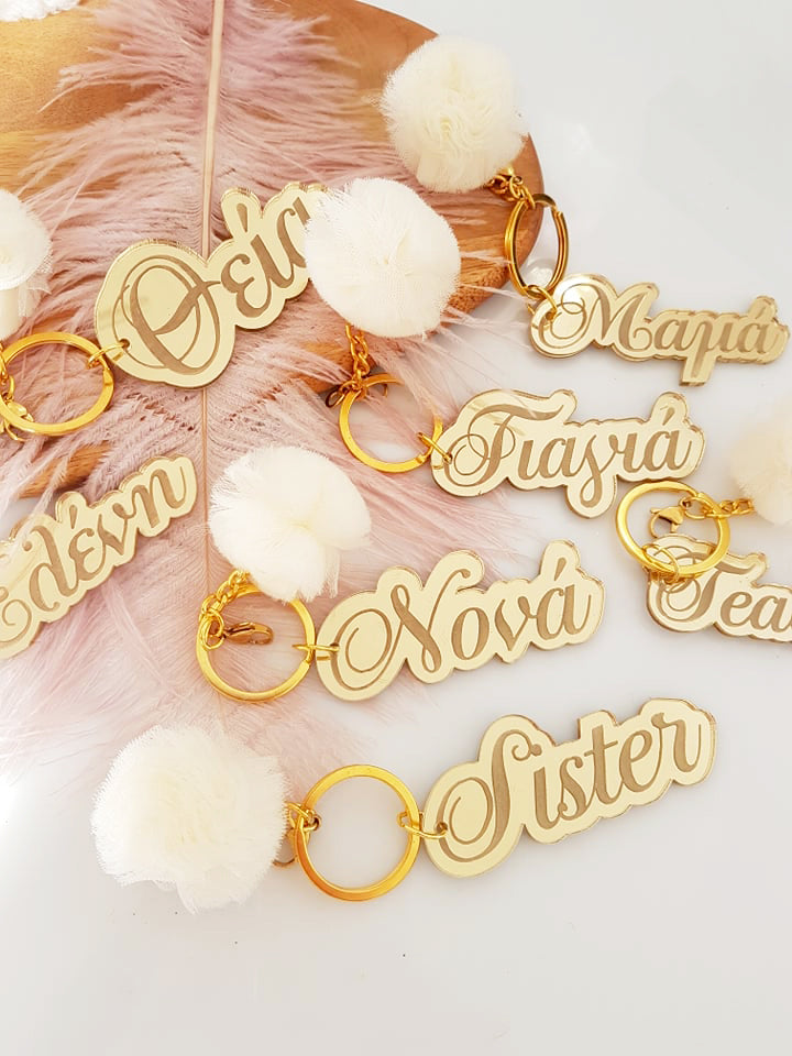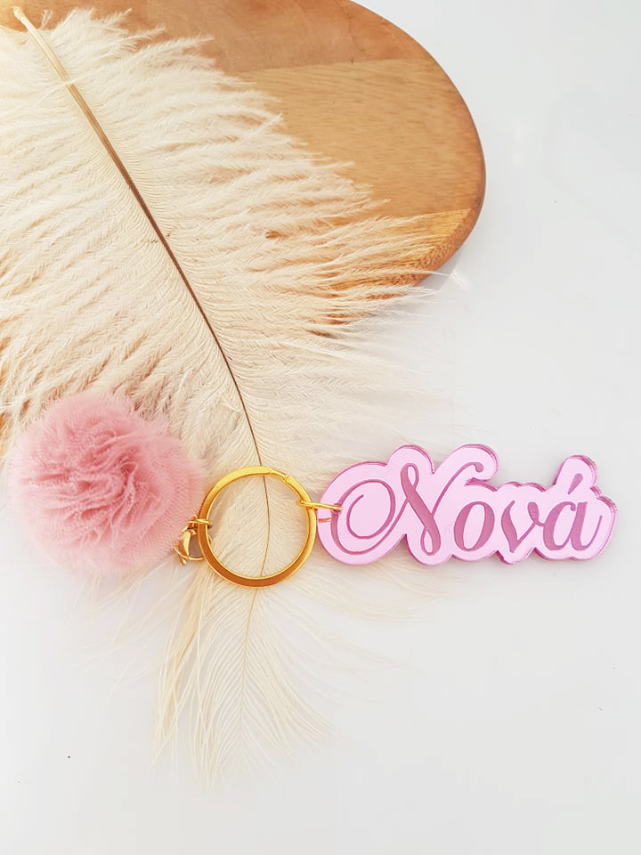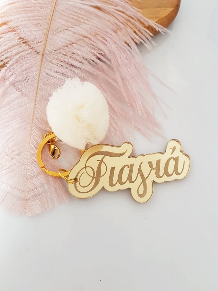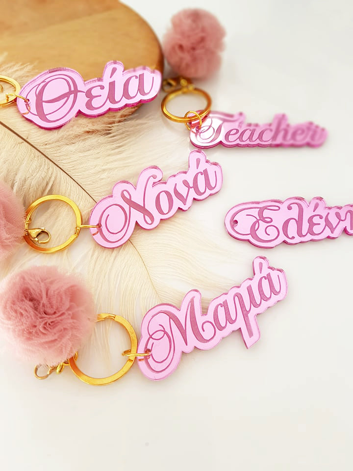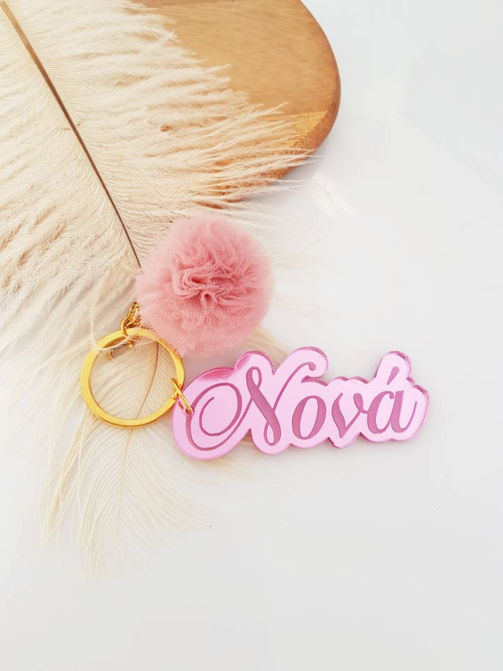 Μπρελόκ καθρέφτης με φουντάκι (μαμά, νονά, θεία, γιαγιά, sister, teacher, όνομα)