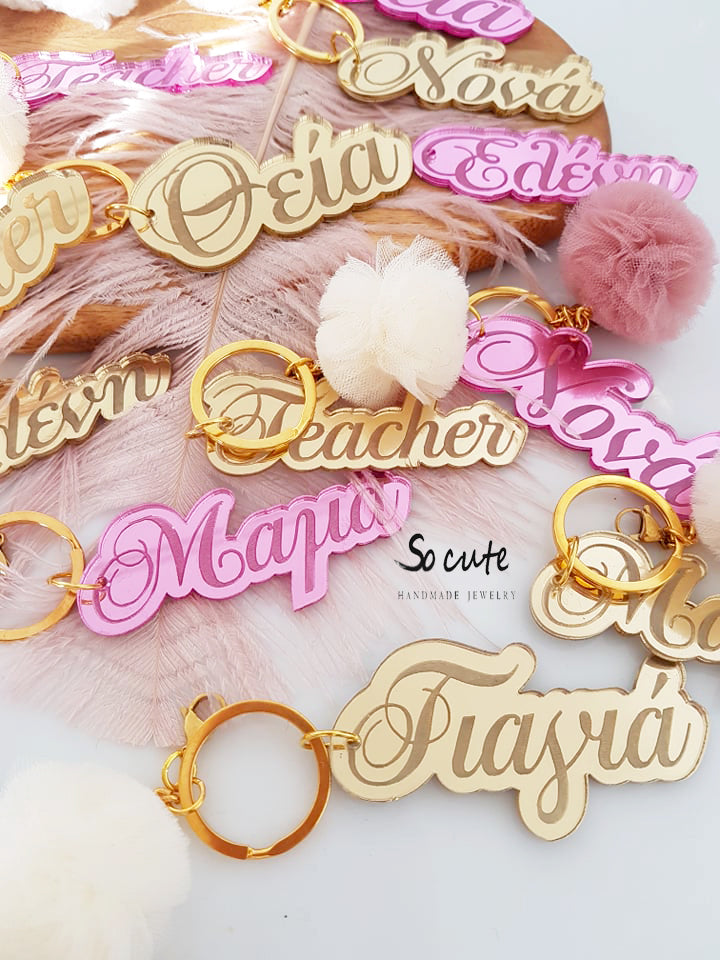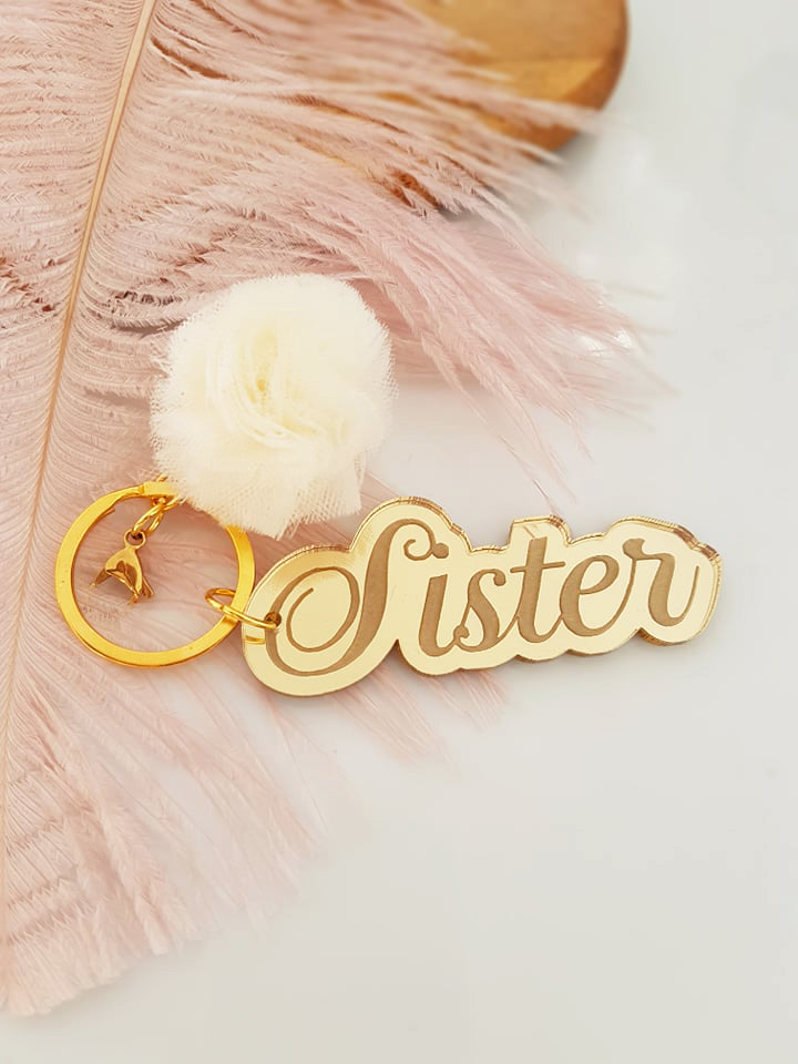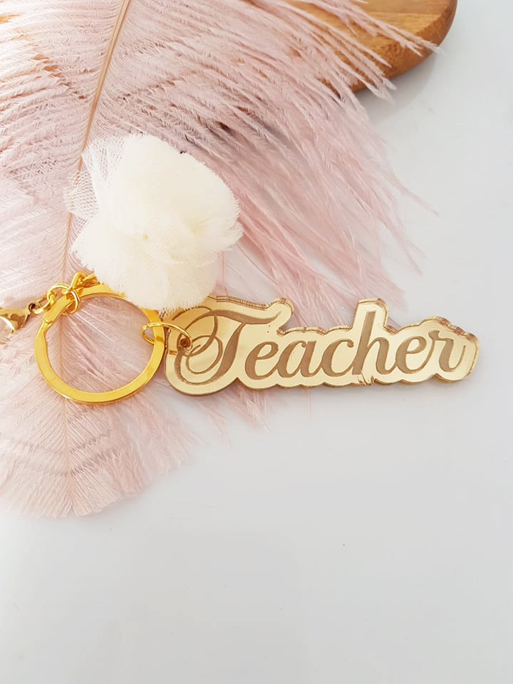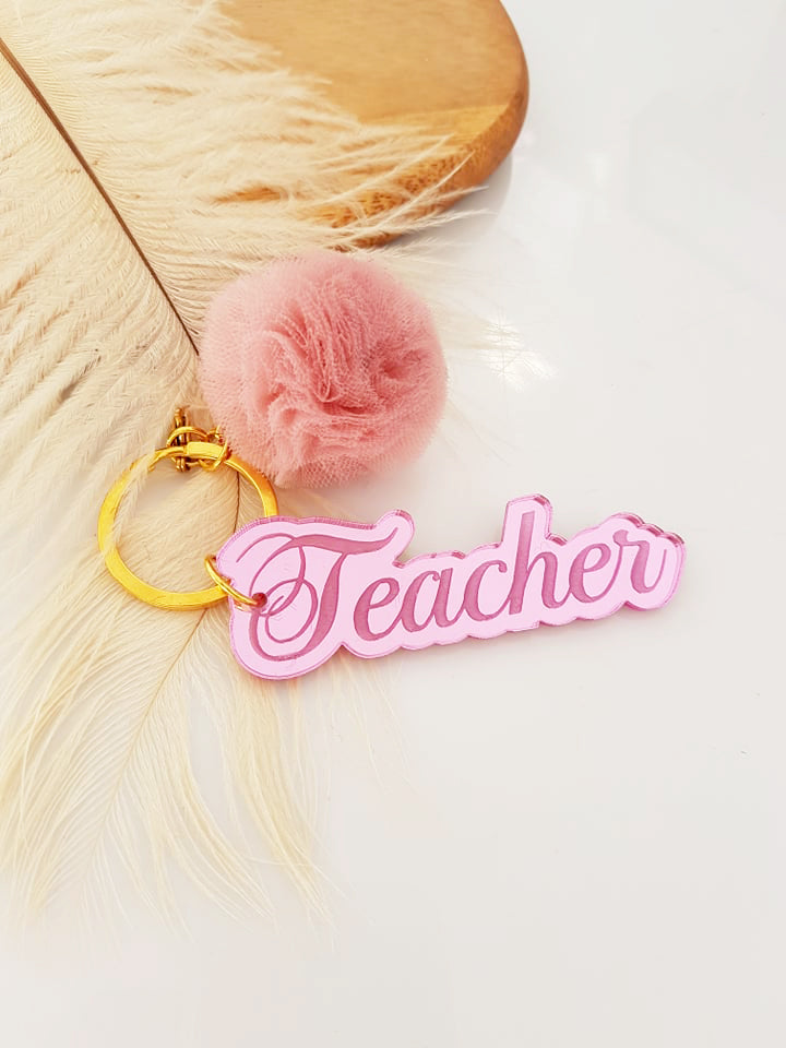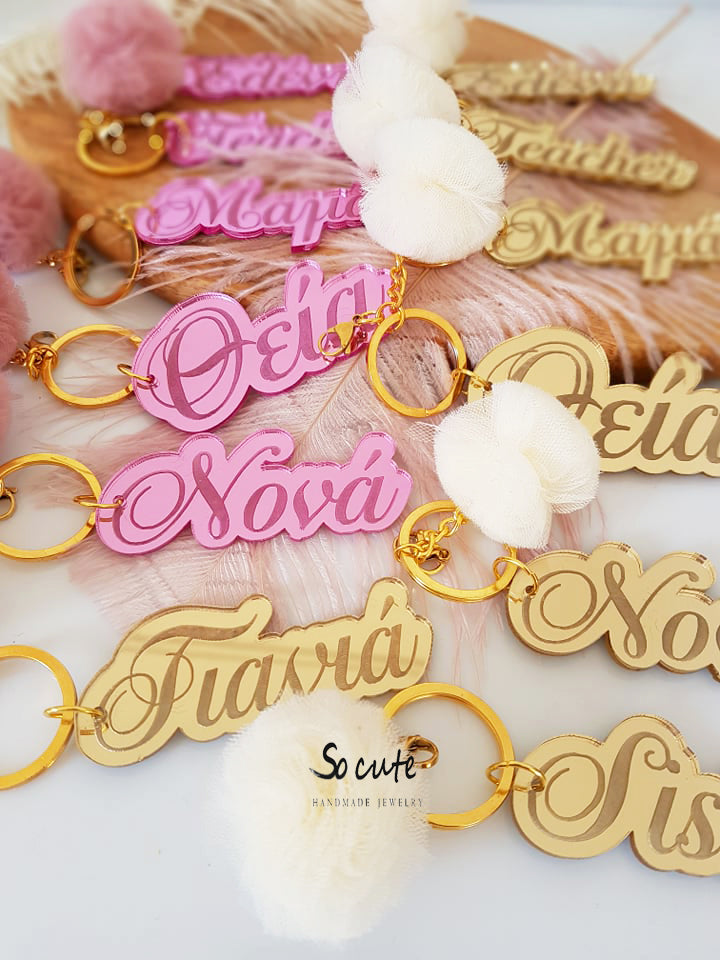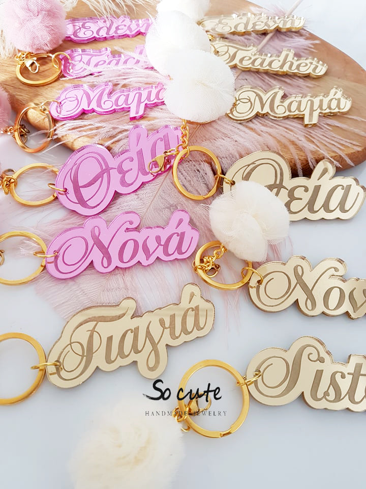 Μπρελόκ καθρέφτης με φουντάκι (μαμά, νονά, θεία, γιαγιά, sister, teacher, όνομα)