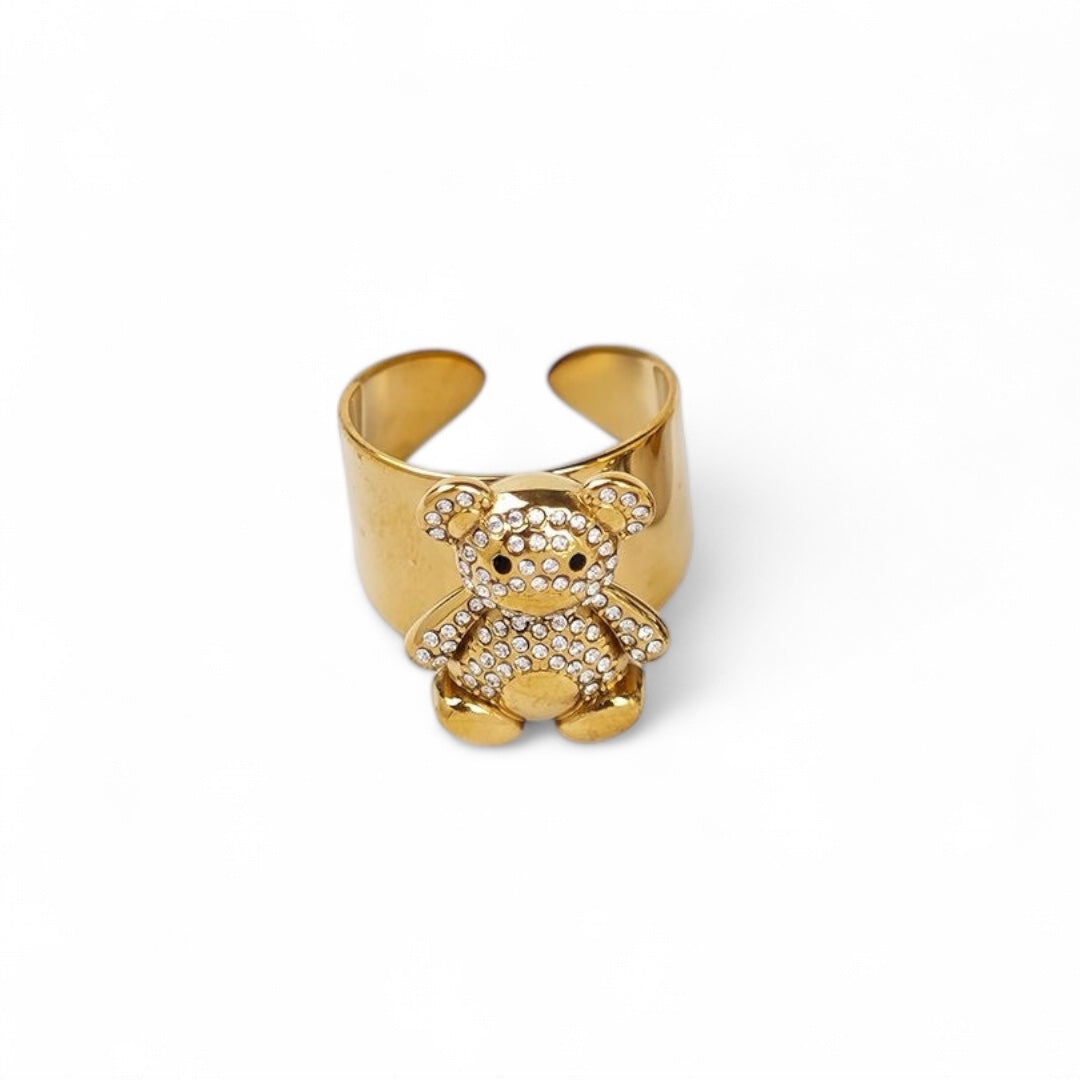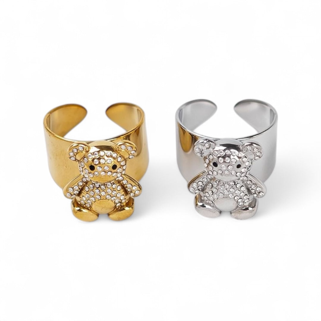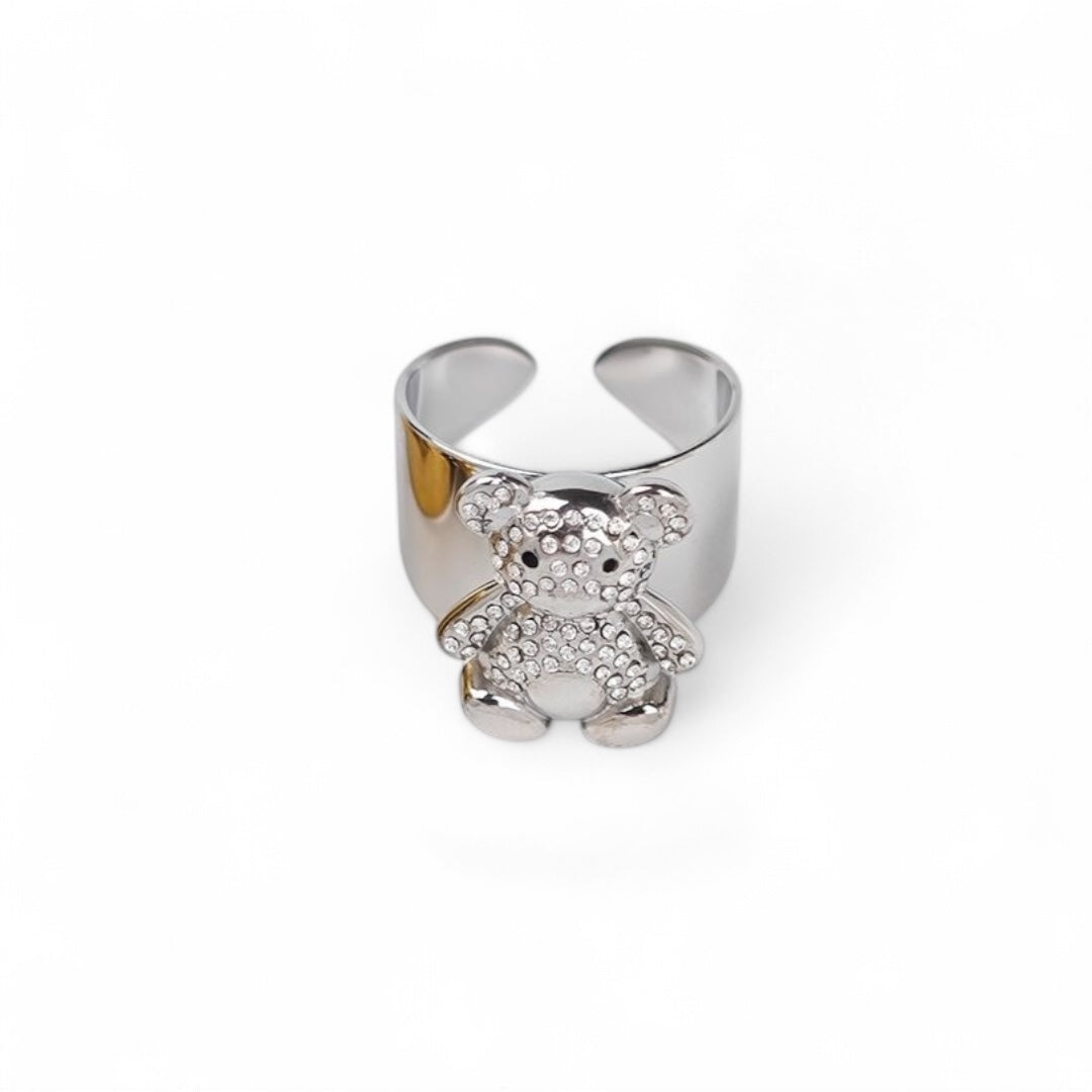 ⚡🚚 Δαχτυλίδι Teddy Sparkle – Ατσάλινο με Strass Αρκουδάκι