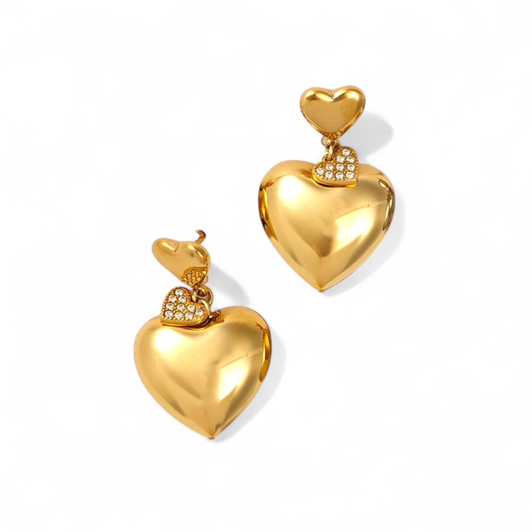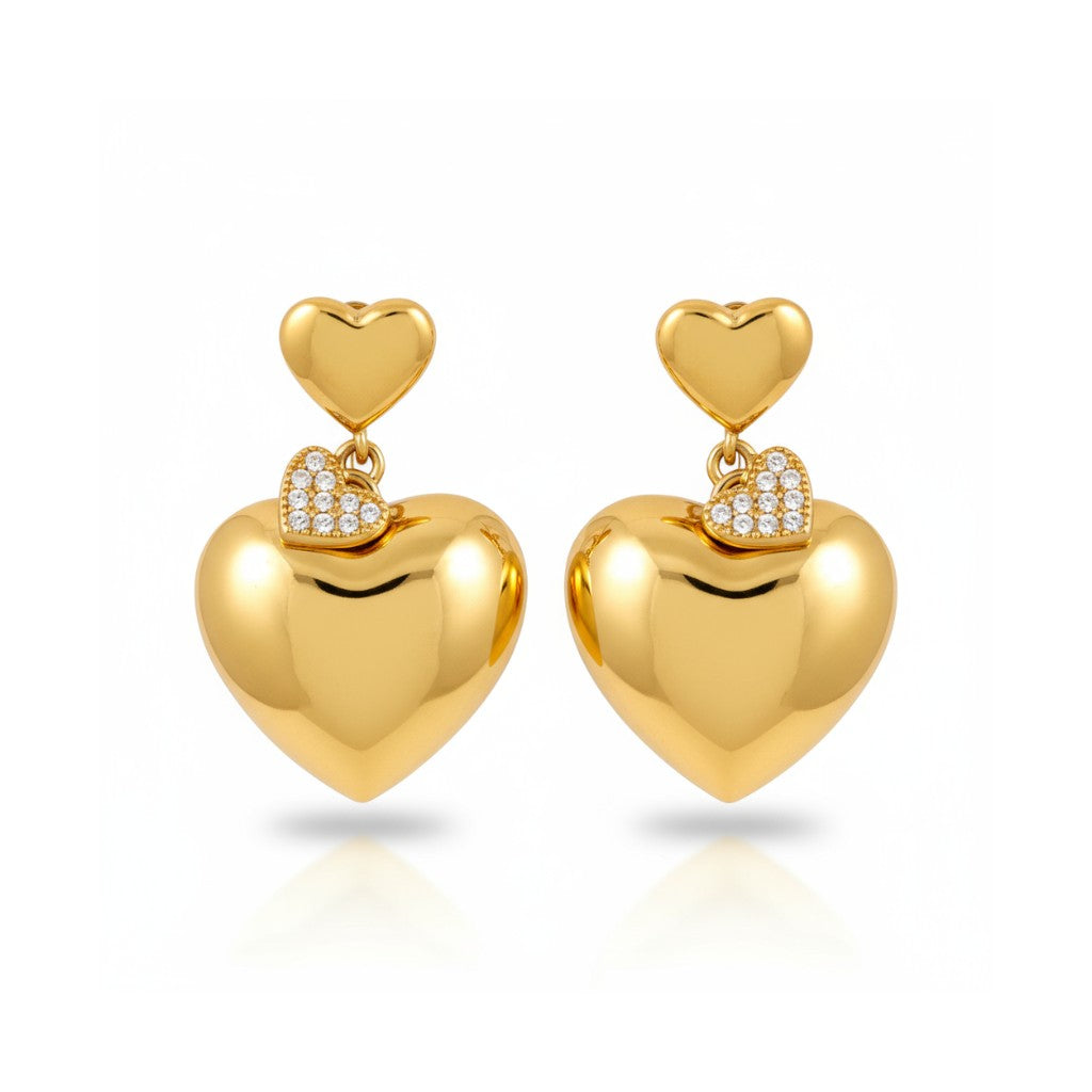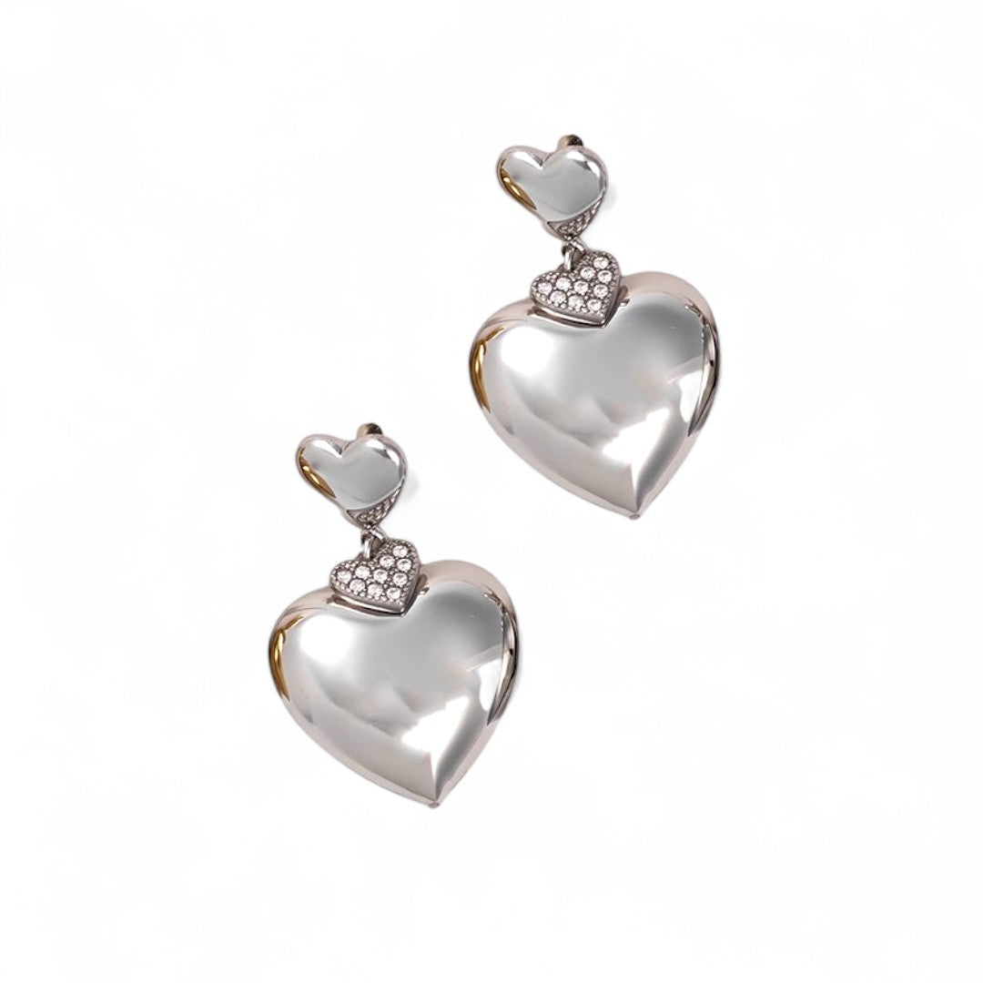 ⚡🚚 Double Heart – Ατσάλινα Σκουλαρίκια με Στρας