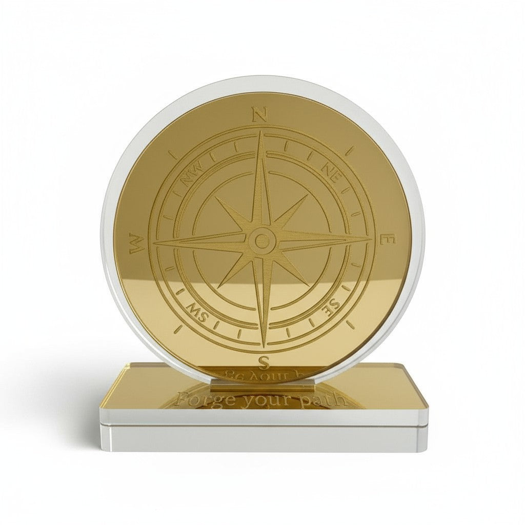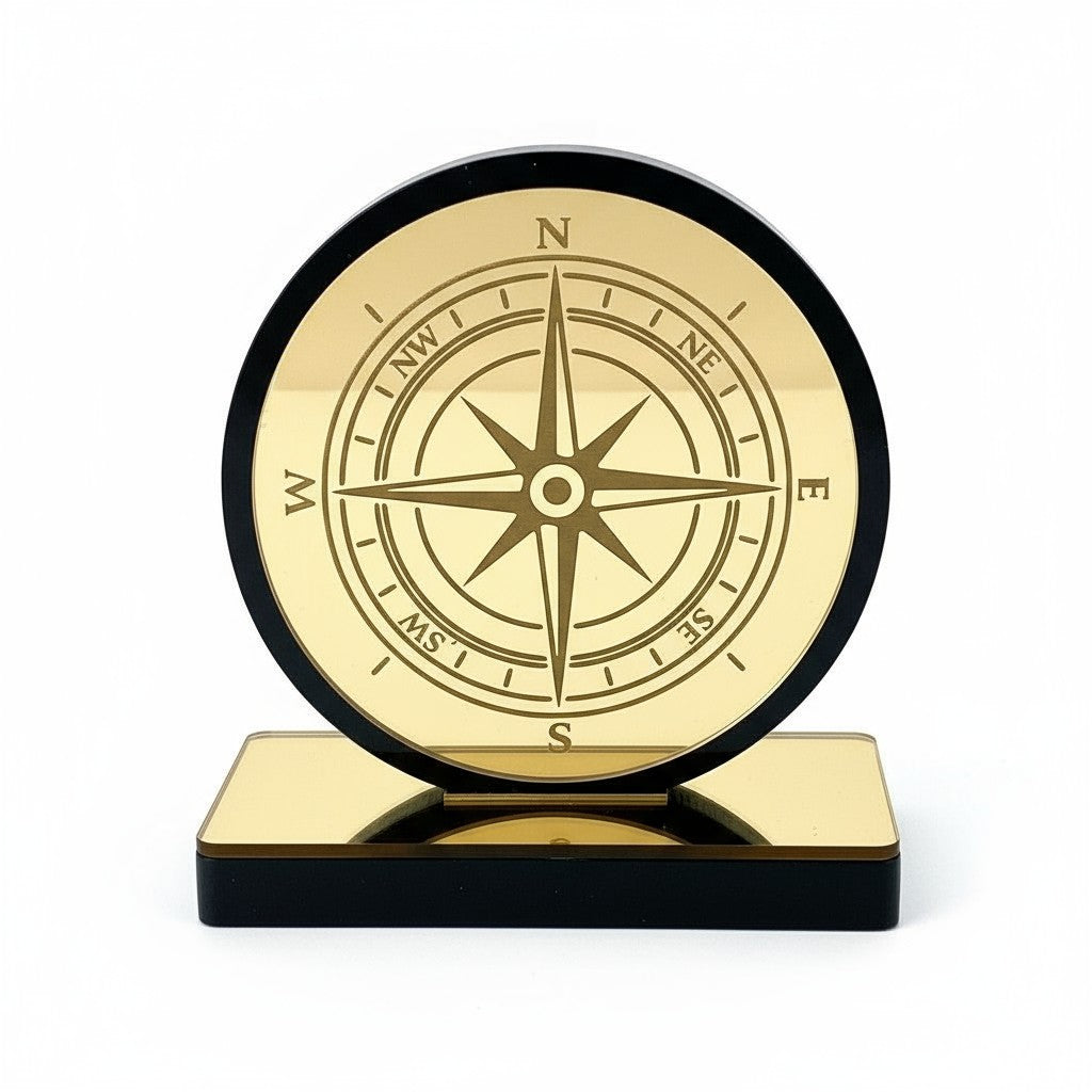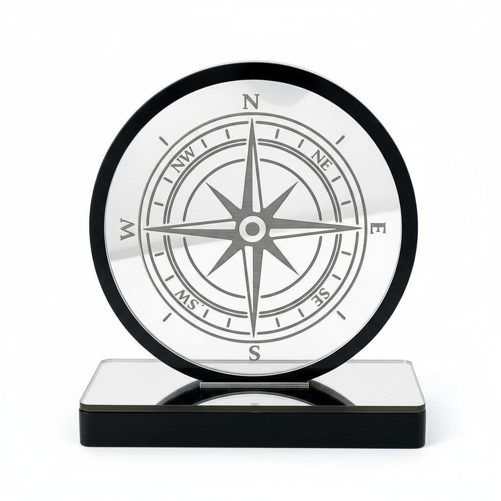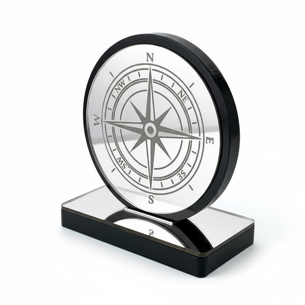 🤍✨ Επιτραπέζιο Γούρι Πυξίδα – Plexiglass Καθρέφτης