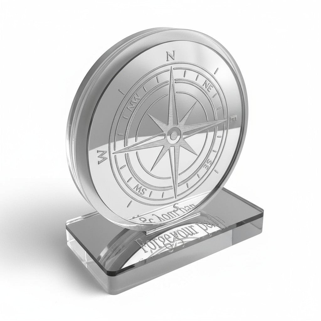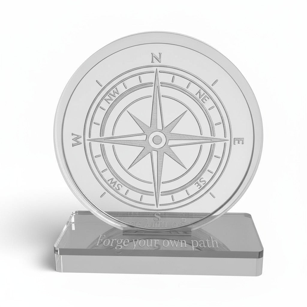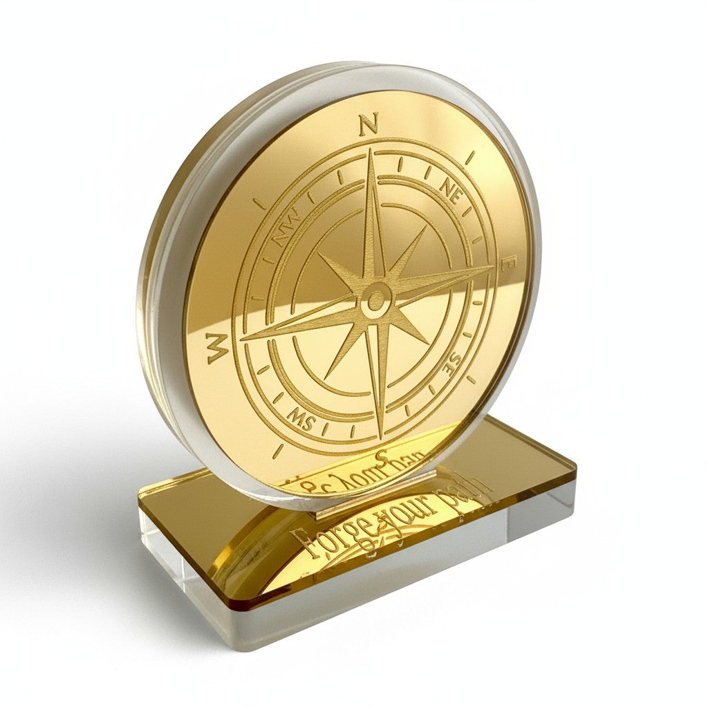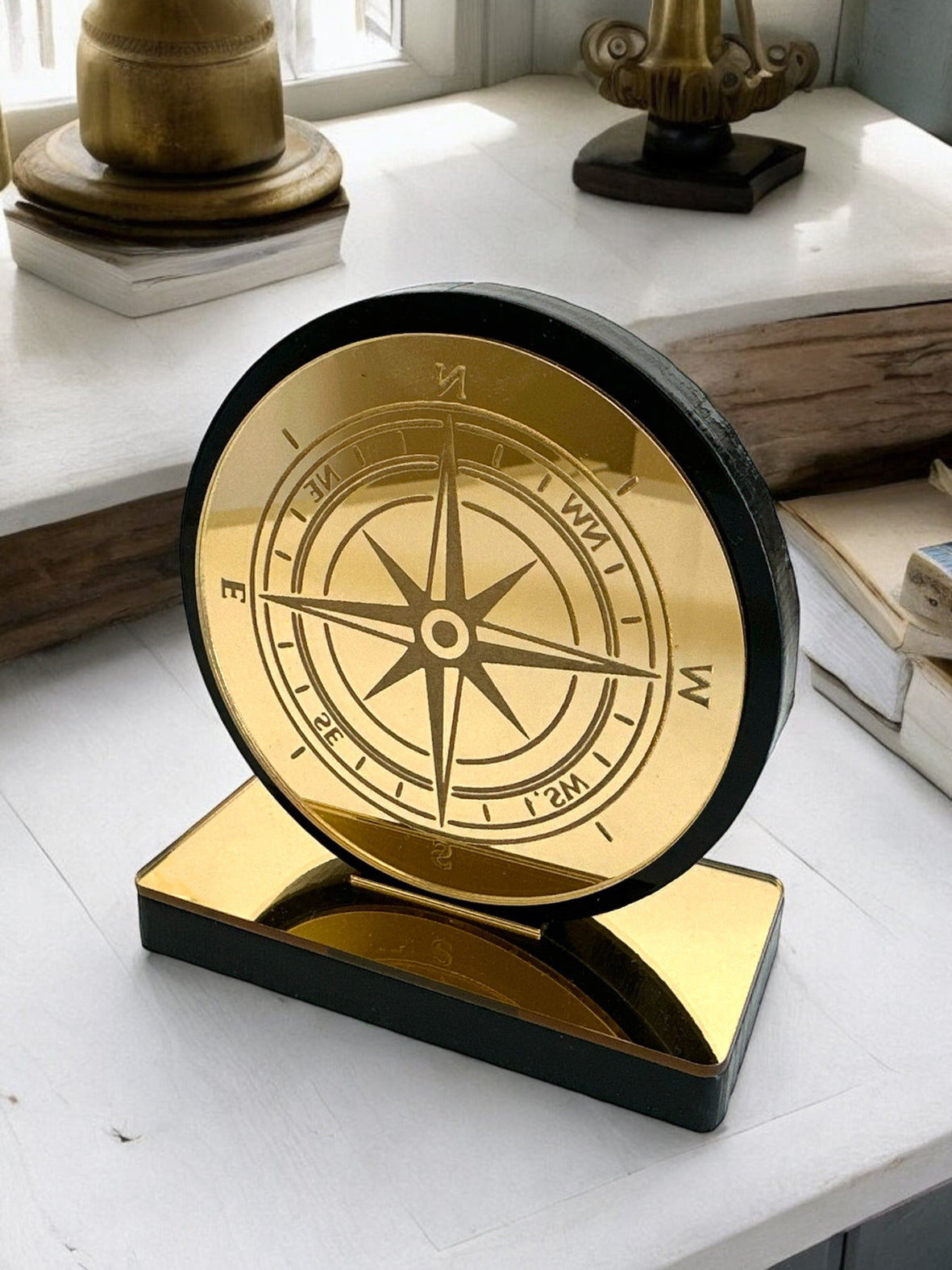 🤍✨ Επιτραπέζιο Γούρι Πυξίδα – Plexiglass Καθρέφτης