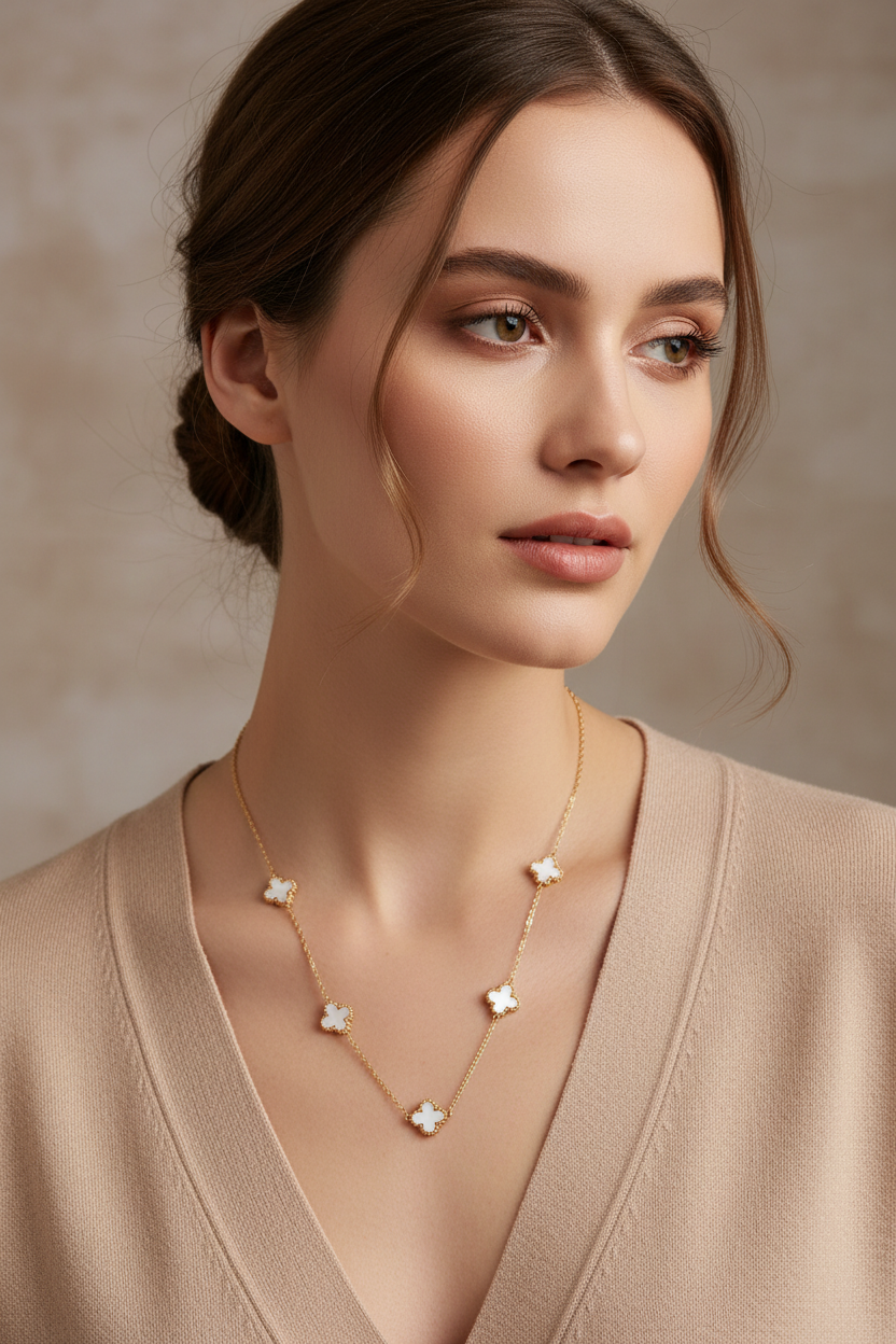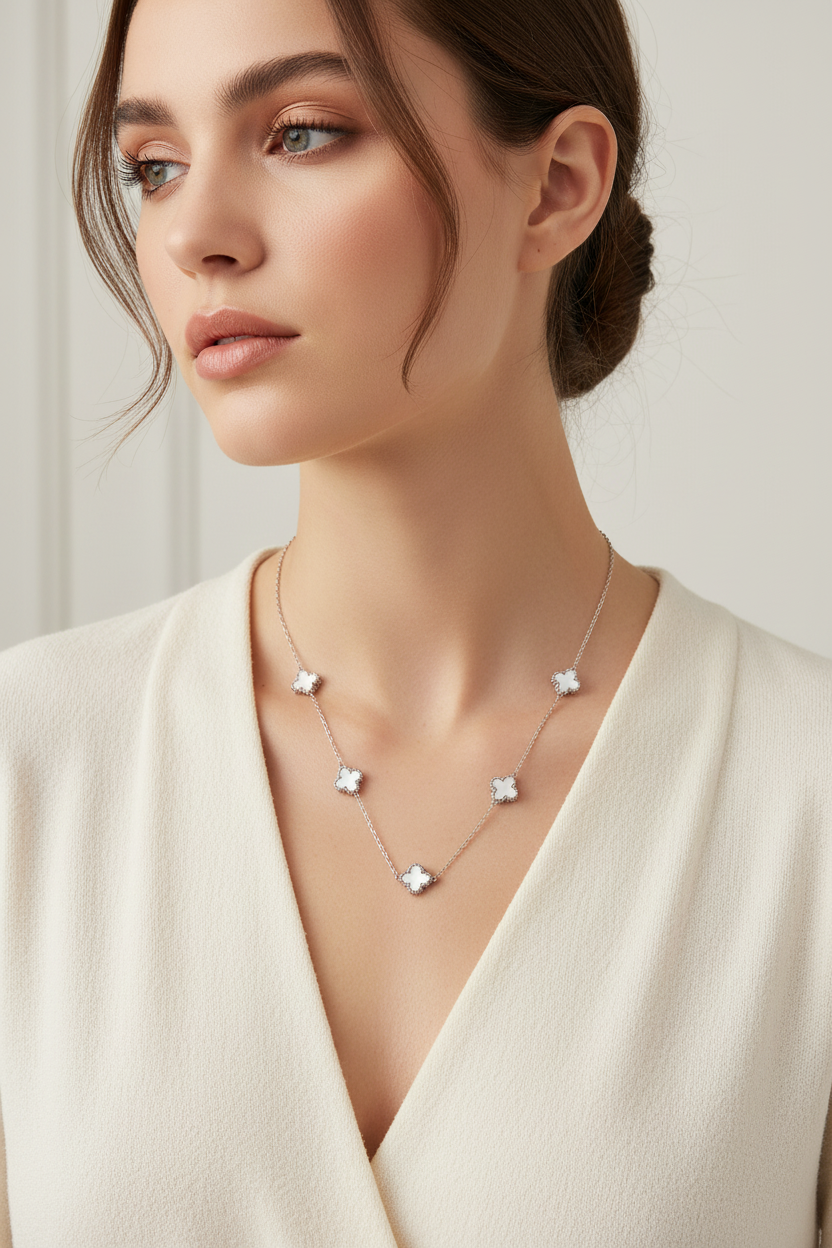 Ένα κομψό, ευκολοφόρετο κολιέ με υψηλή εμπορικότητα. Το μοτίφ τετράφυλλο τριφύλλι αποτελεί all-time classic επιλογή που λειτουργεί άψογα τόσο ως καθημερινό κόσμημα όσο και ως δώρο.