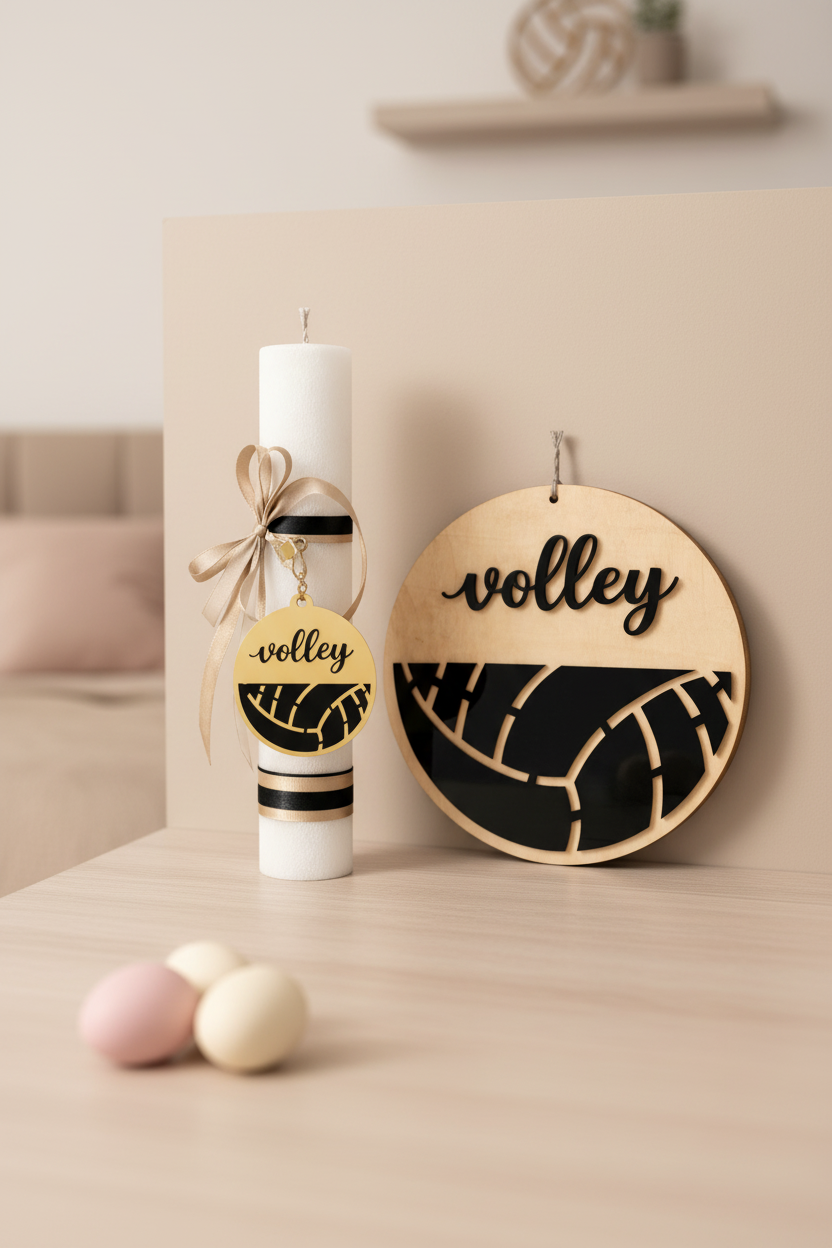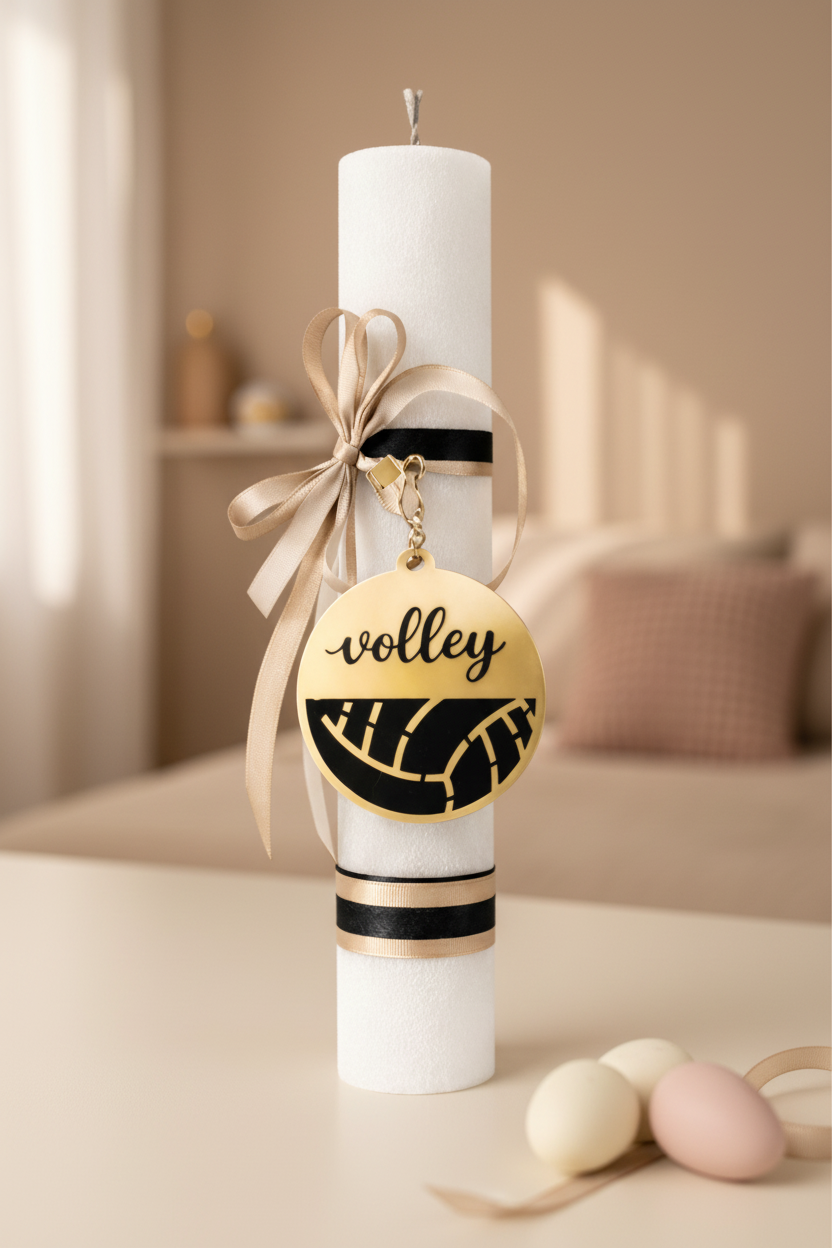 🤍✨ Χειροποίητη Λαμπάδα Volleyball Edition με Μπρελόκ & Προαιρετικό Κάδρο